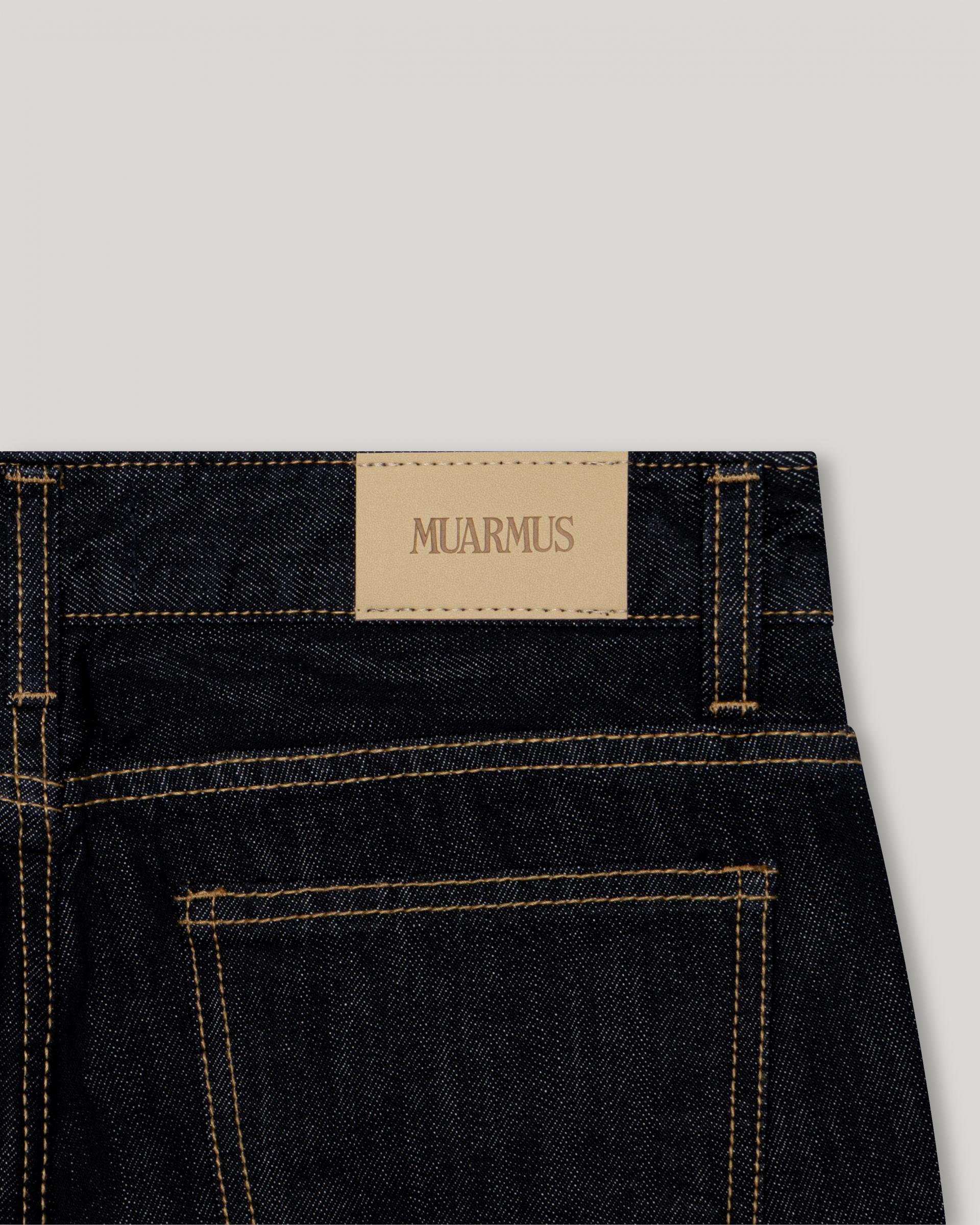 Features a MUARMUS logo-engraved leather patch on the belt line and a durable YKK zipper for long-lasting quality.