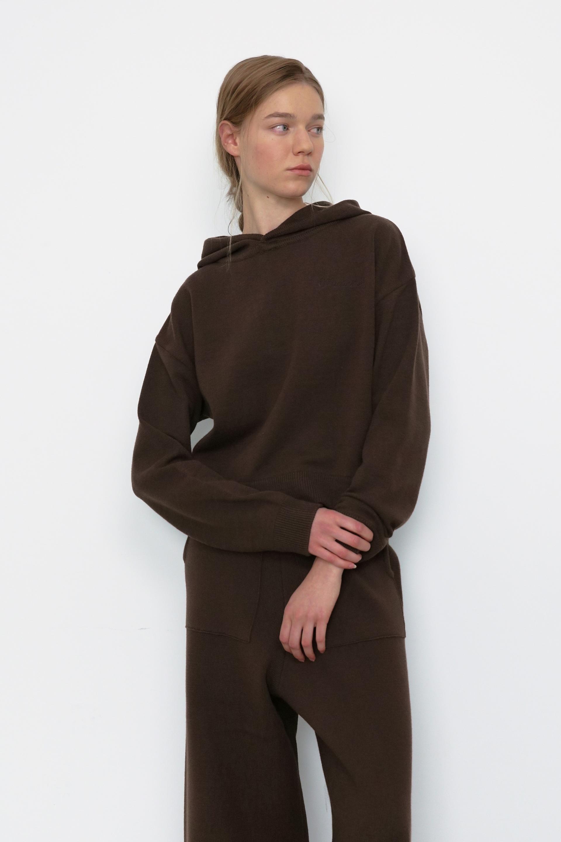 Soft Cotton Hoodie Knit [Brown]