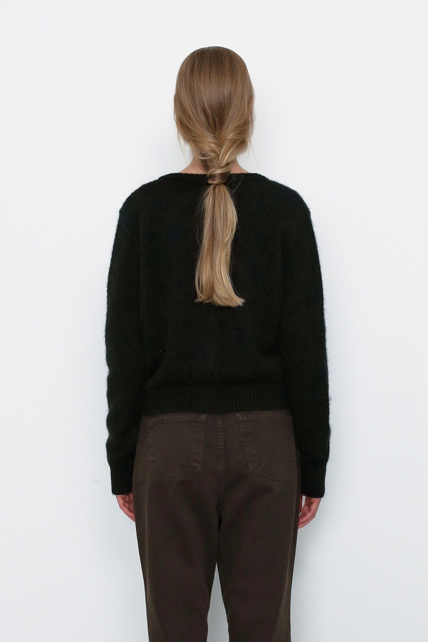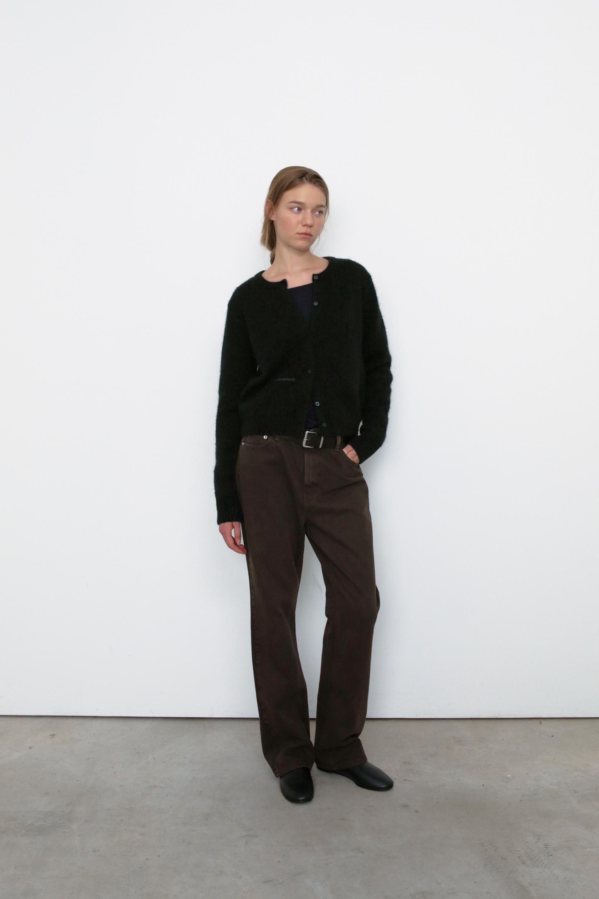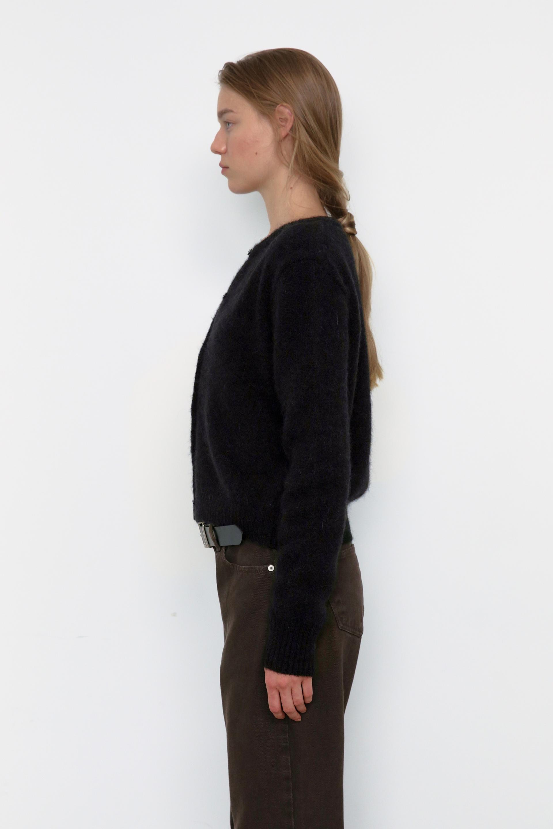 This round-neck cardigan is crafted from a cozy alpaca blend,