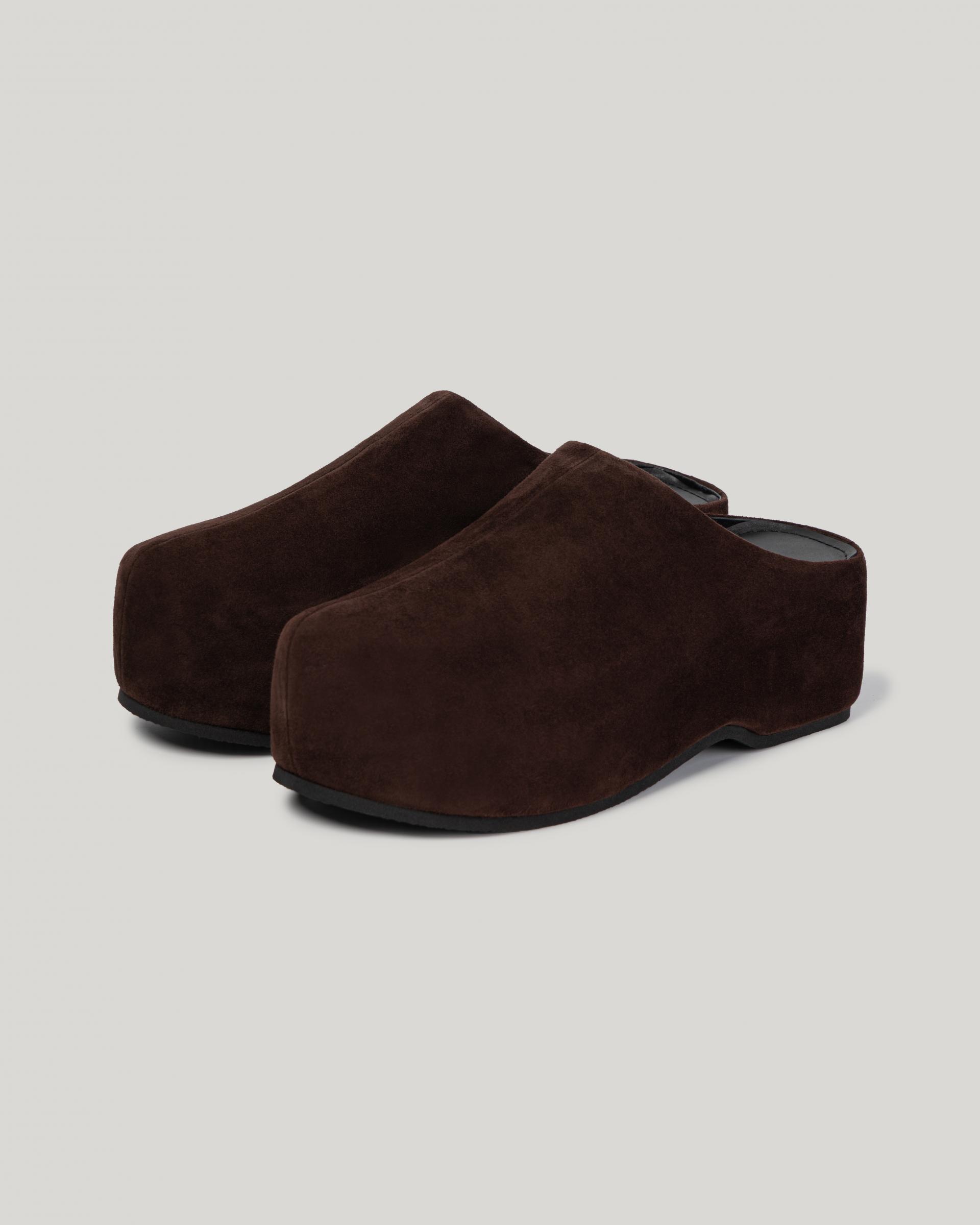 Classic platform mule crafted from 100% Italian sheepskin suede.