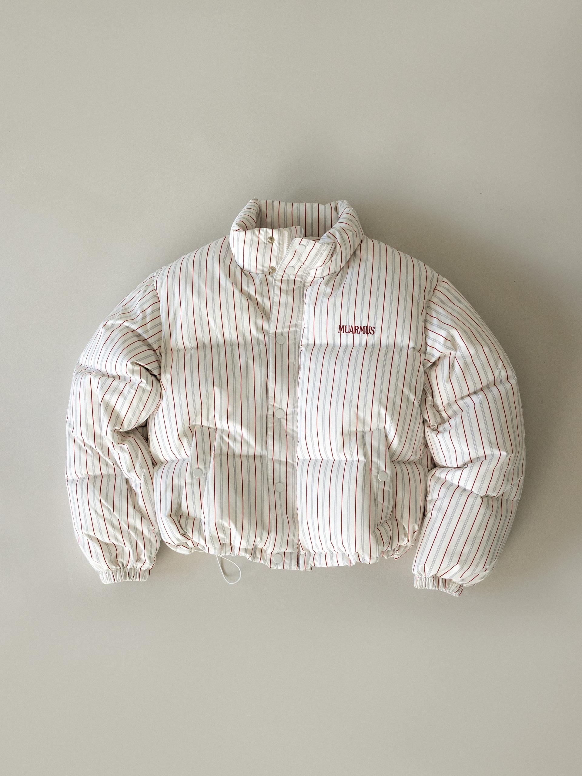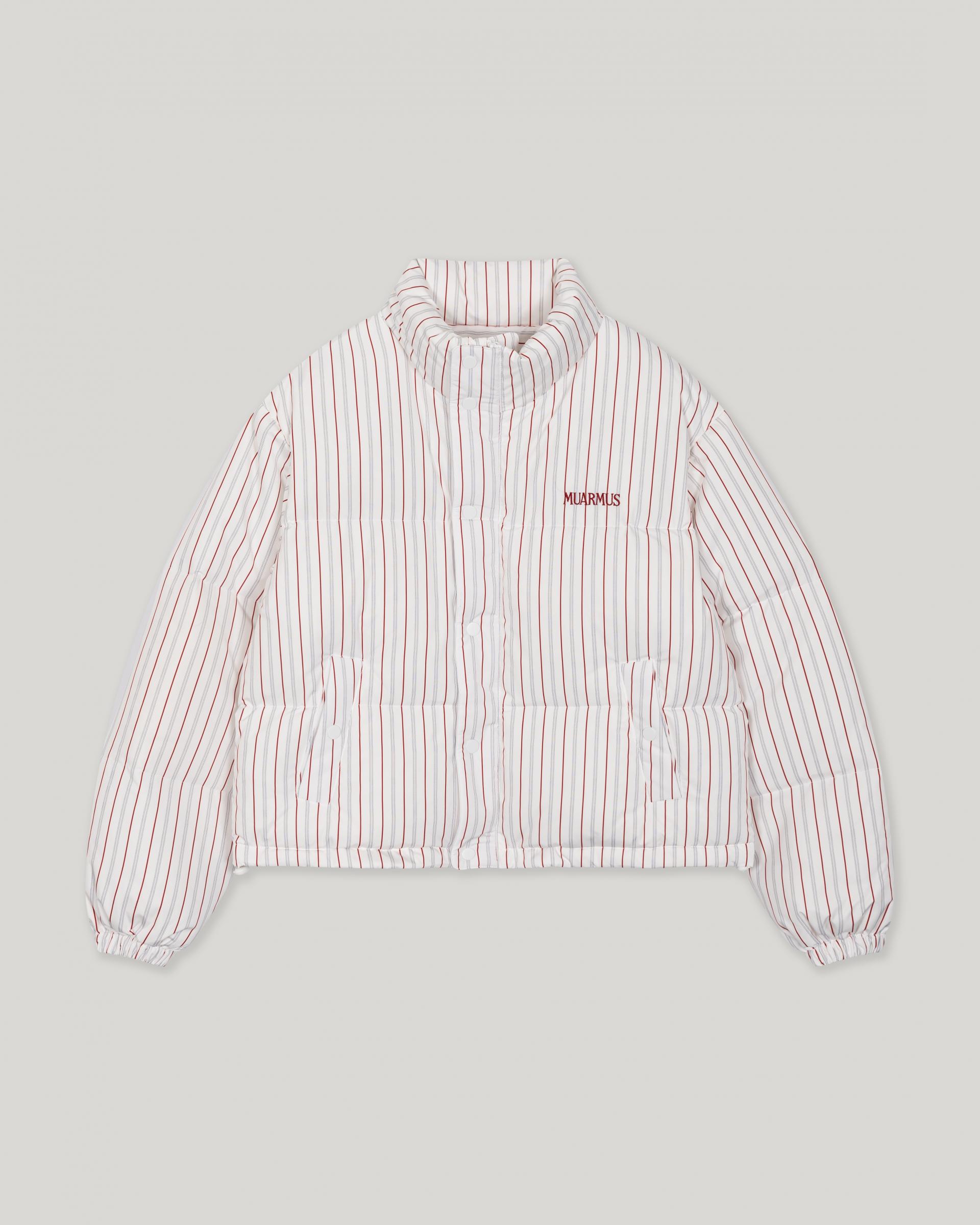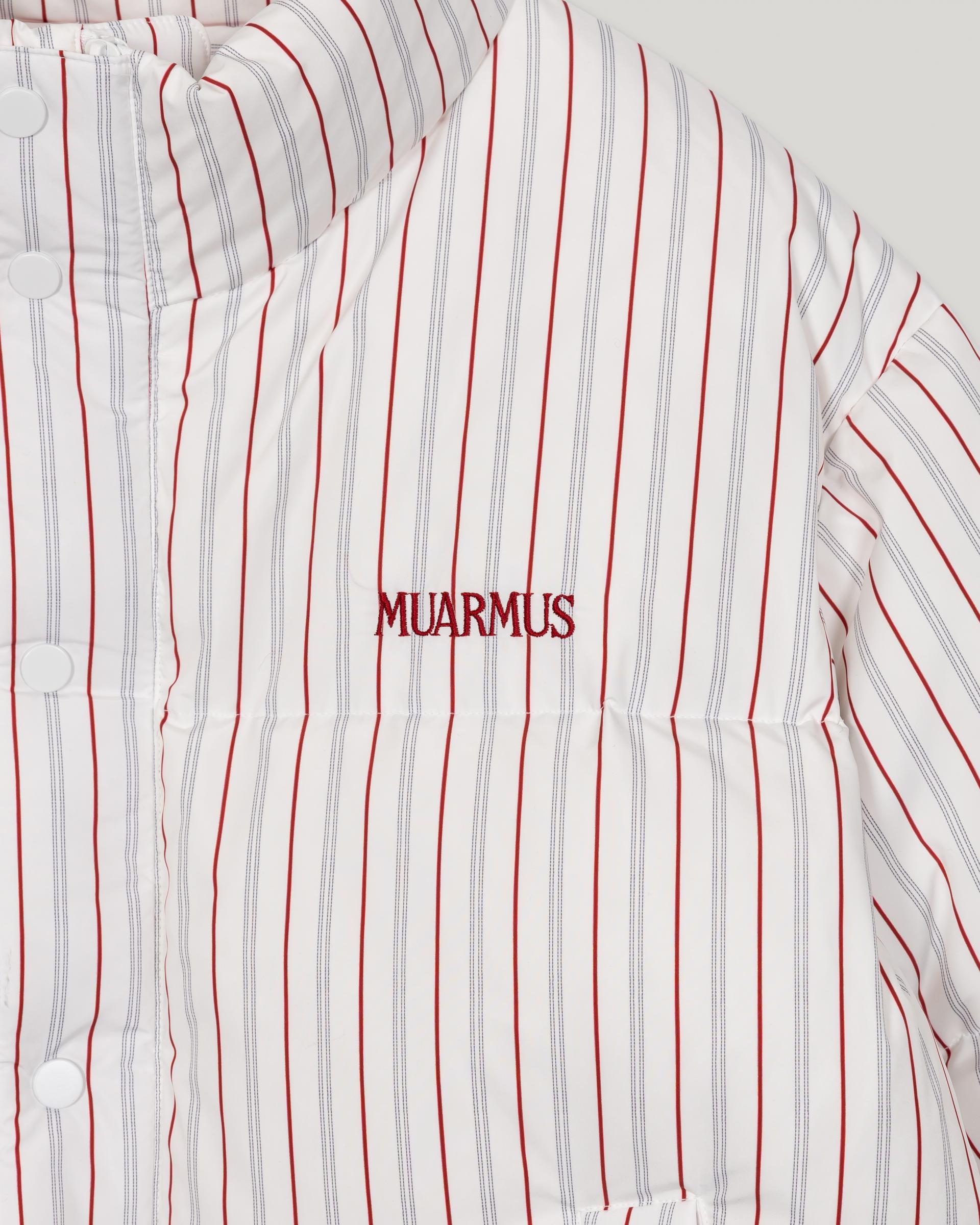 A duck-down jumper featuring Muarmus’s unique basic pattern design with a vintage touch.