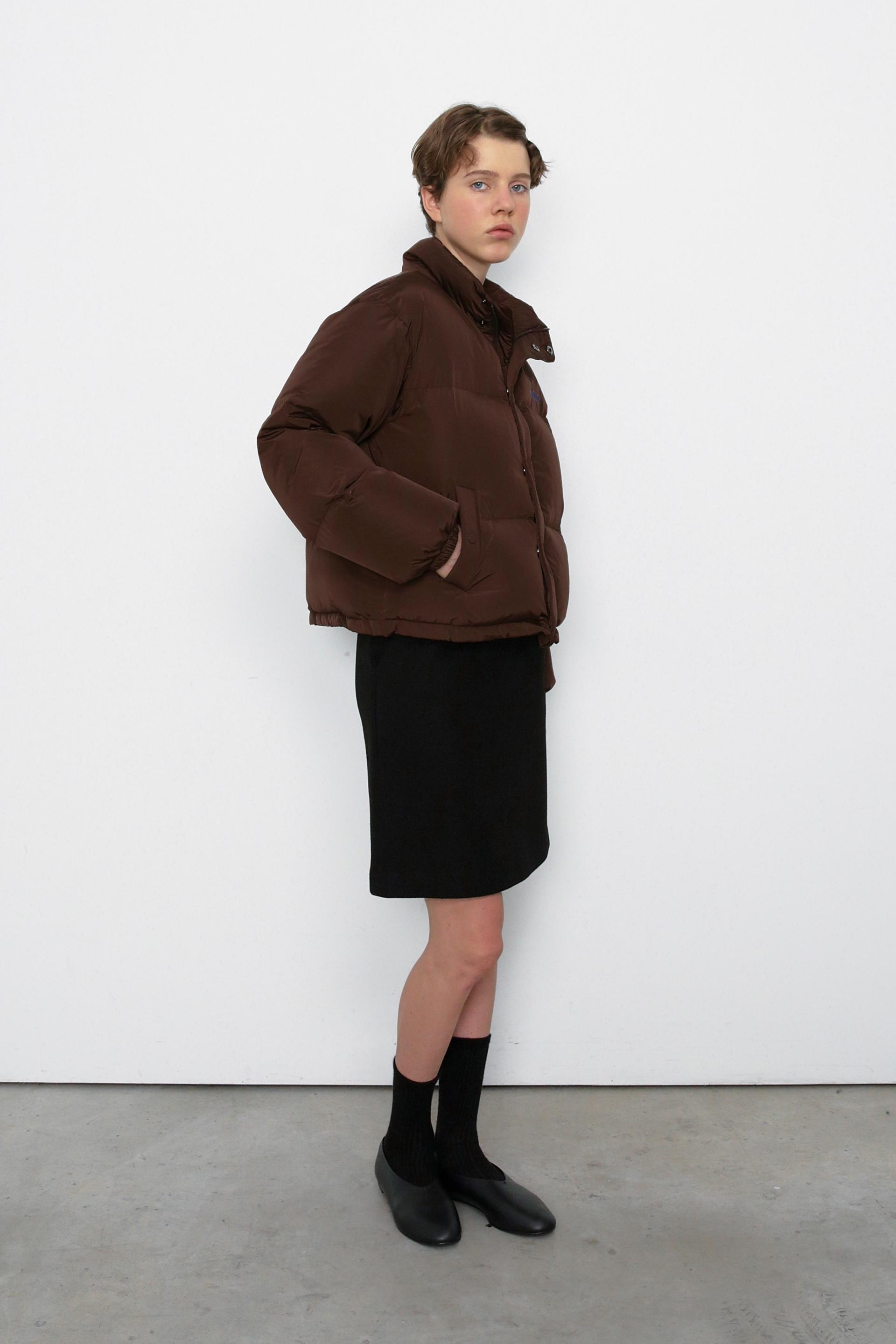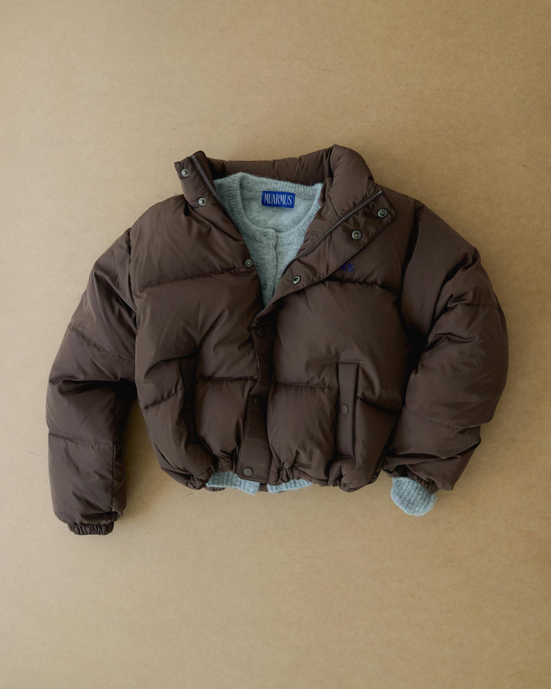 This duck down padded jumper features Moiremoose's signature basic pattern design, offering a stylish yet timeless look.