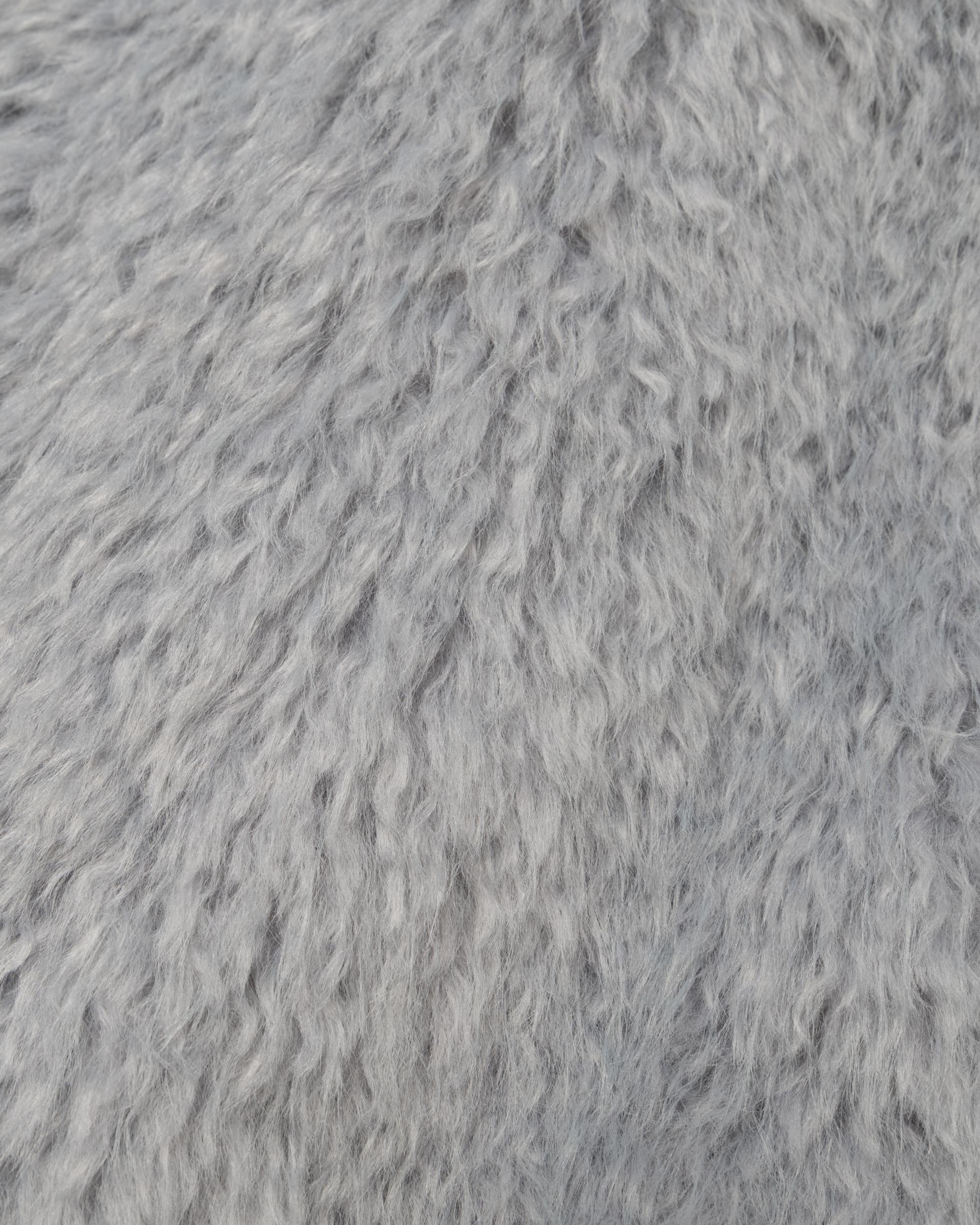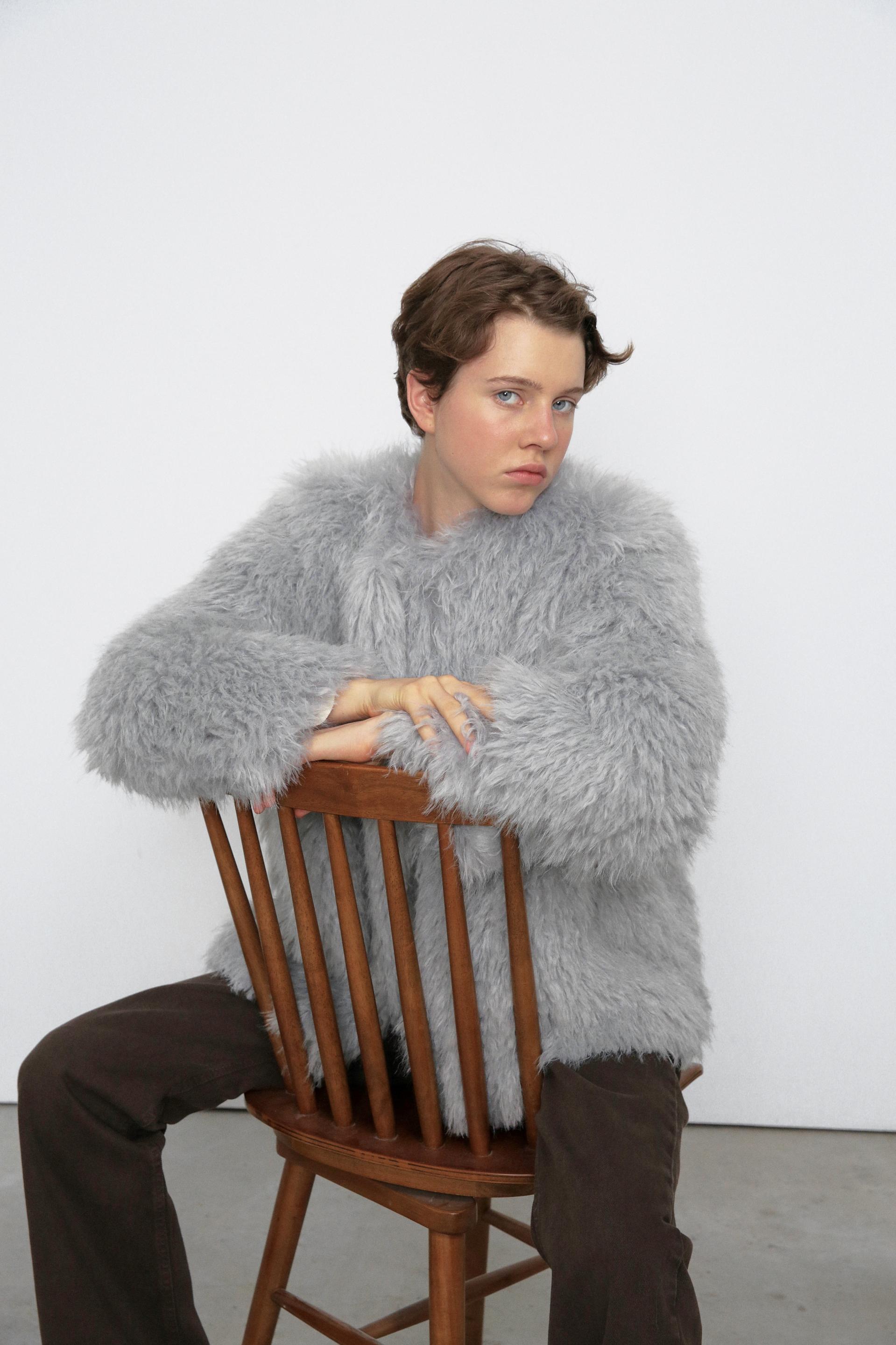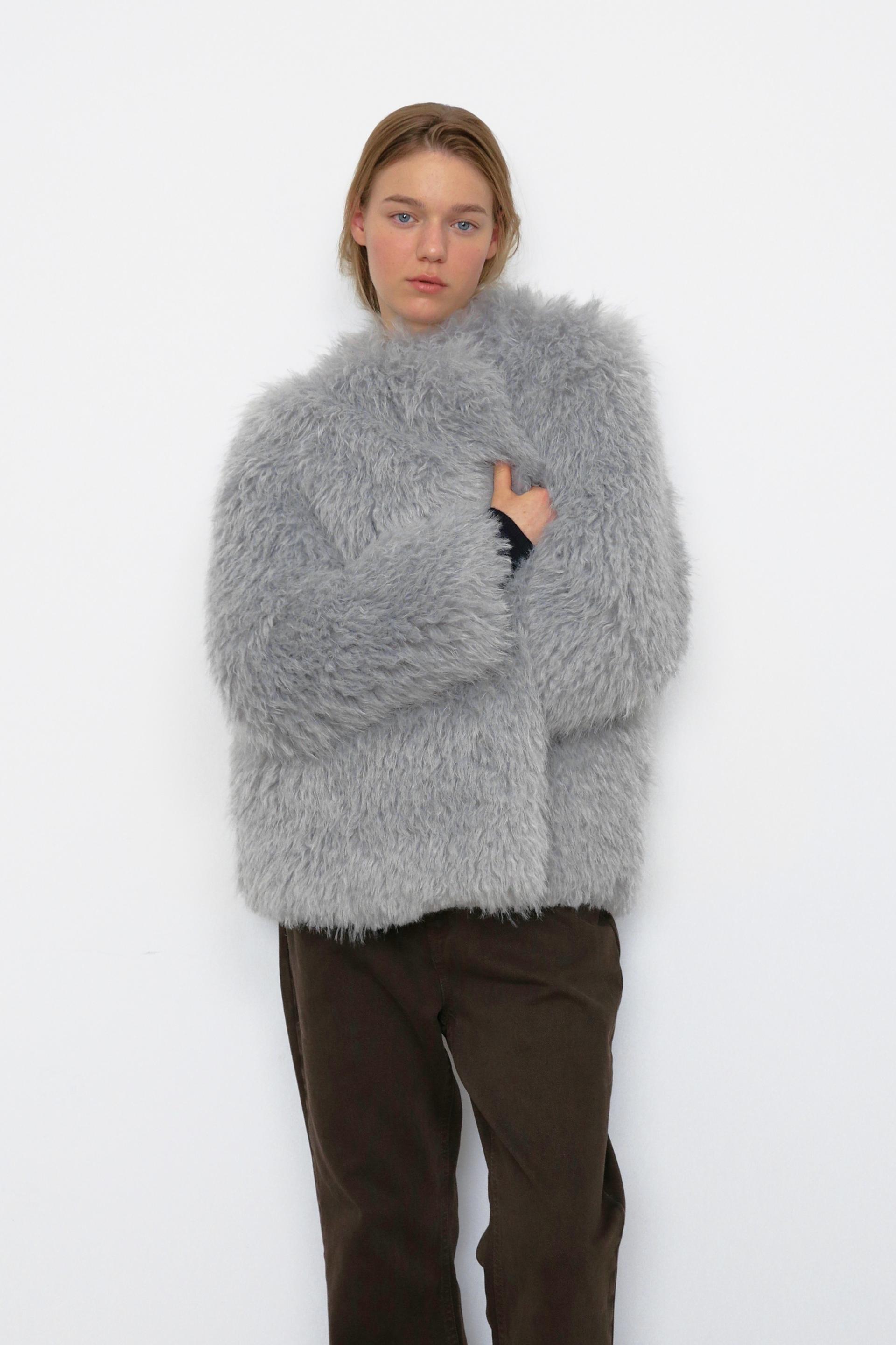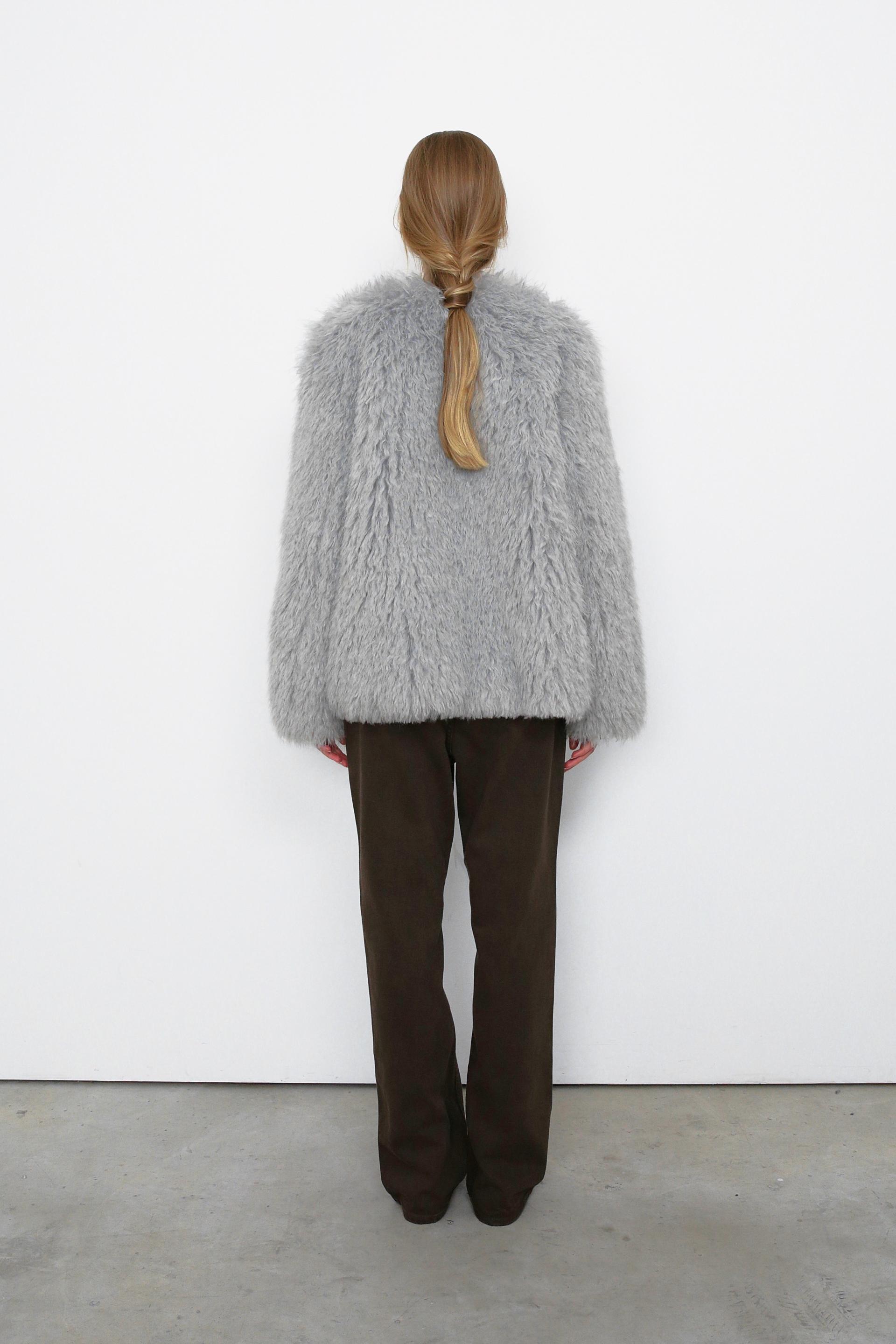 This faux fur half coat features a subtle, sophisticated ash grey color that adds a unique charm to any outfit.