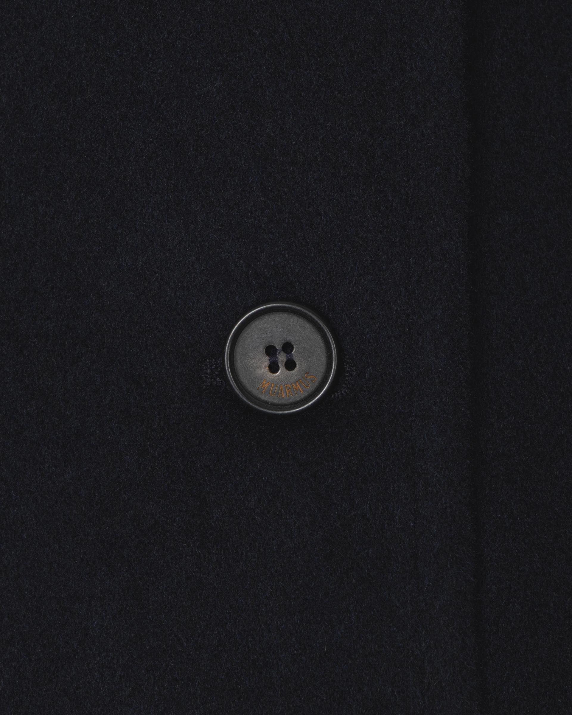A classic tailored silhouette is elevated with refined details — including horn buttons engraved with the Moiremoose logo and a subtle contrast color under the collar.