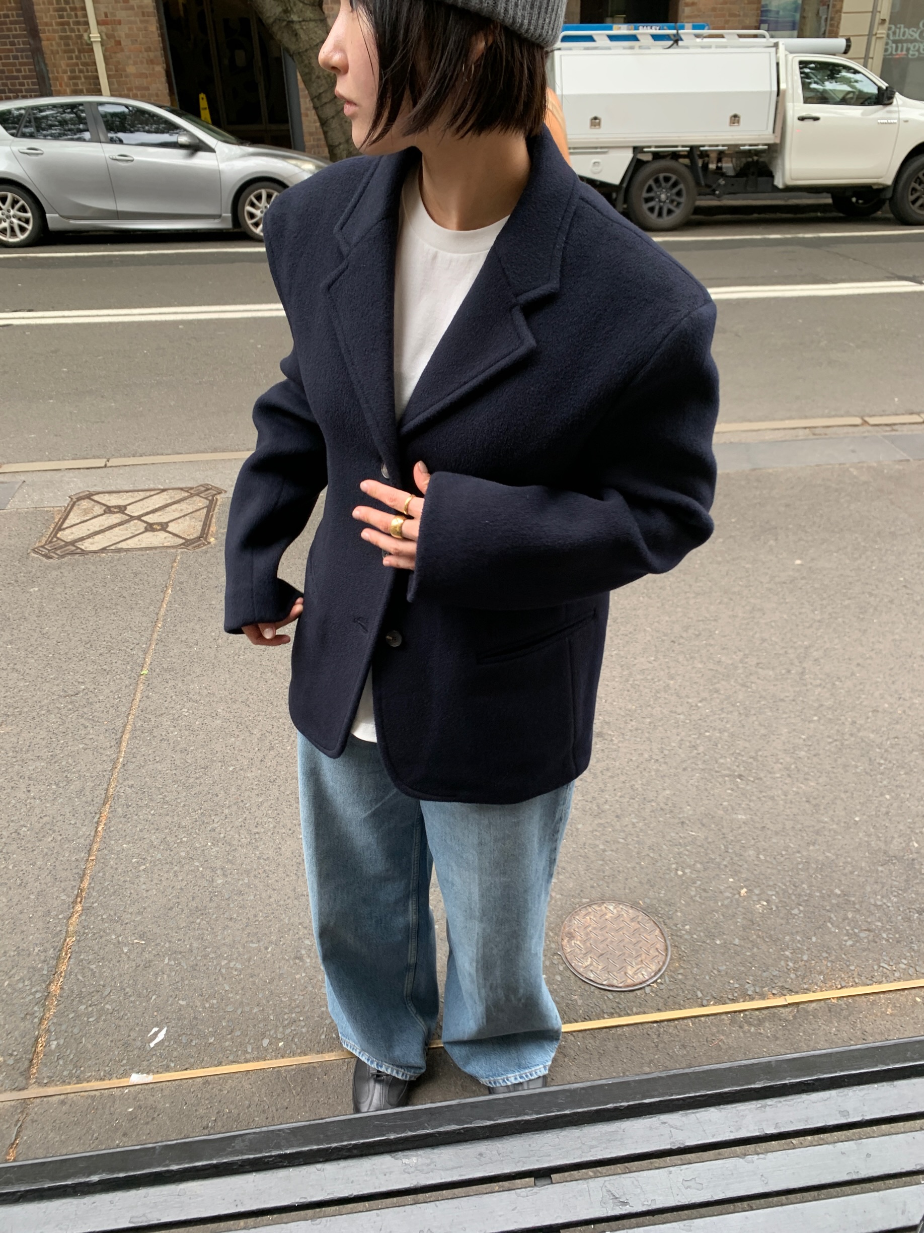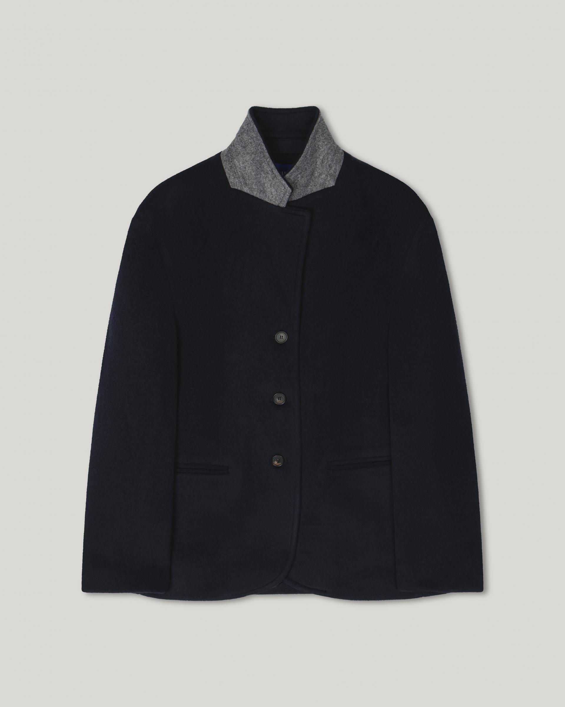 This semi-oversized jacket is crafted from a soft blend of cashmere and wool, offering both warmth and elegance.