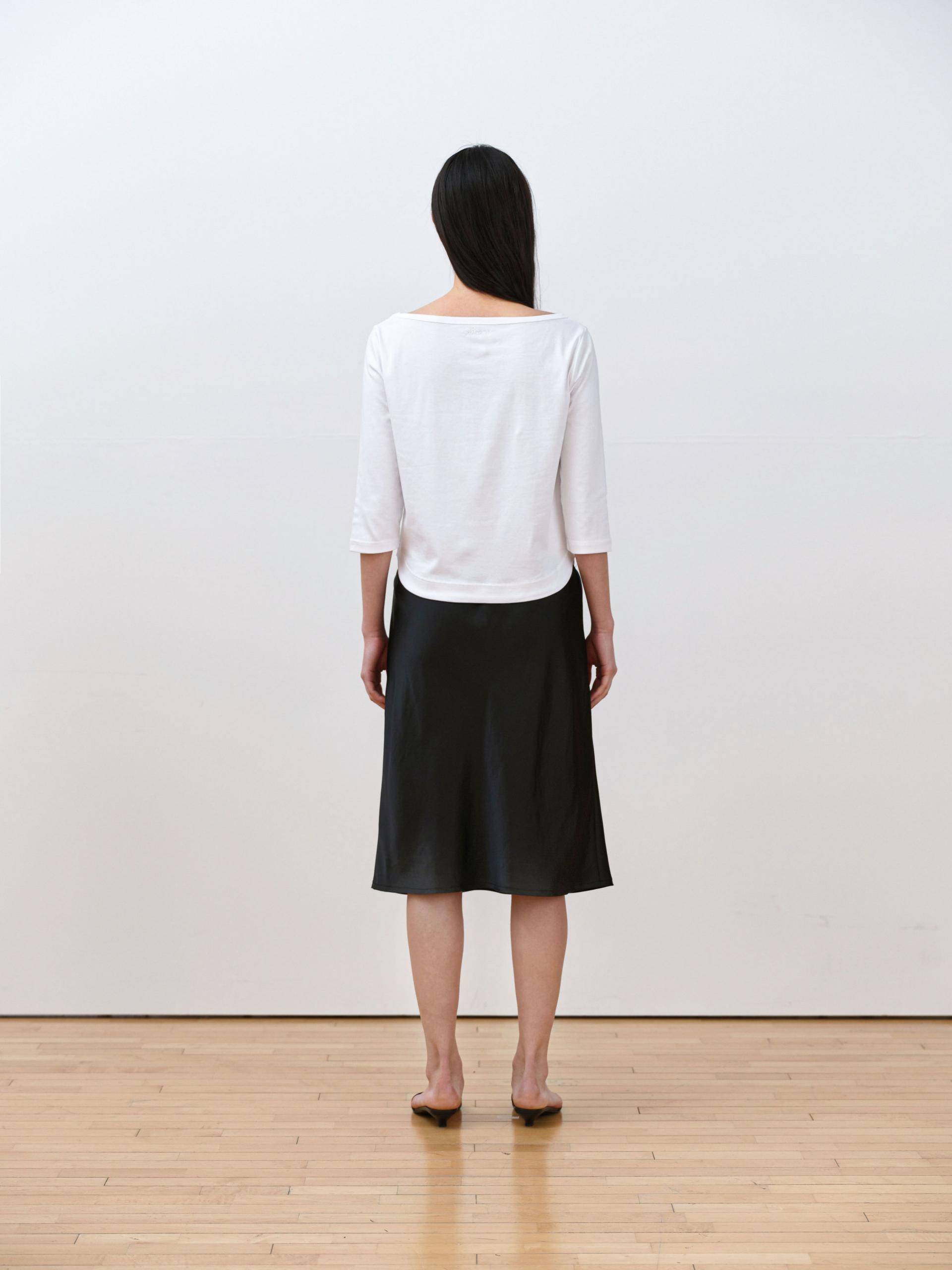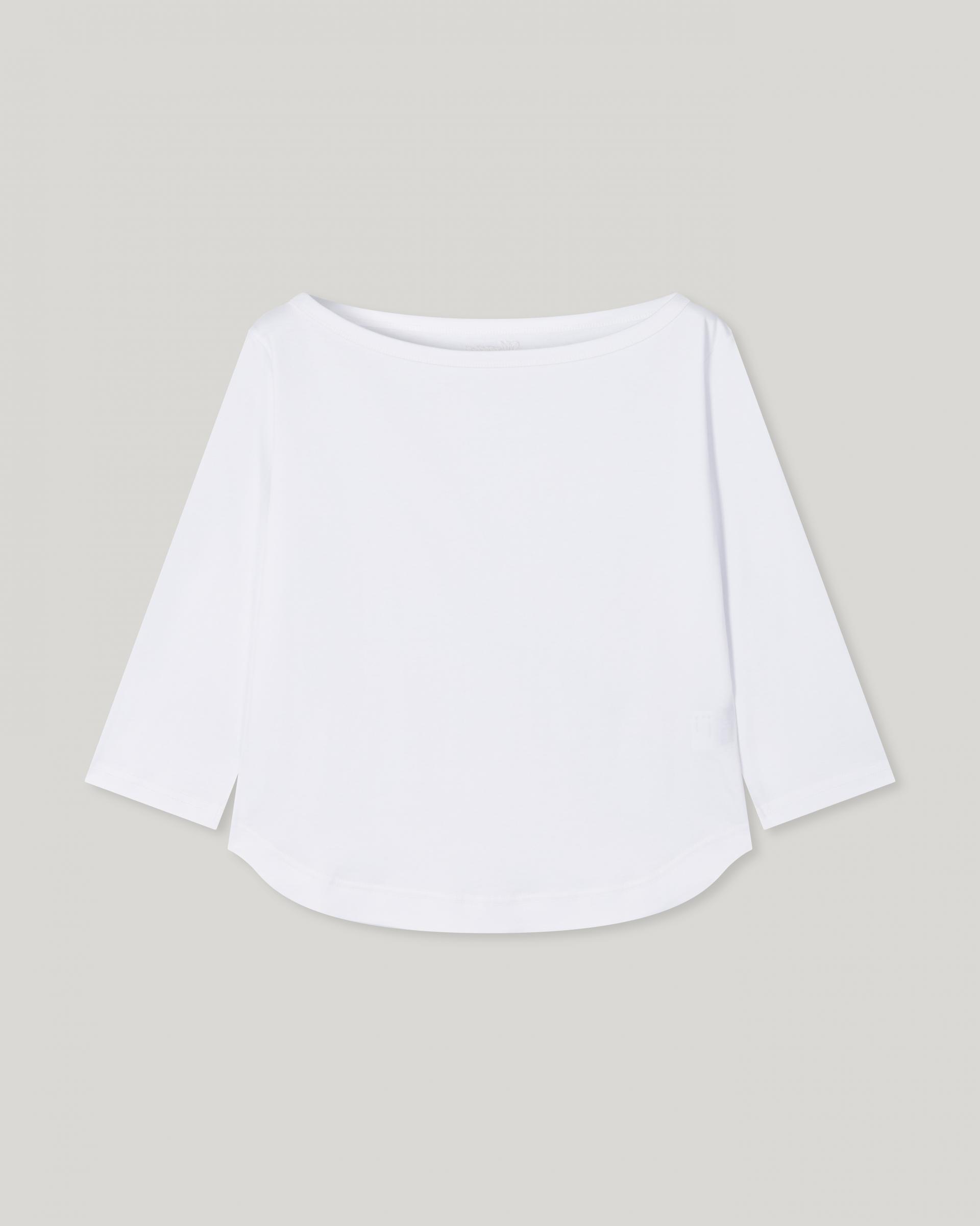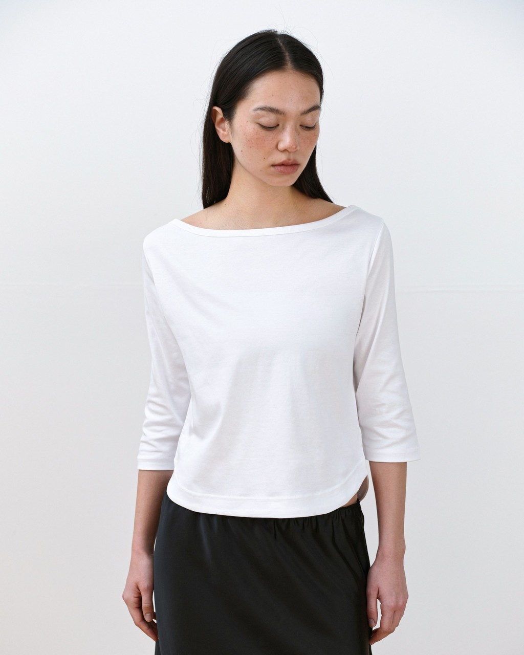 This 3/4 sleeve T-shirt features a softly flowing boat neckline that creates a feminine silhouette. Made from a lightweight and flexible fabric with a smooth touch, it feels gentle against the skin and offers comfortable wear. Perfect on its own or layered under outerwear, it’s an easy daily essential you’ll reach for often. The clean, moderate neckline provides a relaxed fit without feeling restrictive.