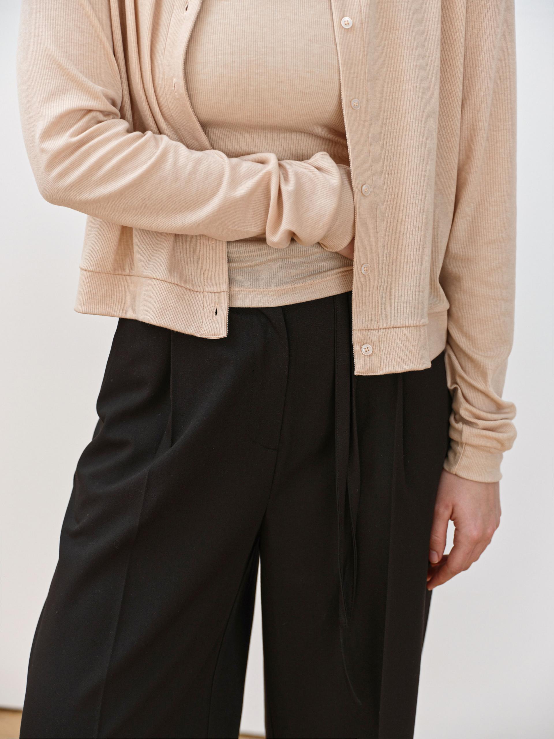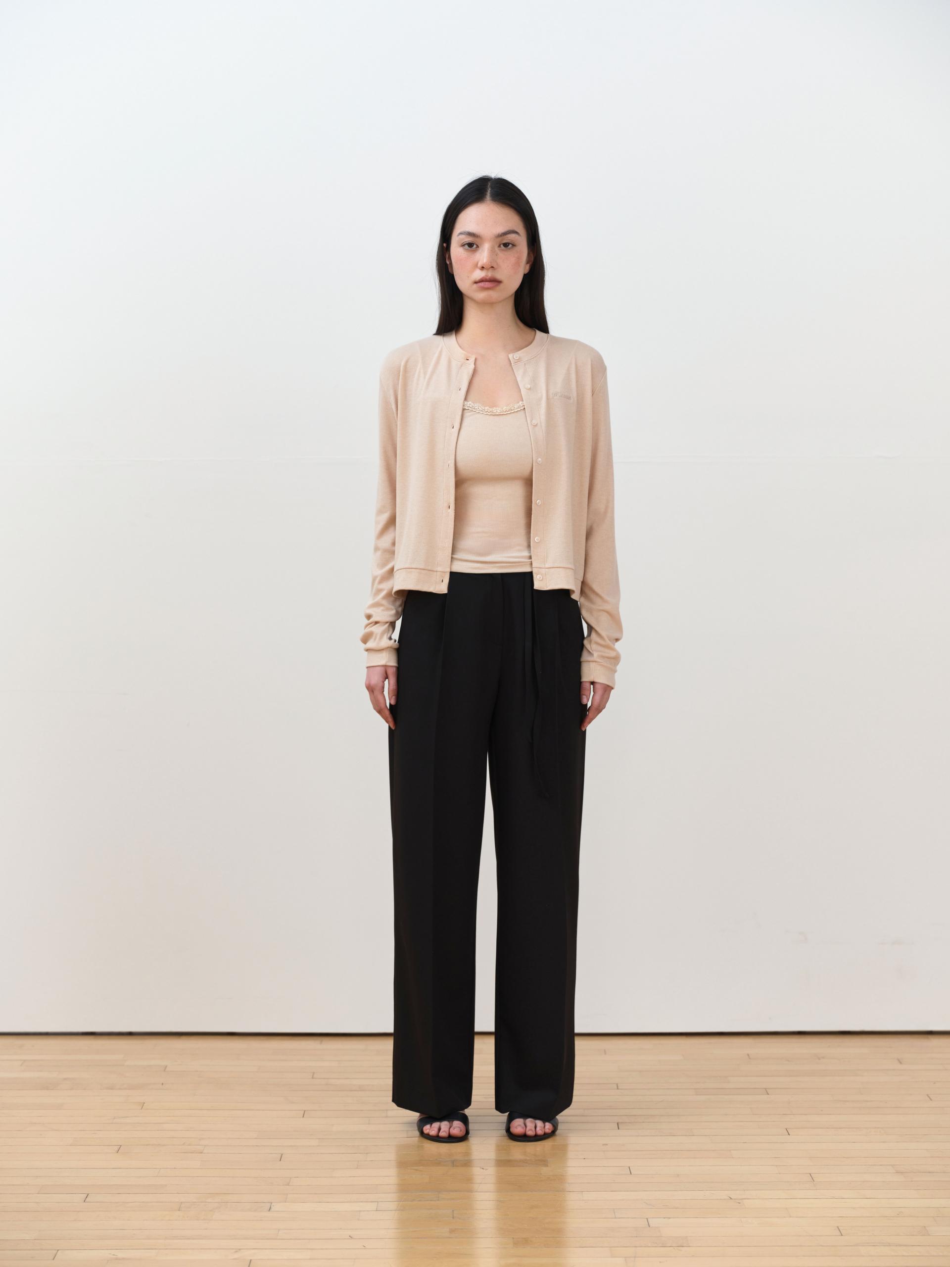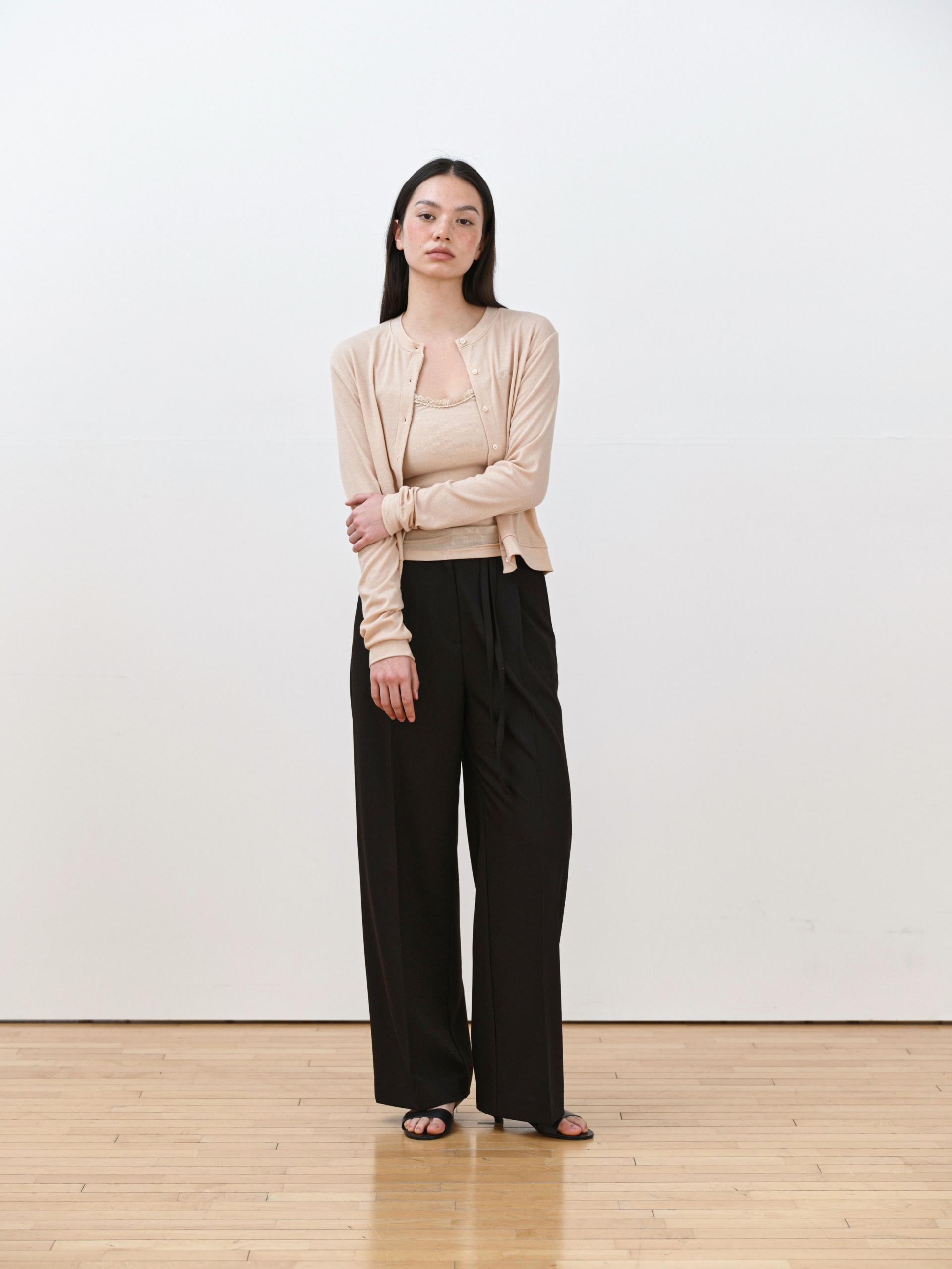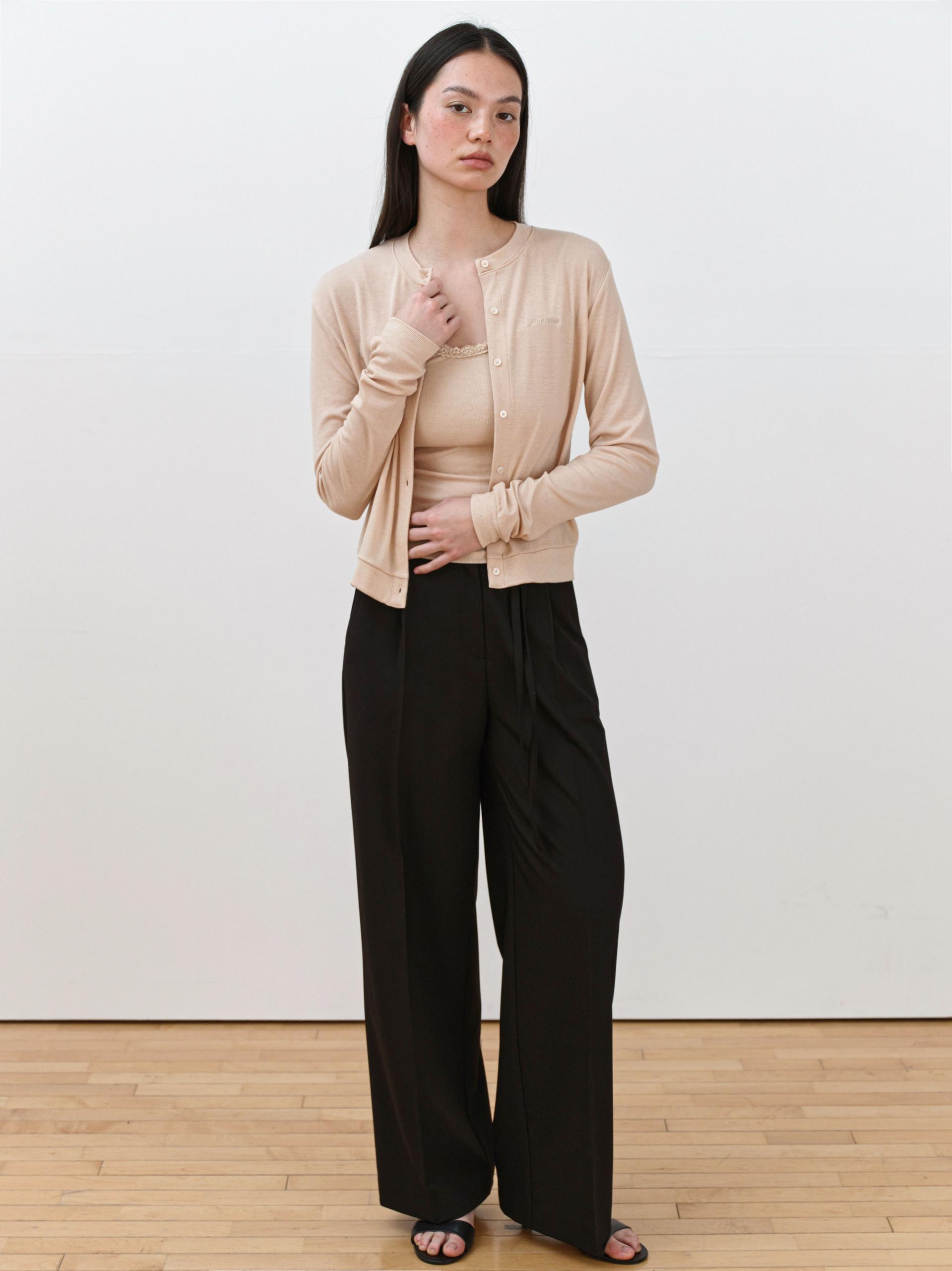 Belt loop details add versatility to your styling options, allowing the pants to suit a wide range of looks—from classic and modern to minimal. Suitable for both daily wear and office outfits, these seasonless slacks can be worn comfortably throughout the year.