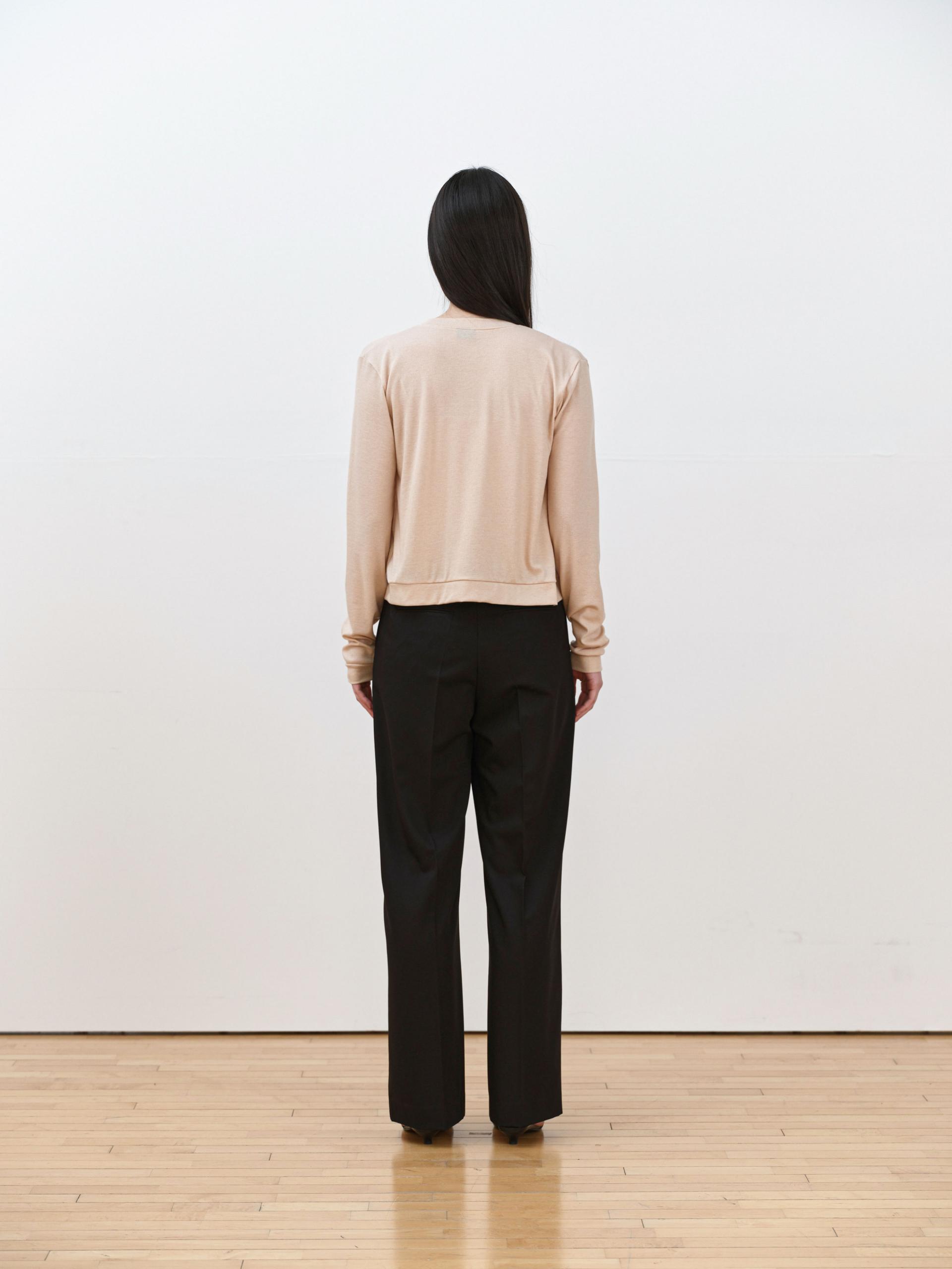Due to the characteristics of wool yarn, there may be foreign threads, stretching, shedding, pilling, and variations in yarn thickness. The fabric may pill due to friction, so please handle with care when wearing. If the product becomes creased, avoid steaming and instead gently iron at a low temperature with a light cloth placed over it, paying special attention to the surface. Outerwear such as jackets and coats should be dry cleaned.