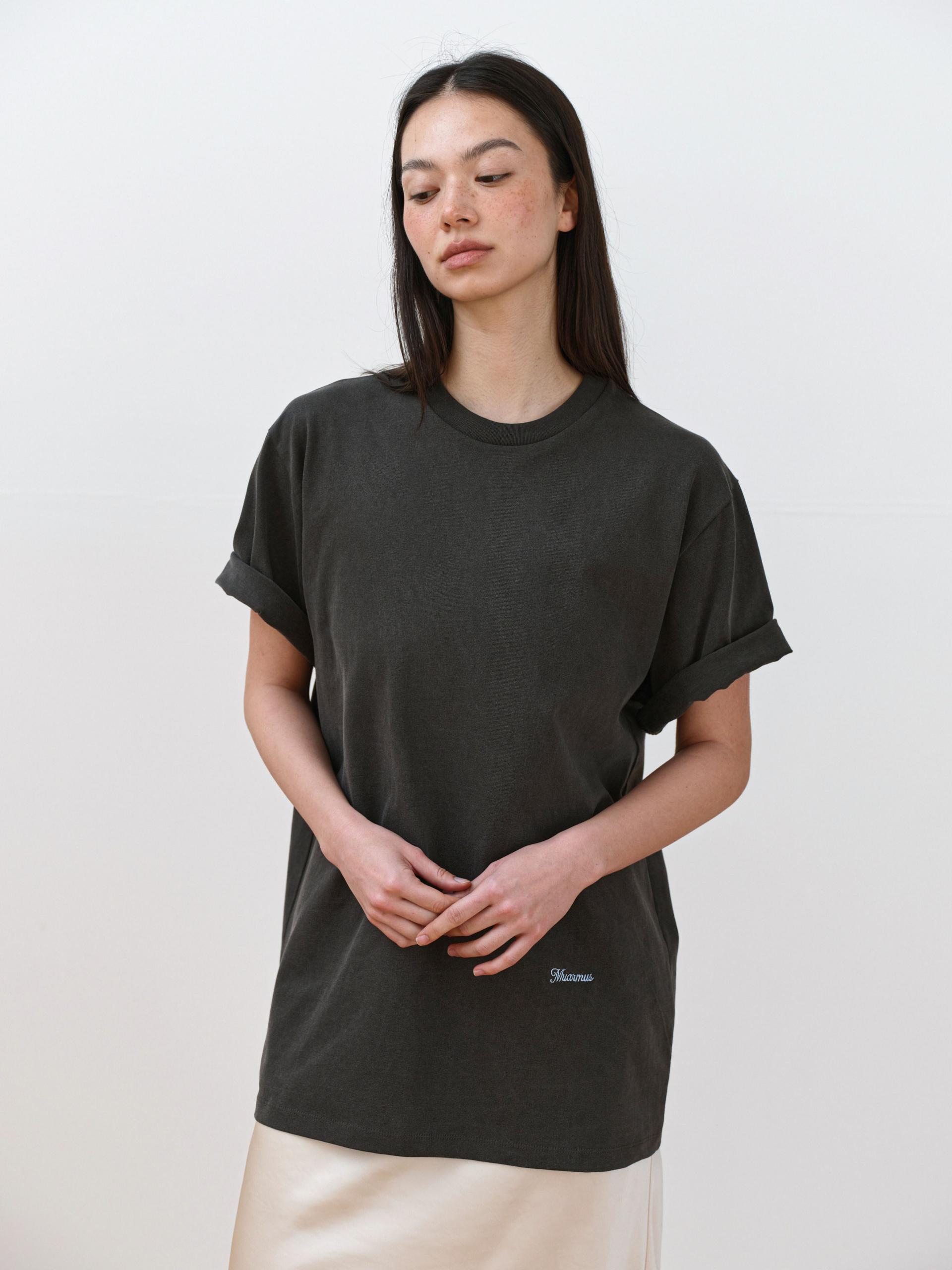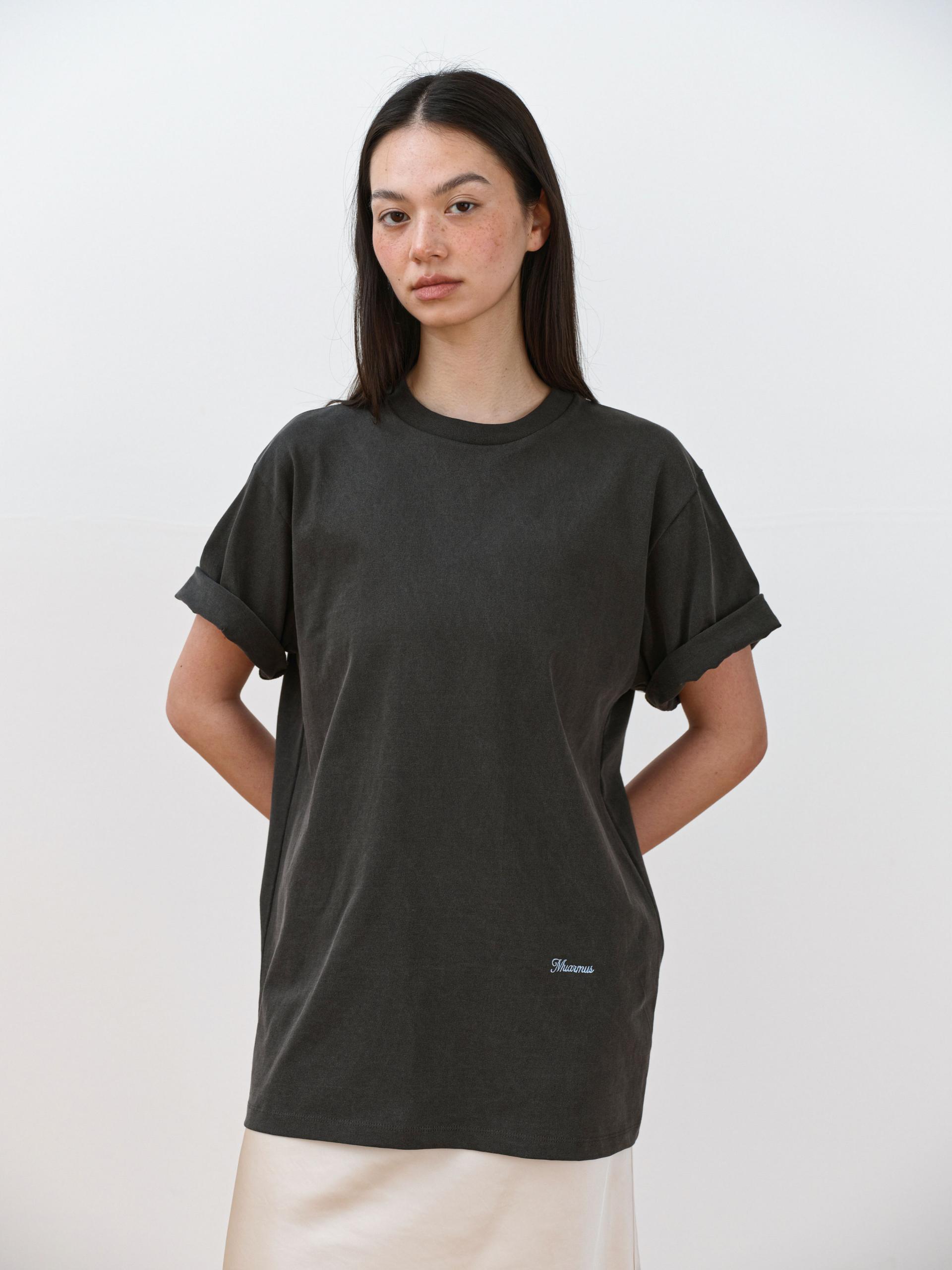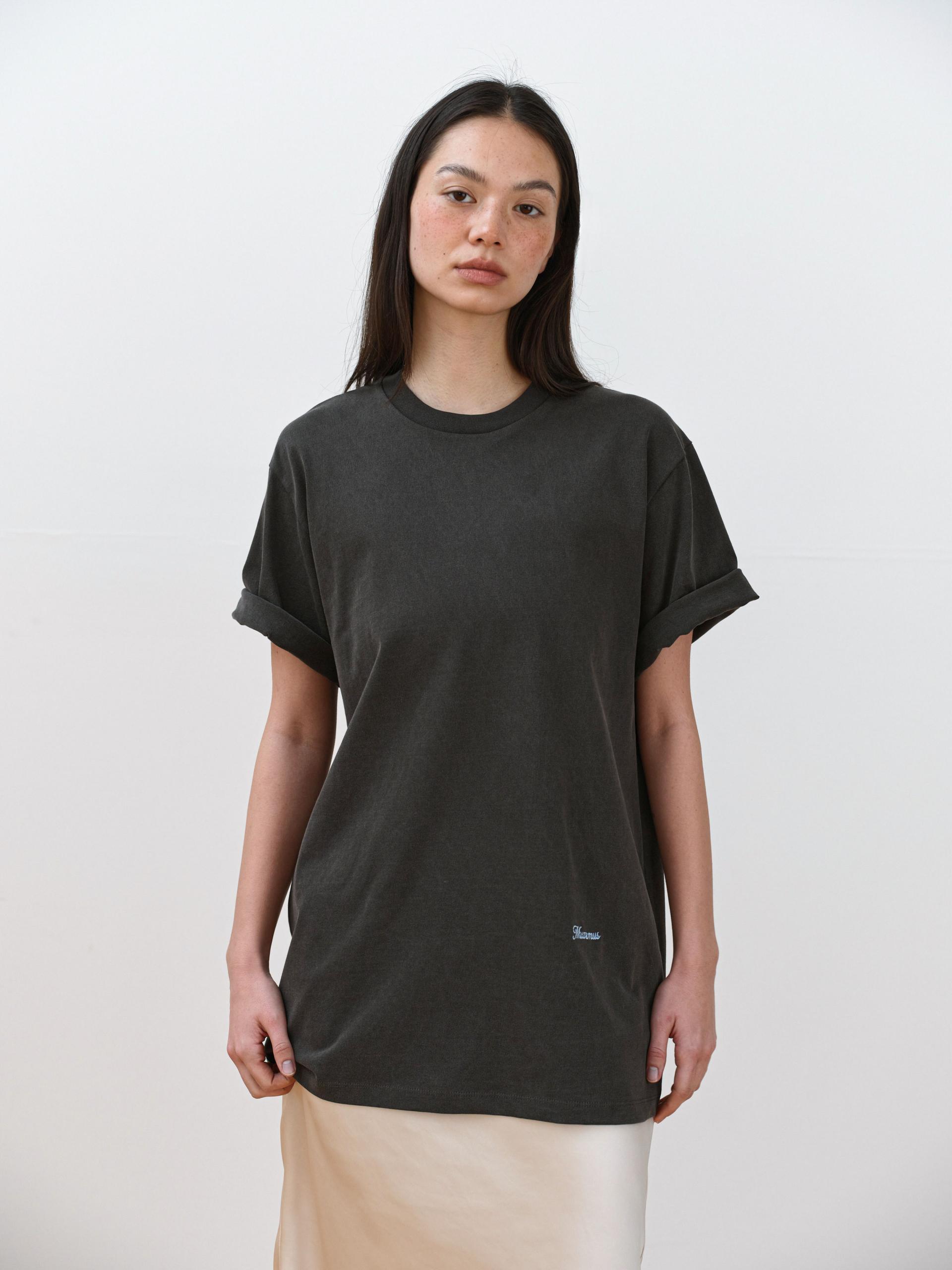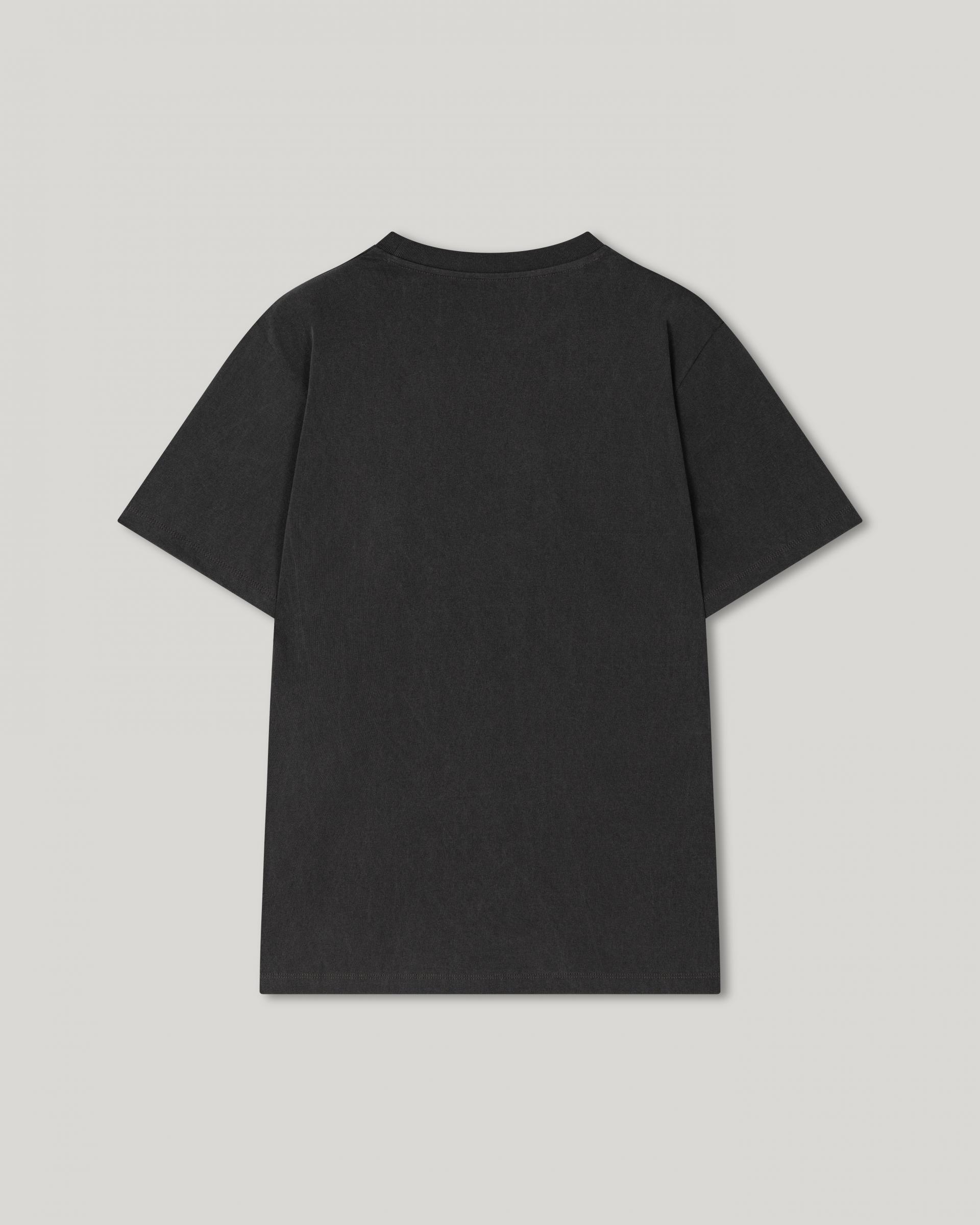 A T-shirt featuring the distinctive vintage color tones of pigment washing,