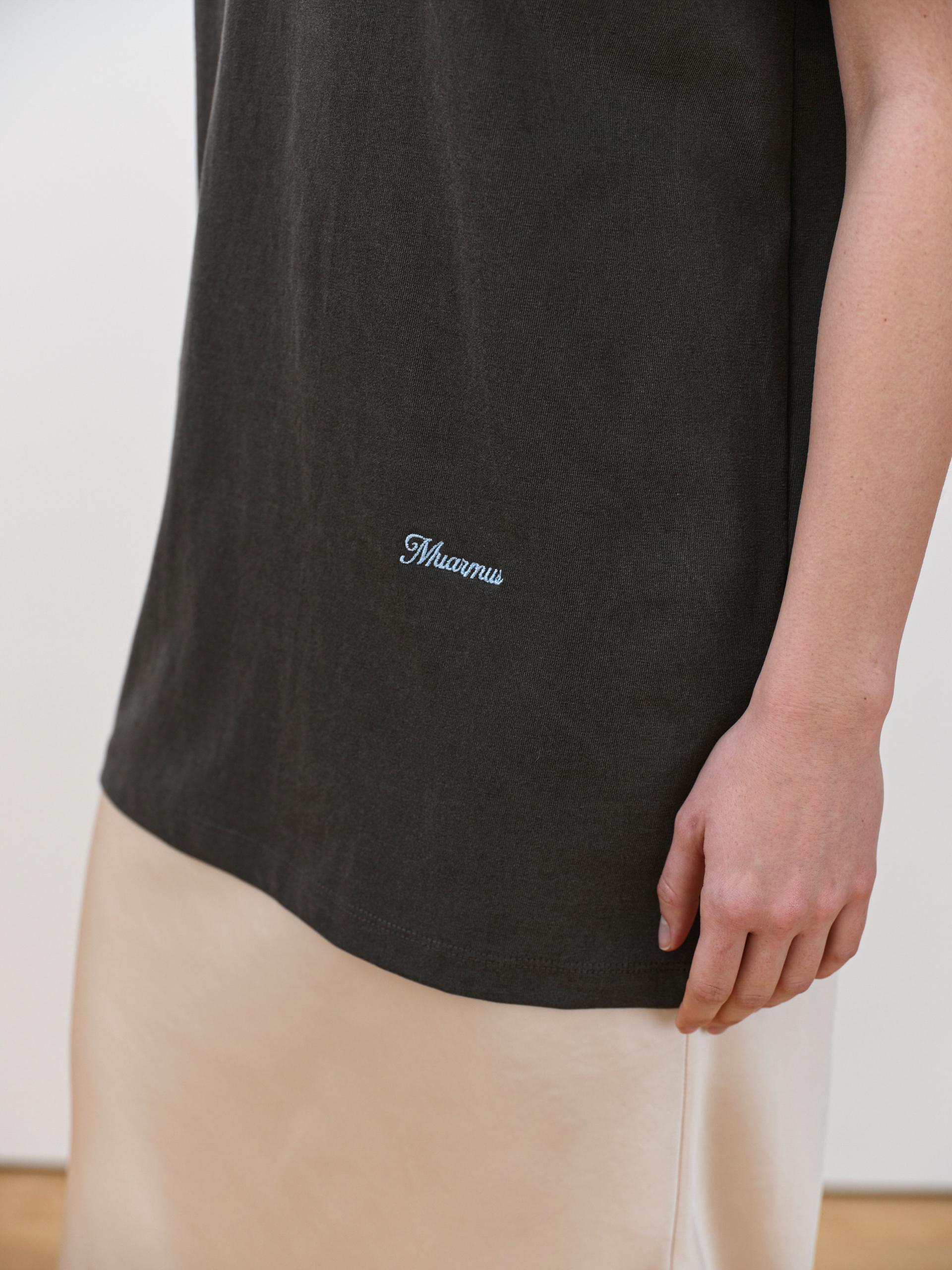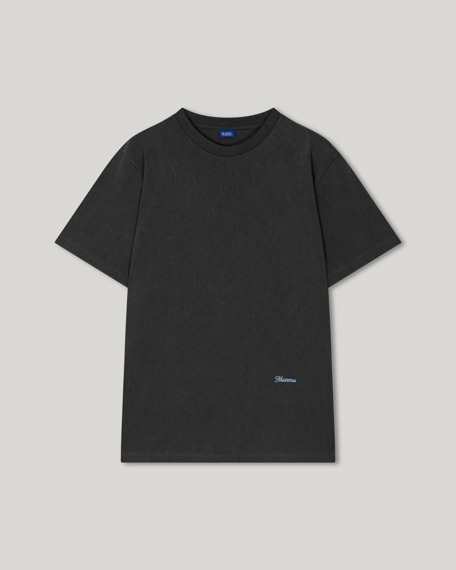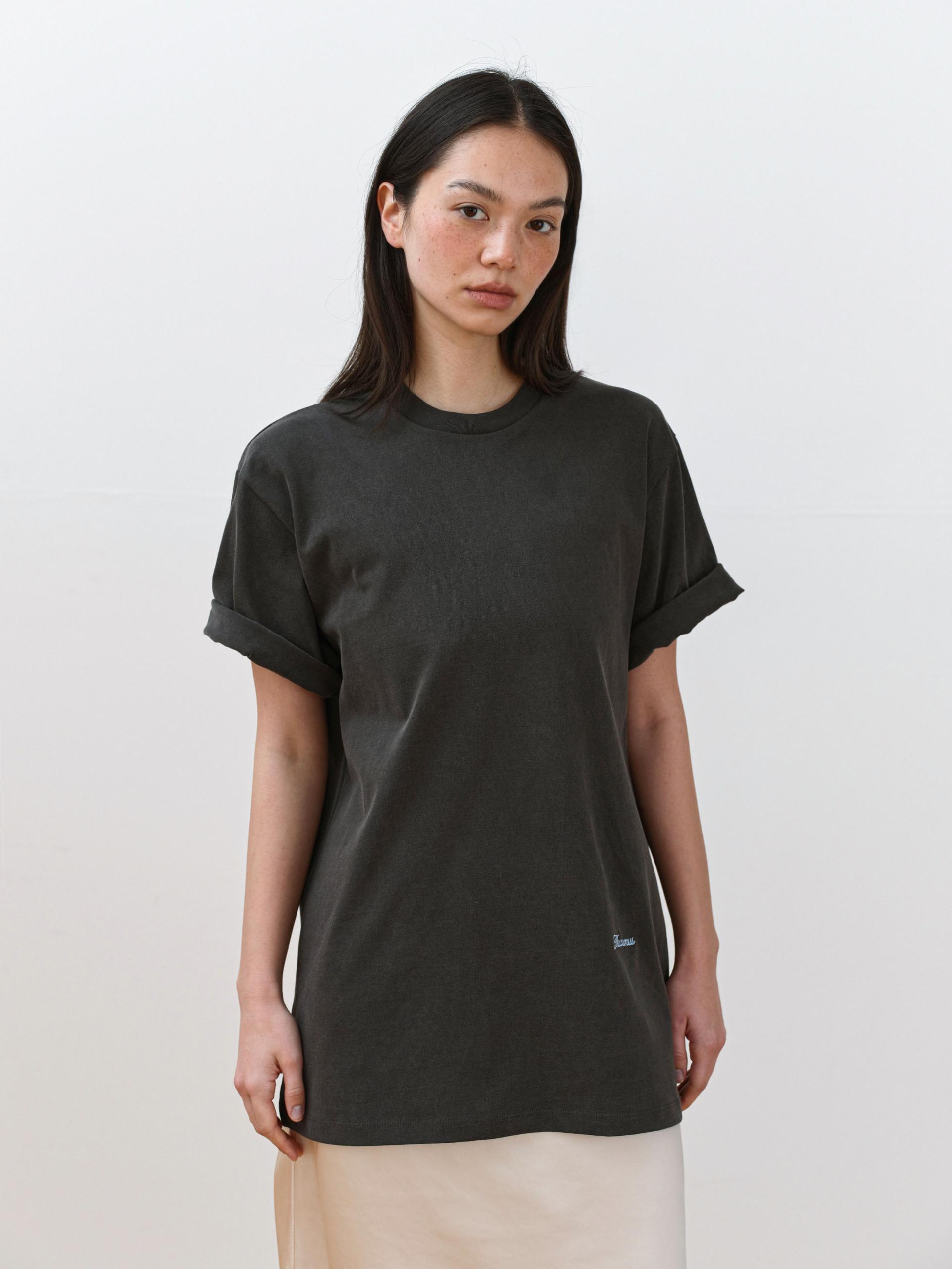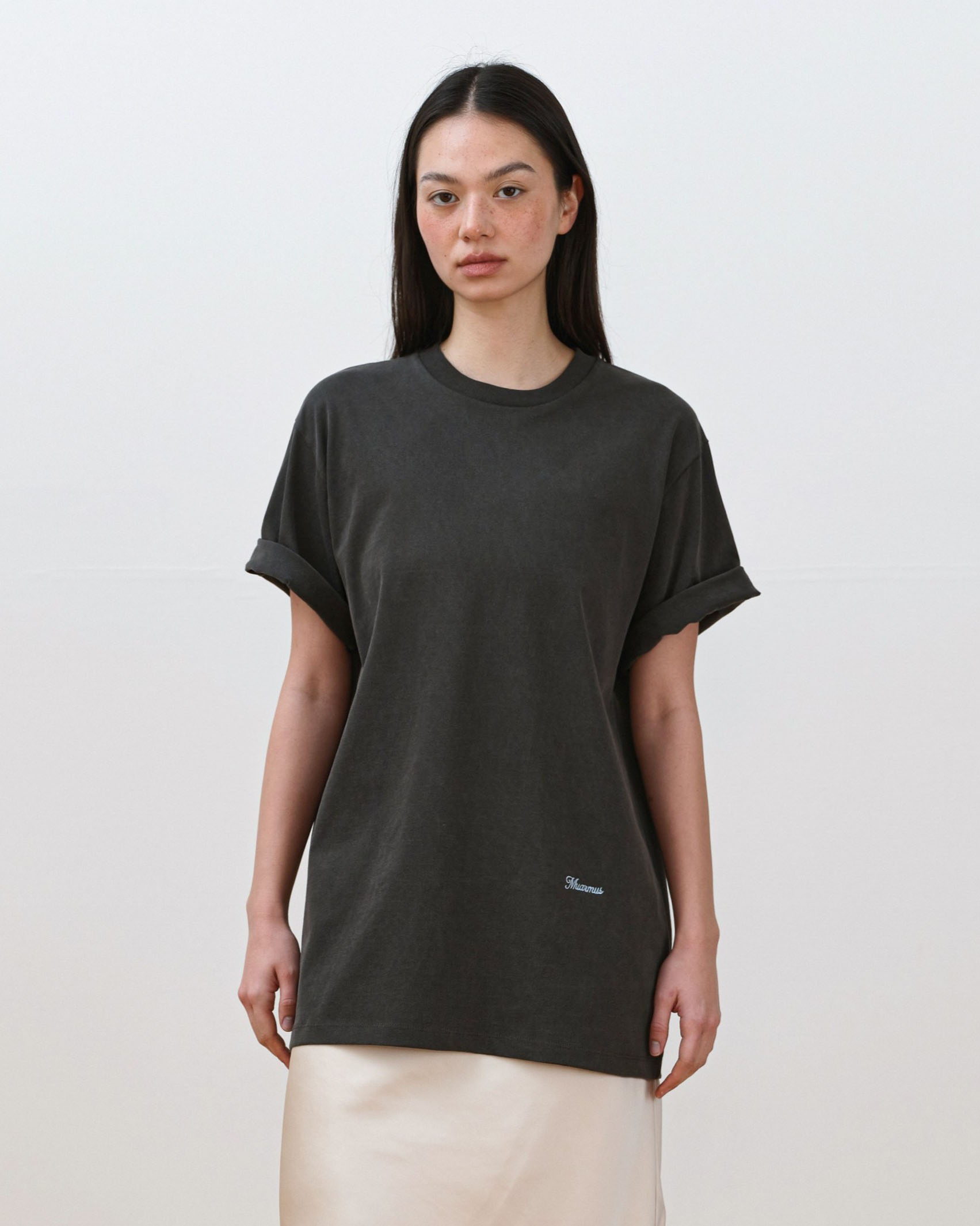 A T-shirt featuring the distinctive vintage color tones of pigment washing,