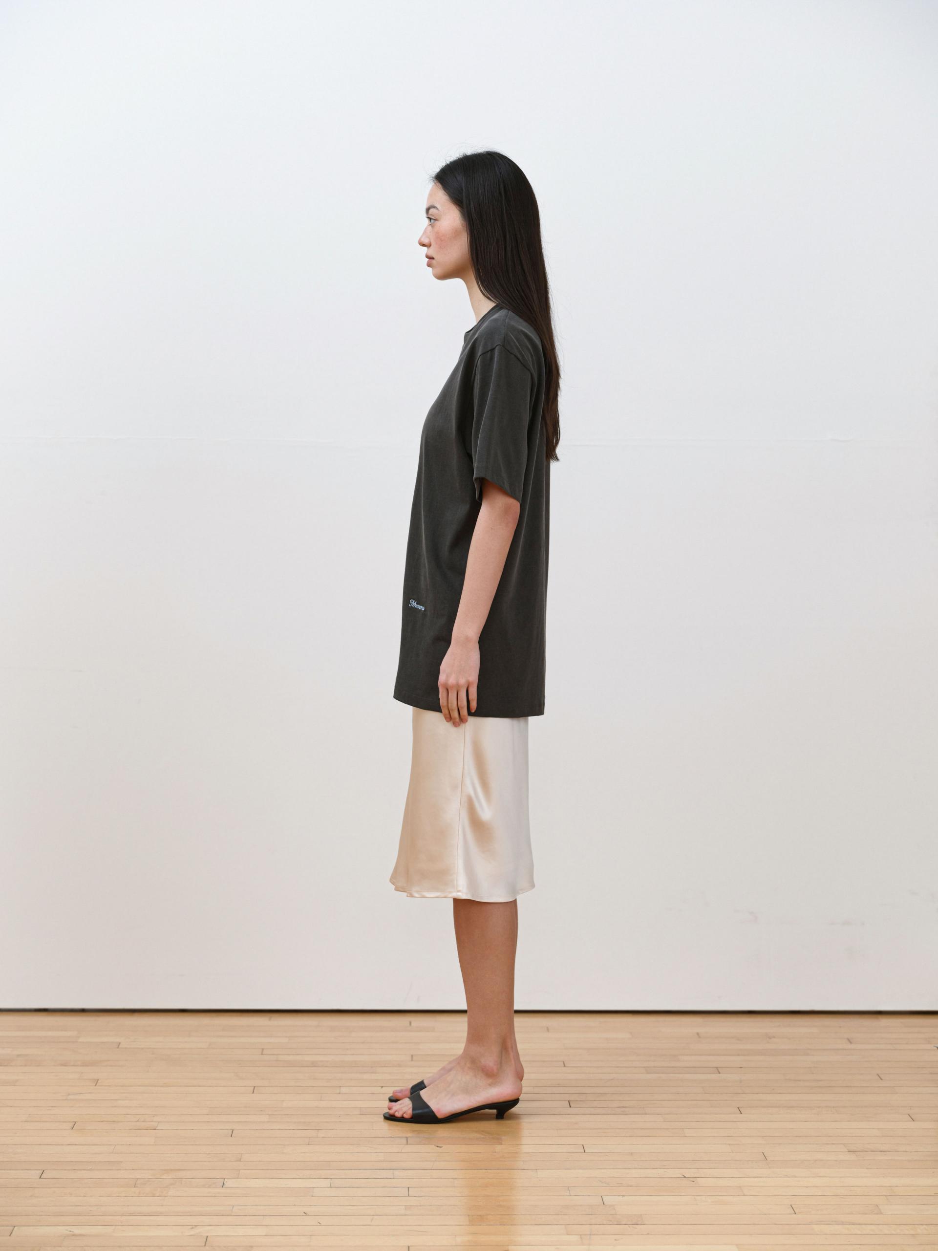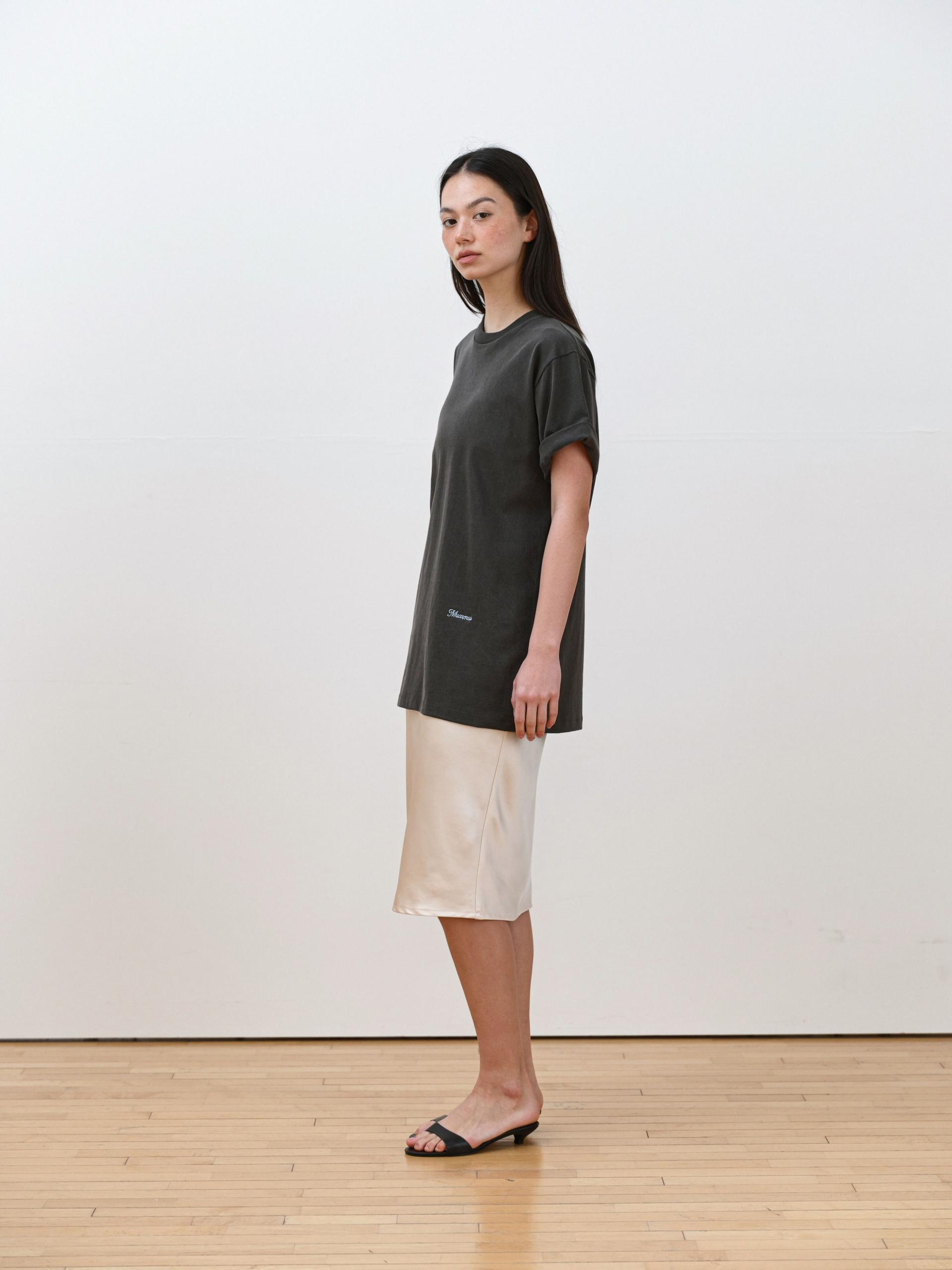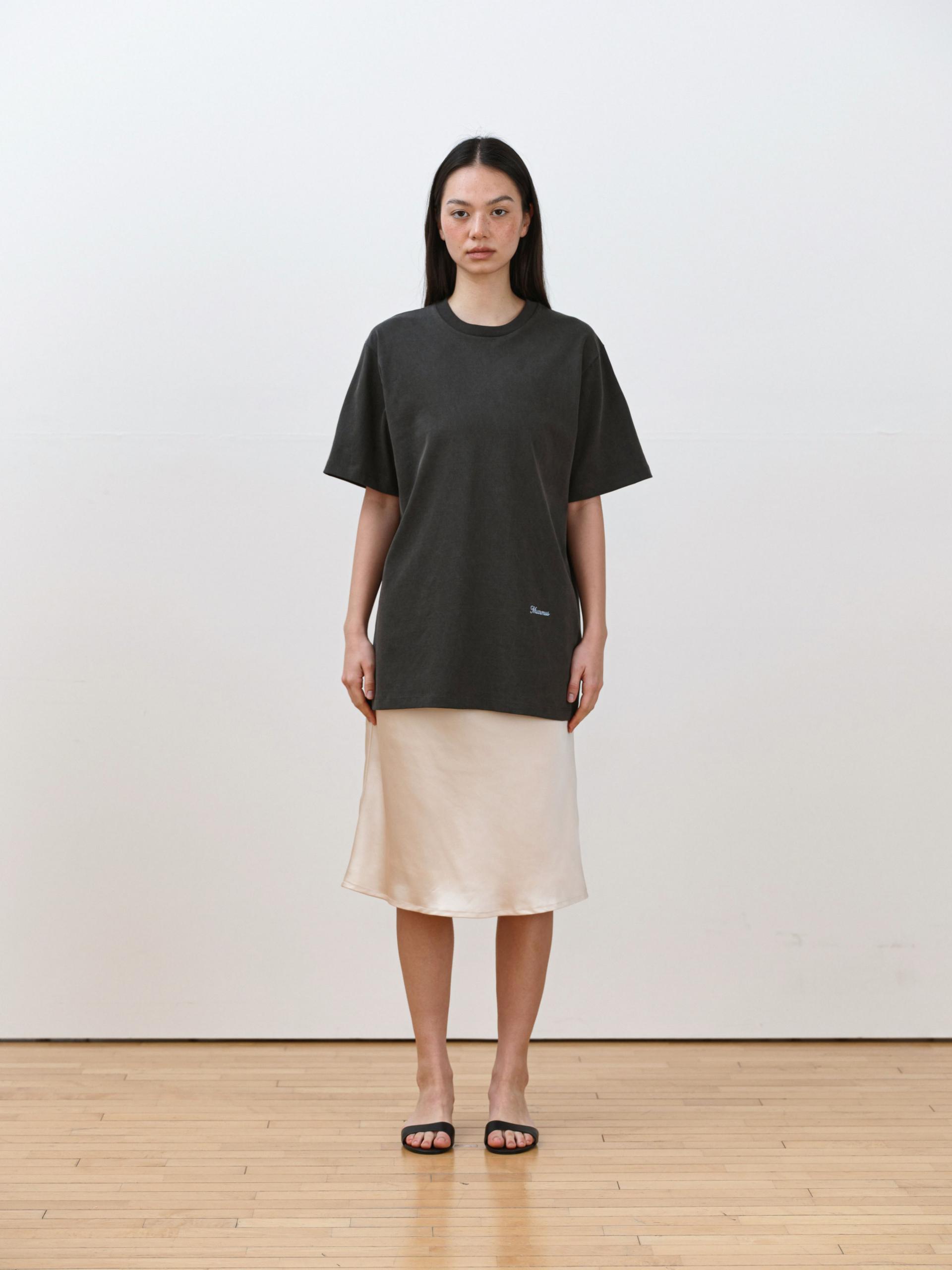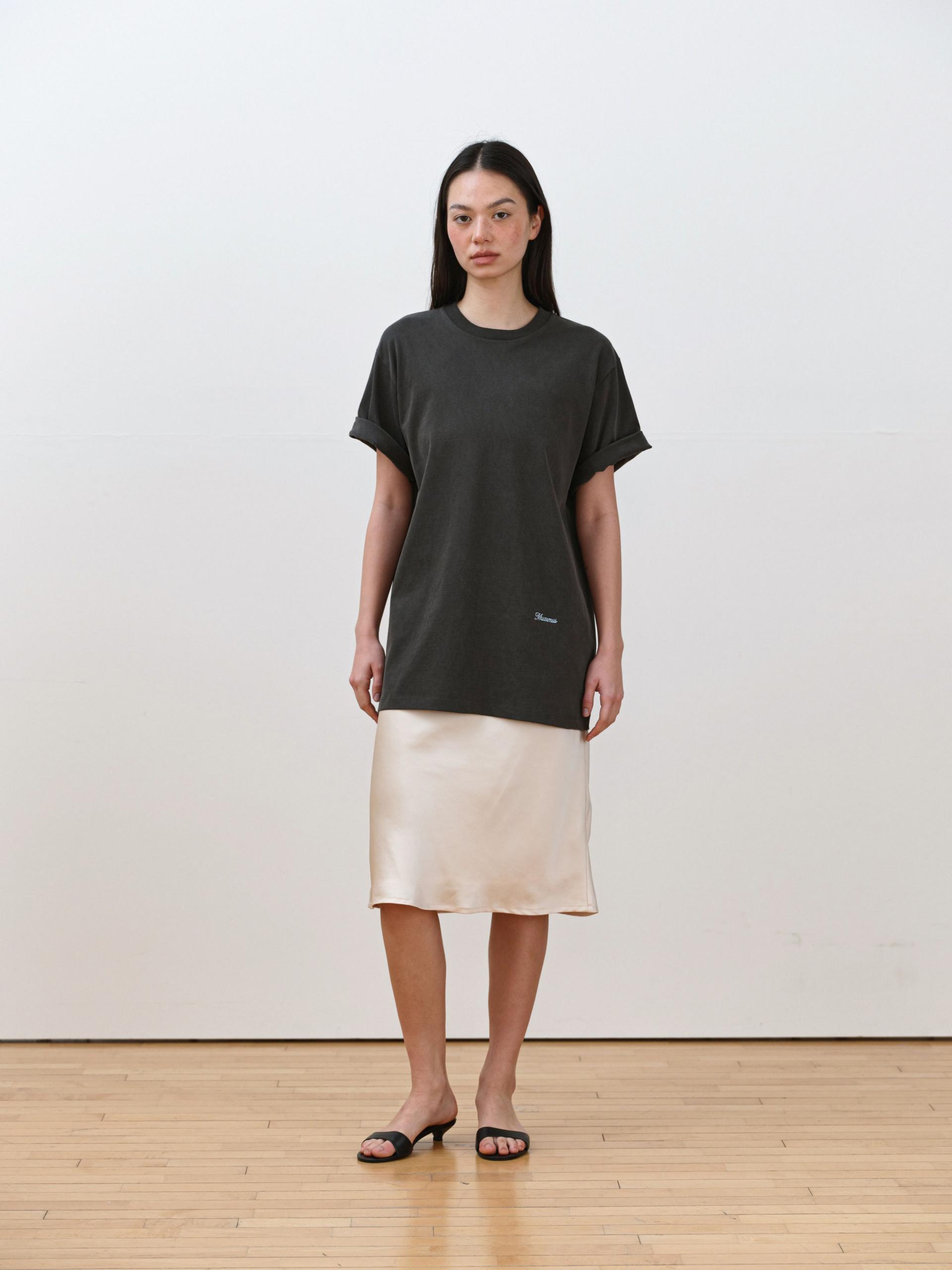 A T-shirt featuring the distinctive vintage color tones of pigment washing,