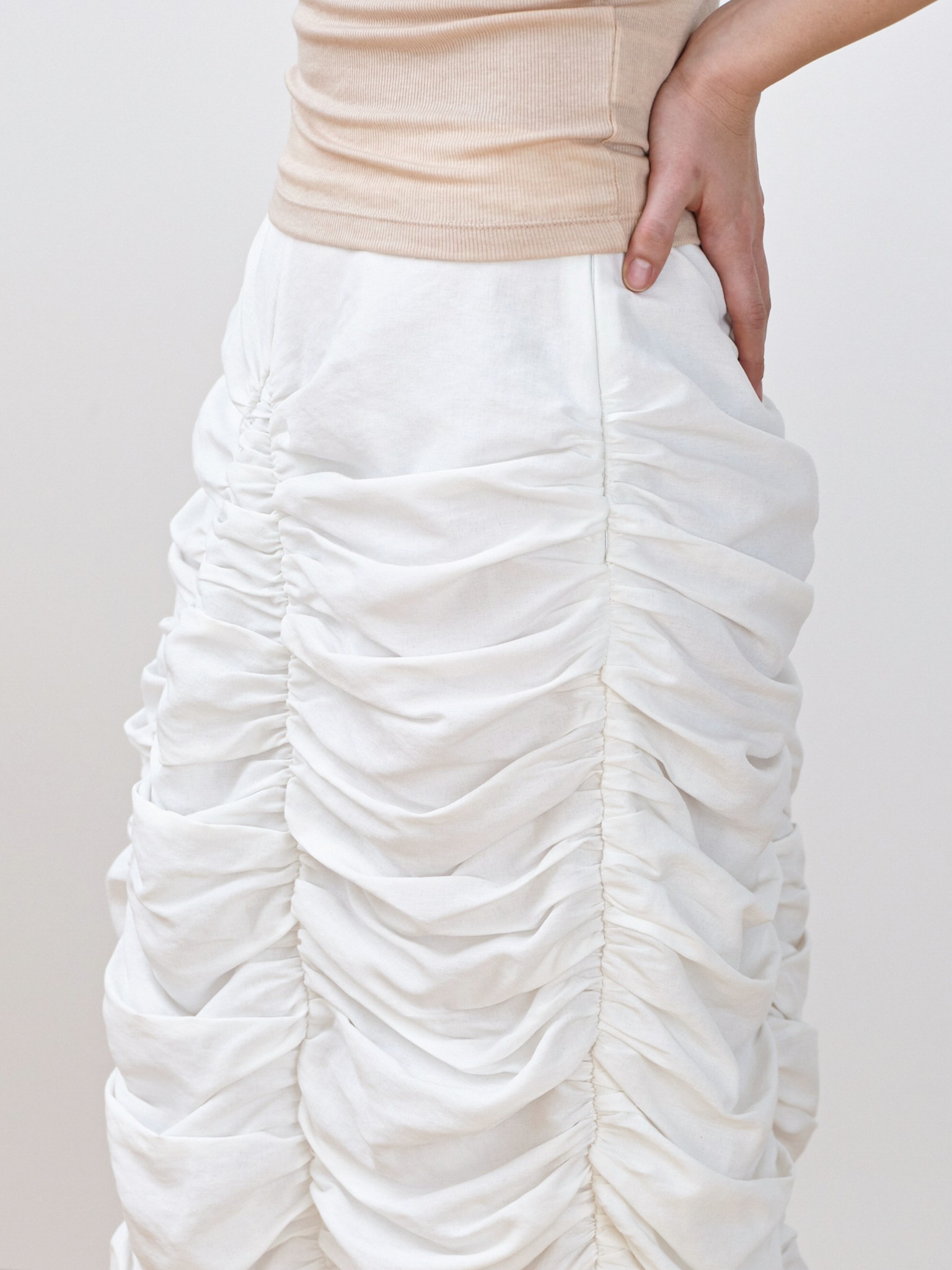 Flora Shirring Skirt [Ivory]