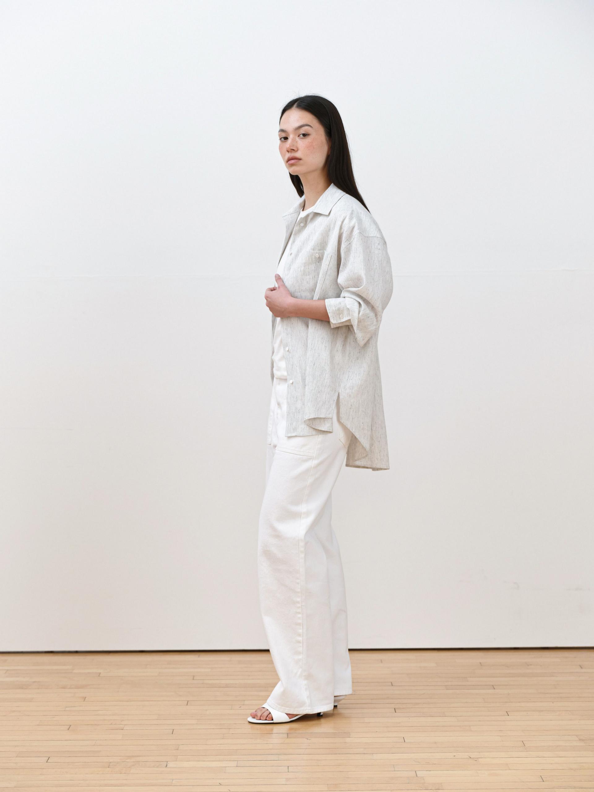 featuring the naturally wrinkled texture unique to linen that enhances its effortless,