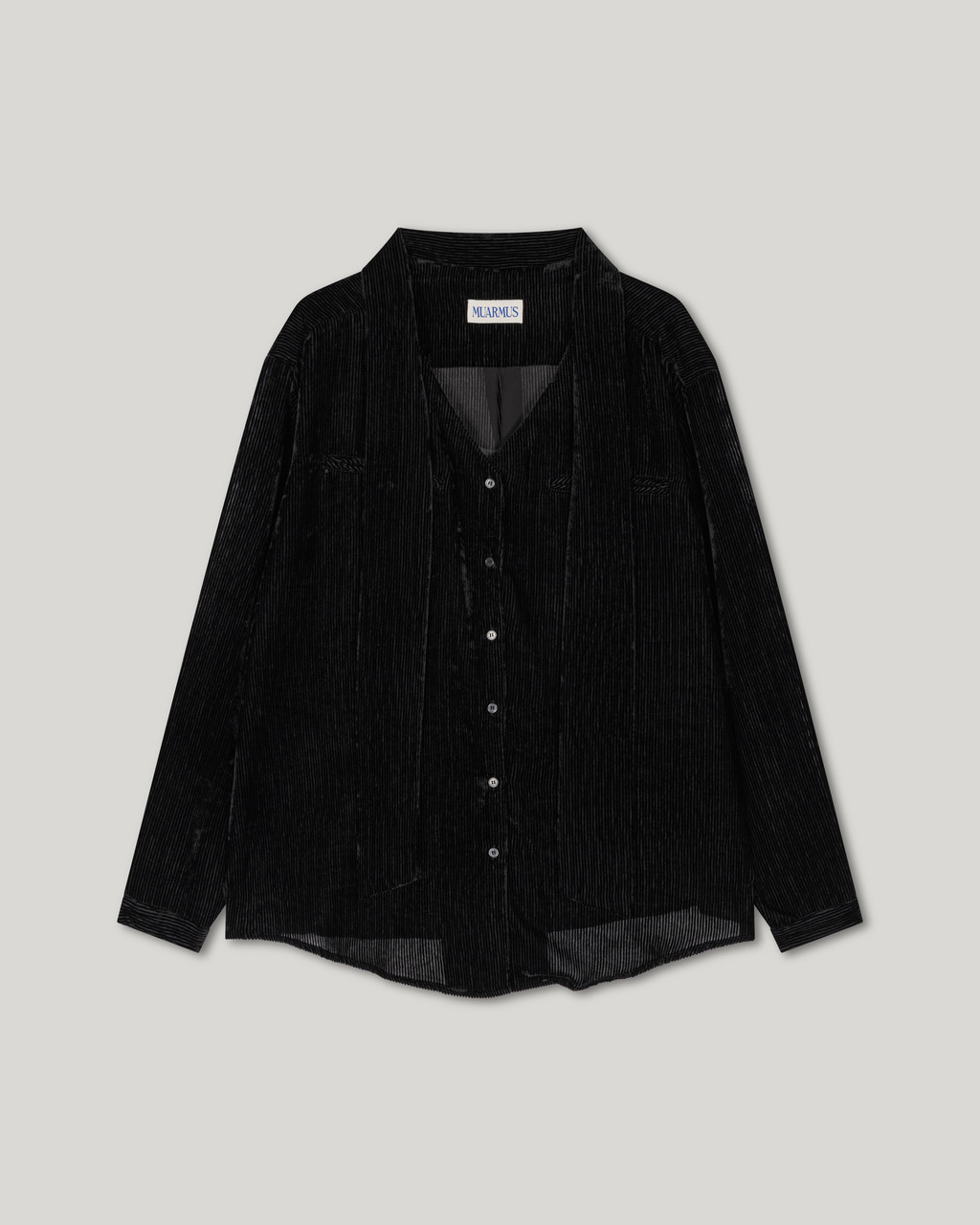 [리퍼브] Pannel Tie Velvet Blouse [Black]Sold out