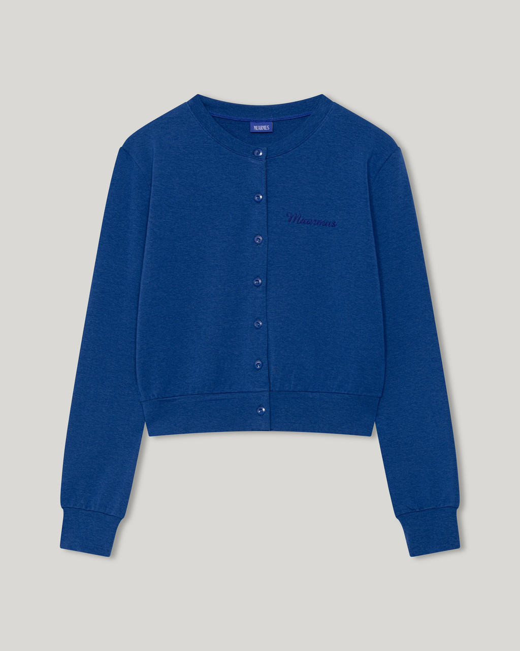 Tone-on-tone buttons engraved with the MUARMUS logo add a subtle touch of detail,