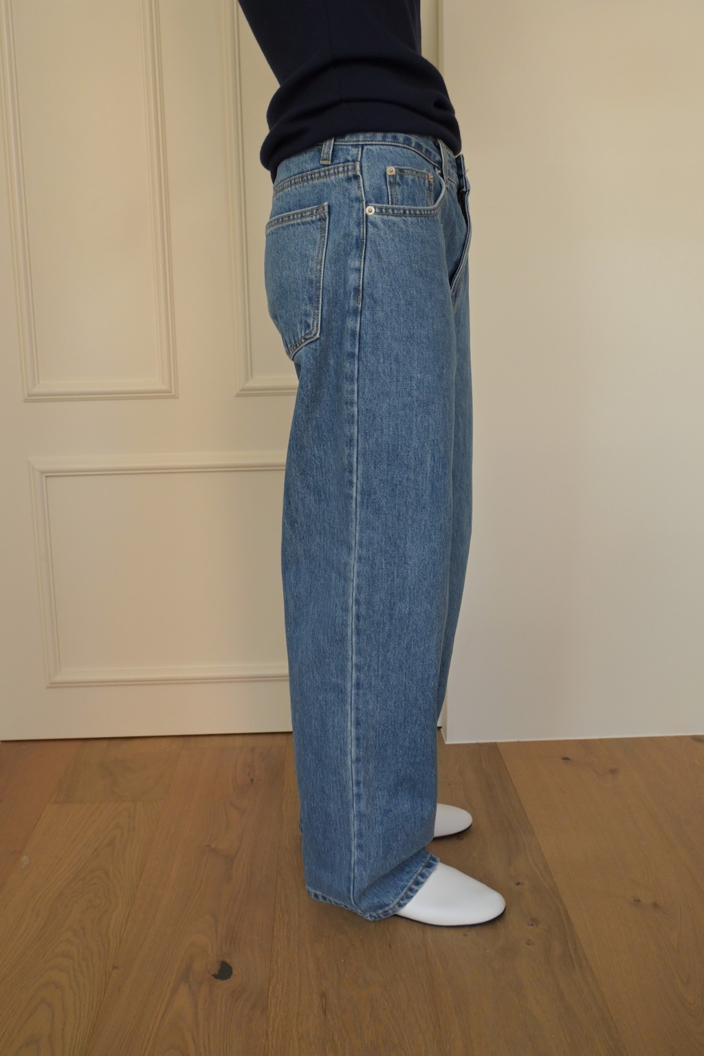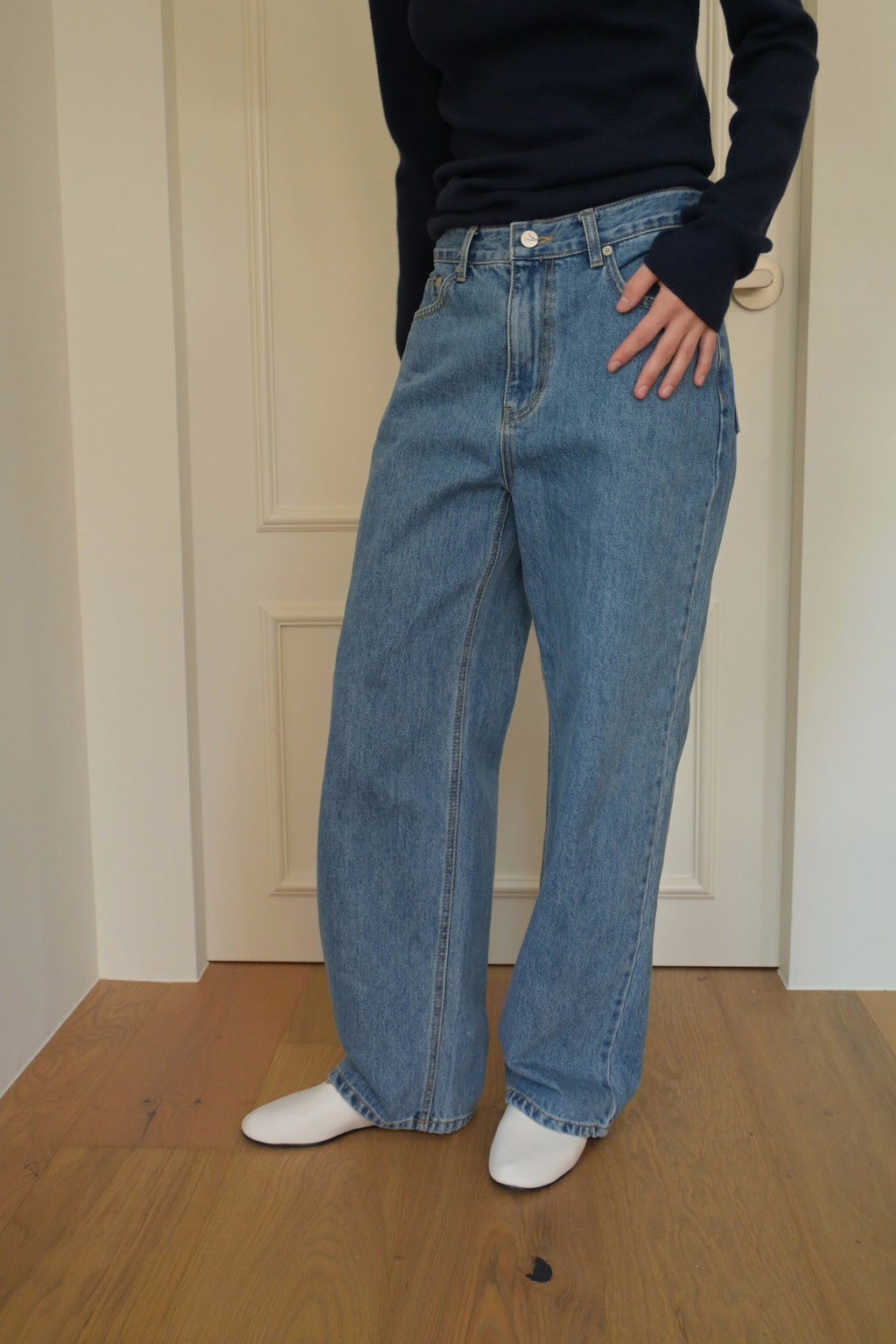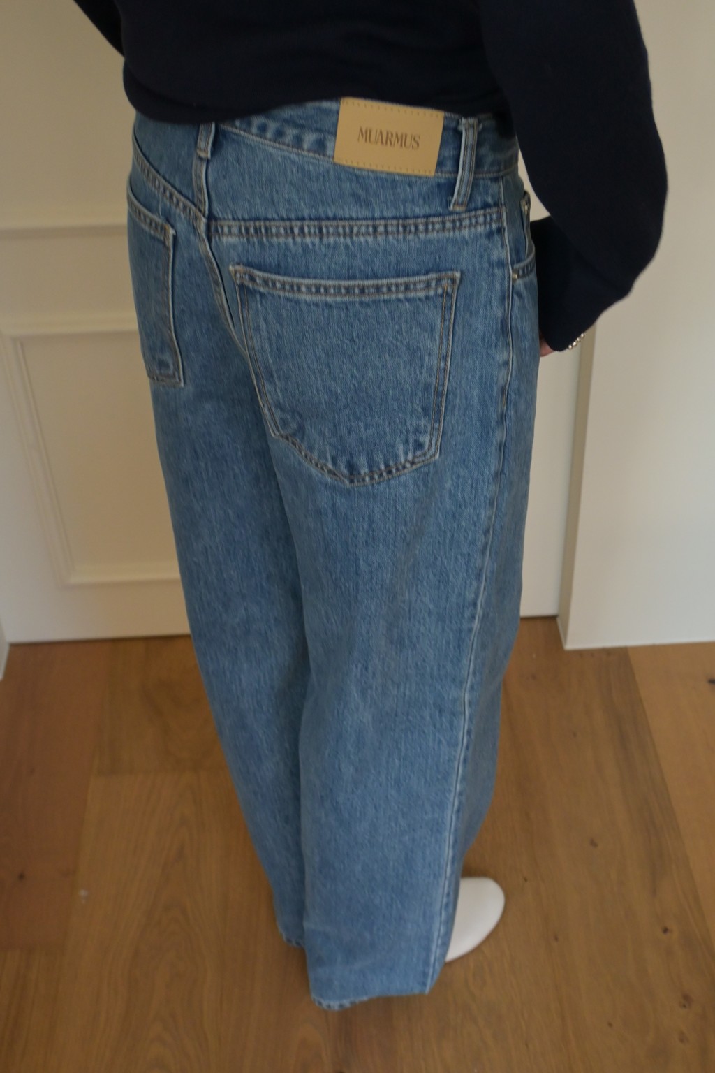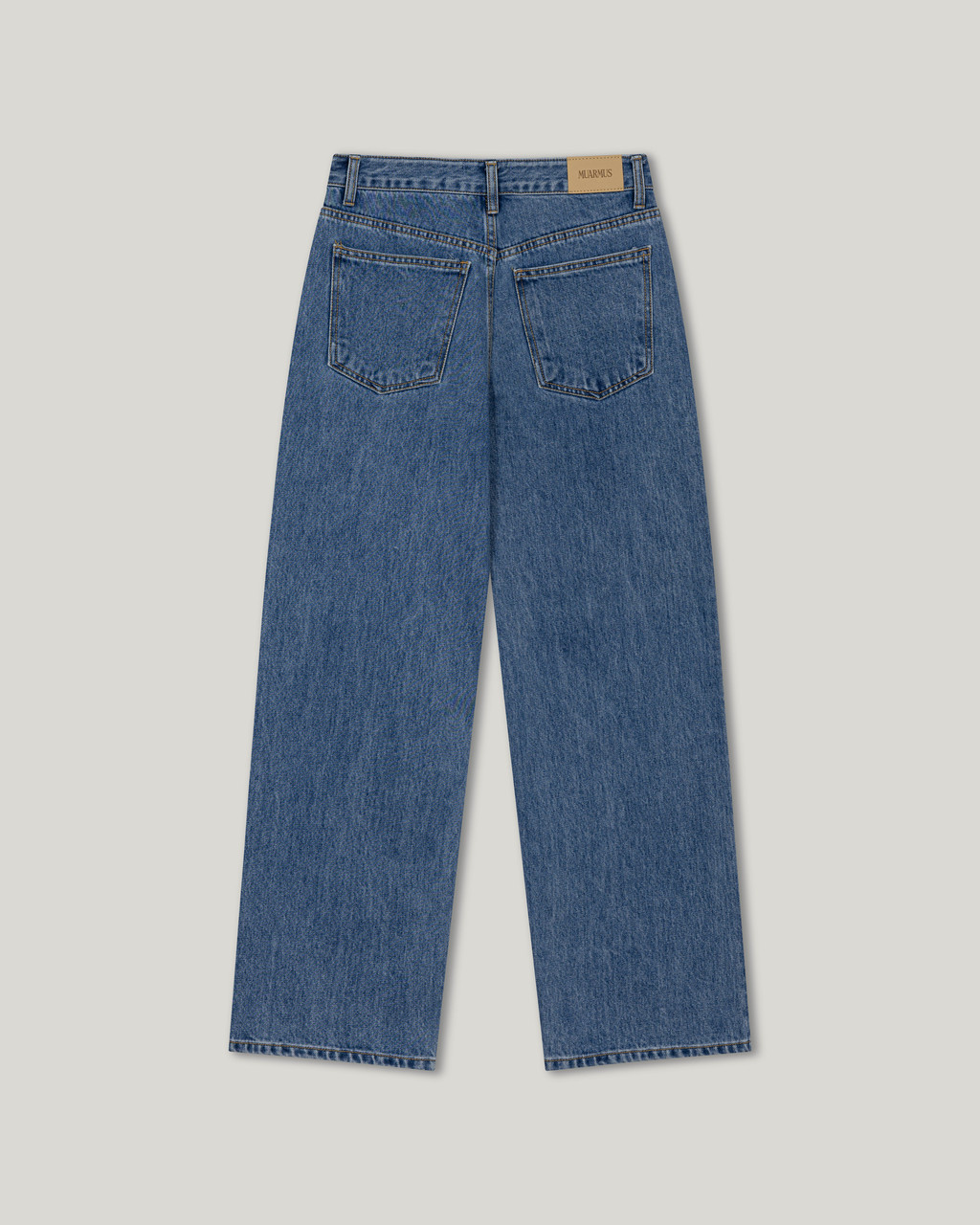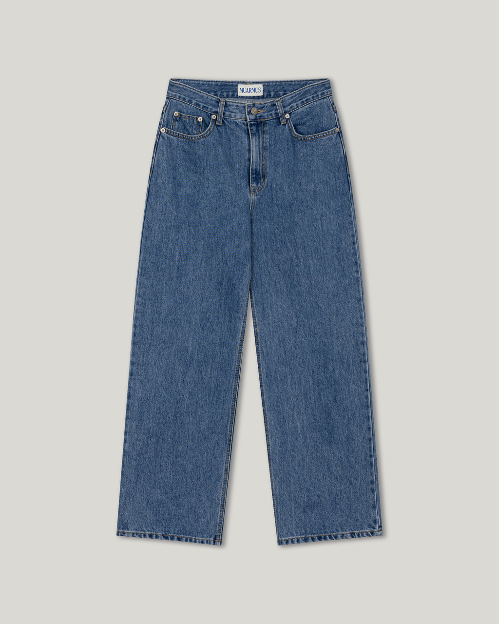 Muarmus’s signature wide denim in classic medium blue.