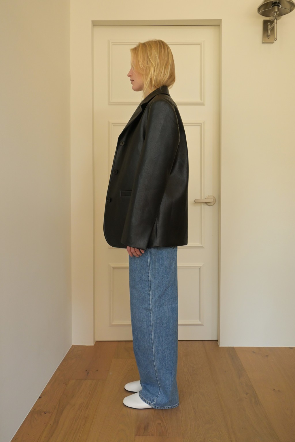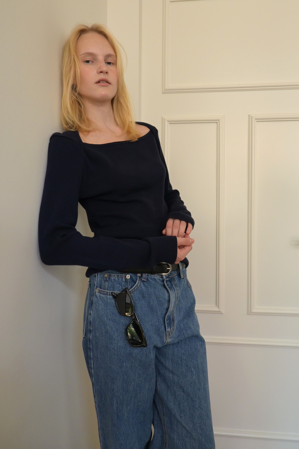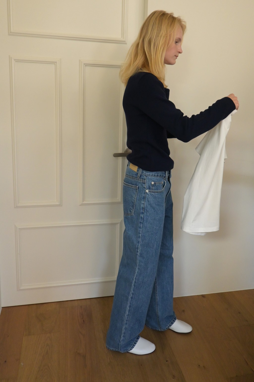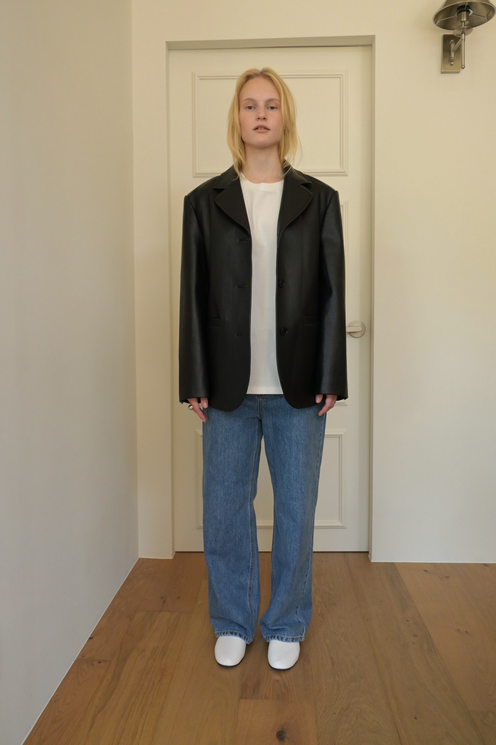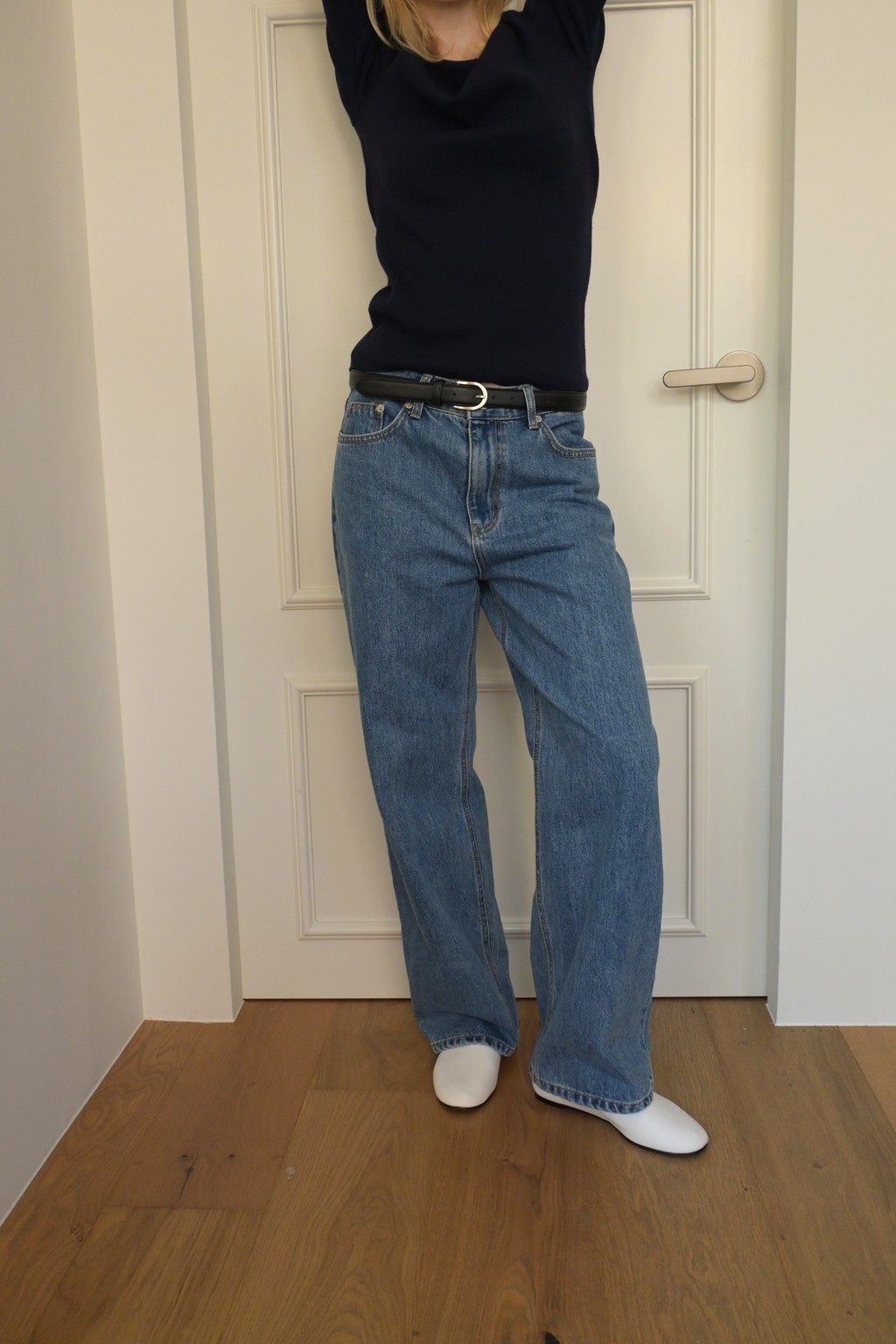 Muarmus’s signature wide denim in classic medium blue.
