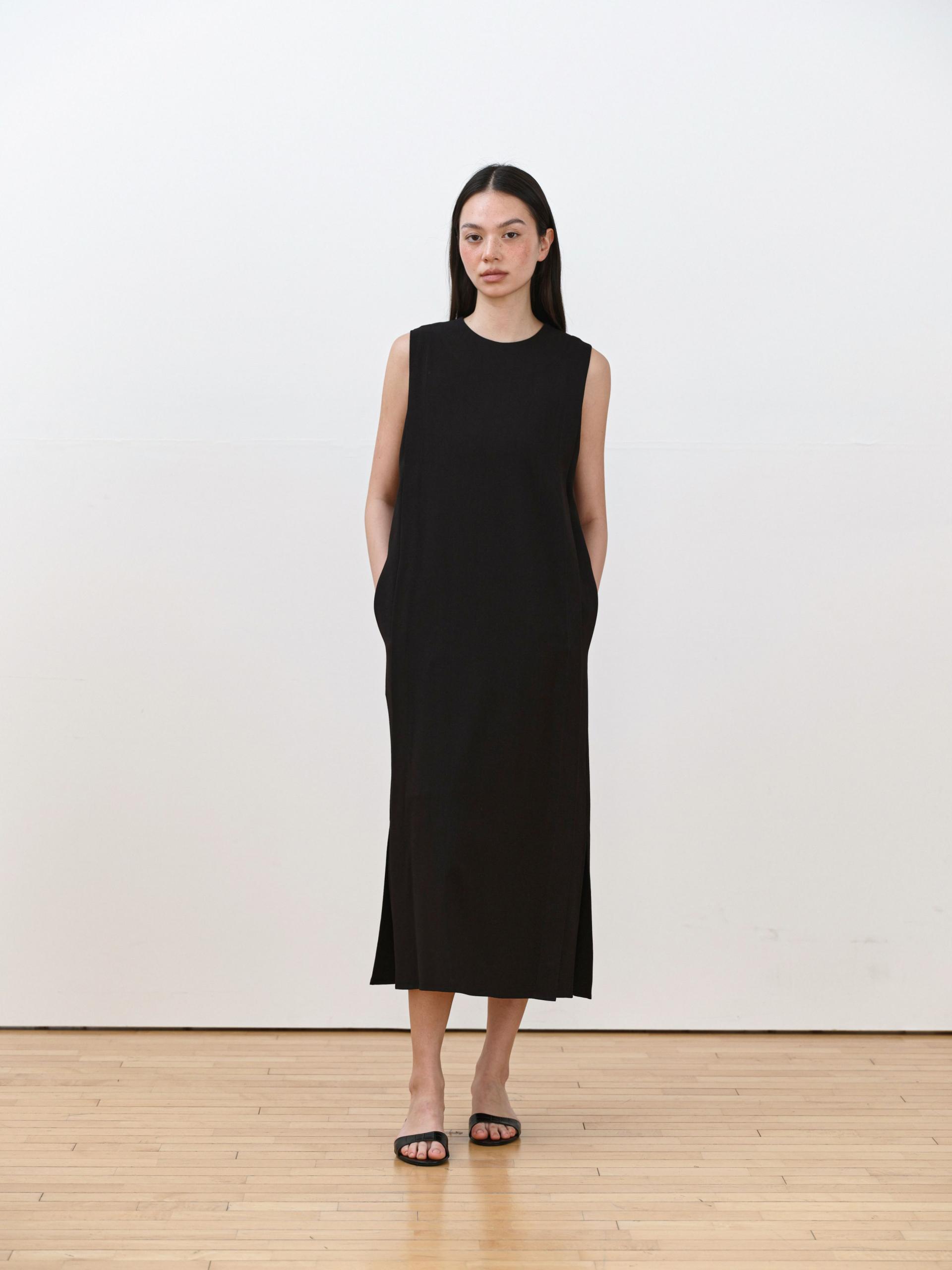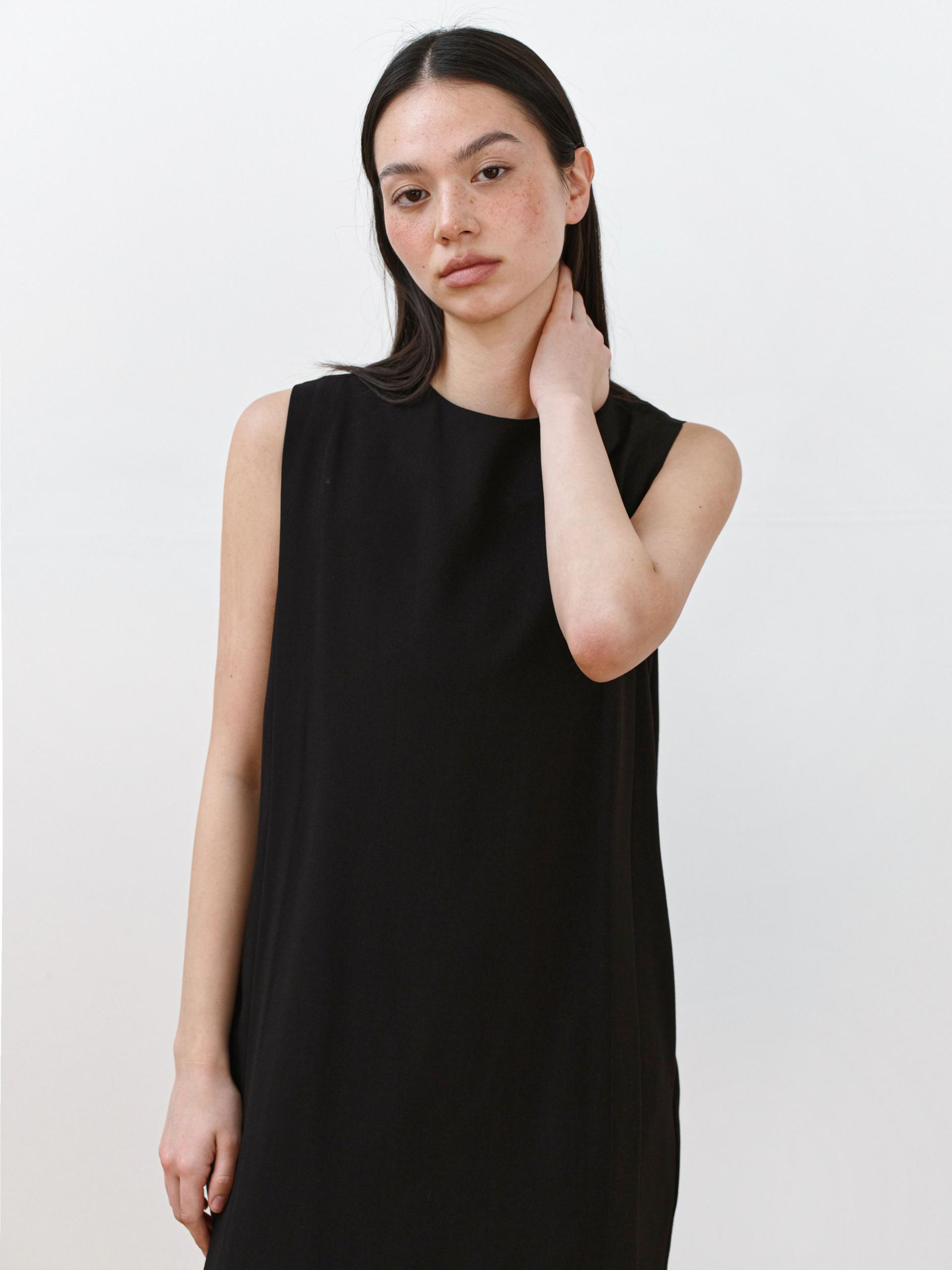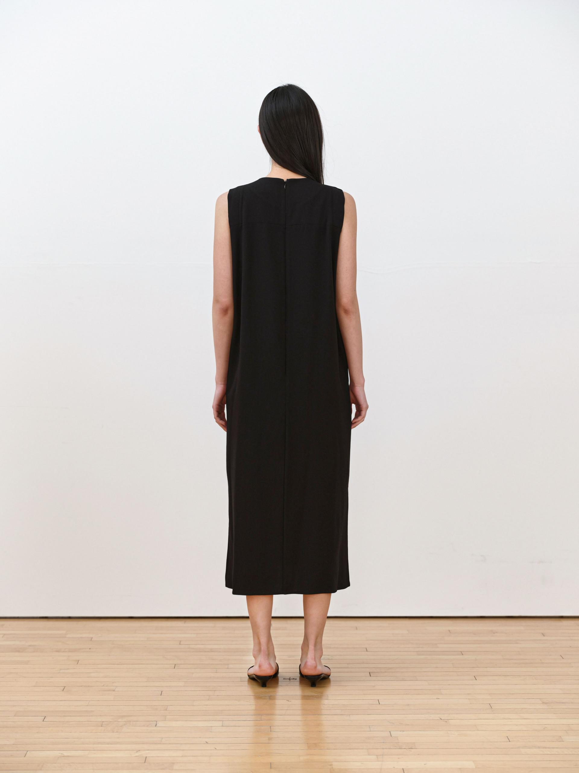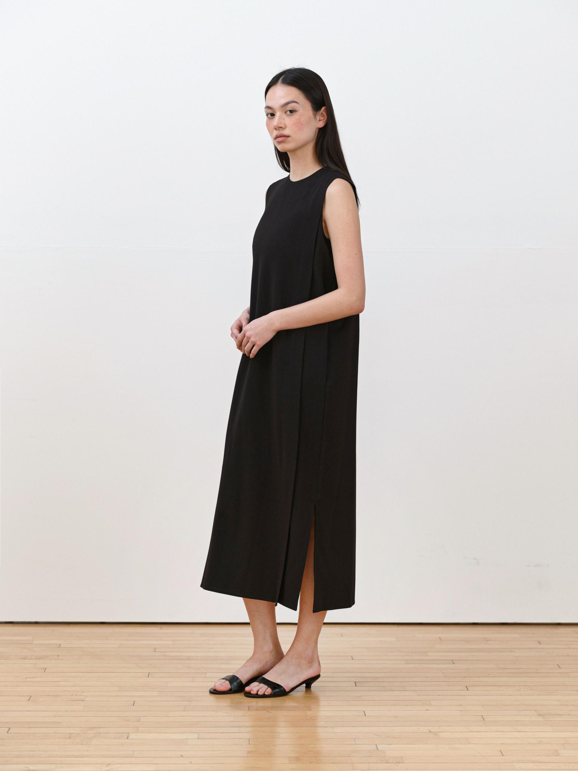 It includes pin-tuck accents along its straight-falling sides, creating a natural yet elegant silhouette.