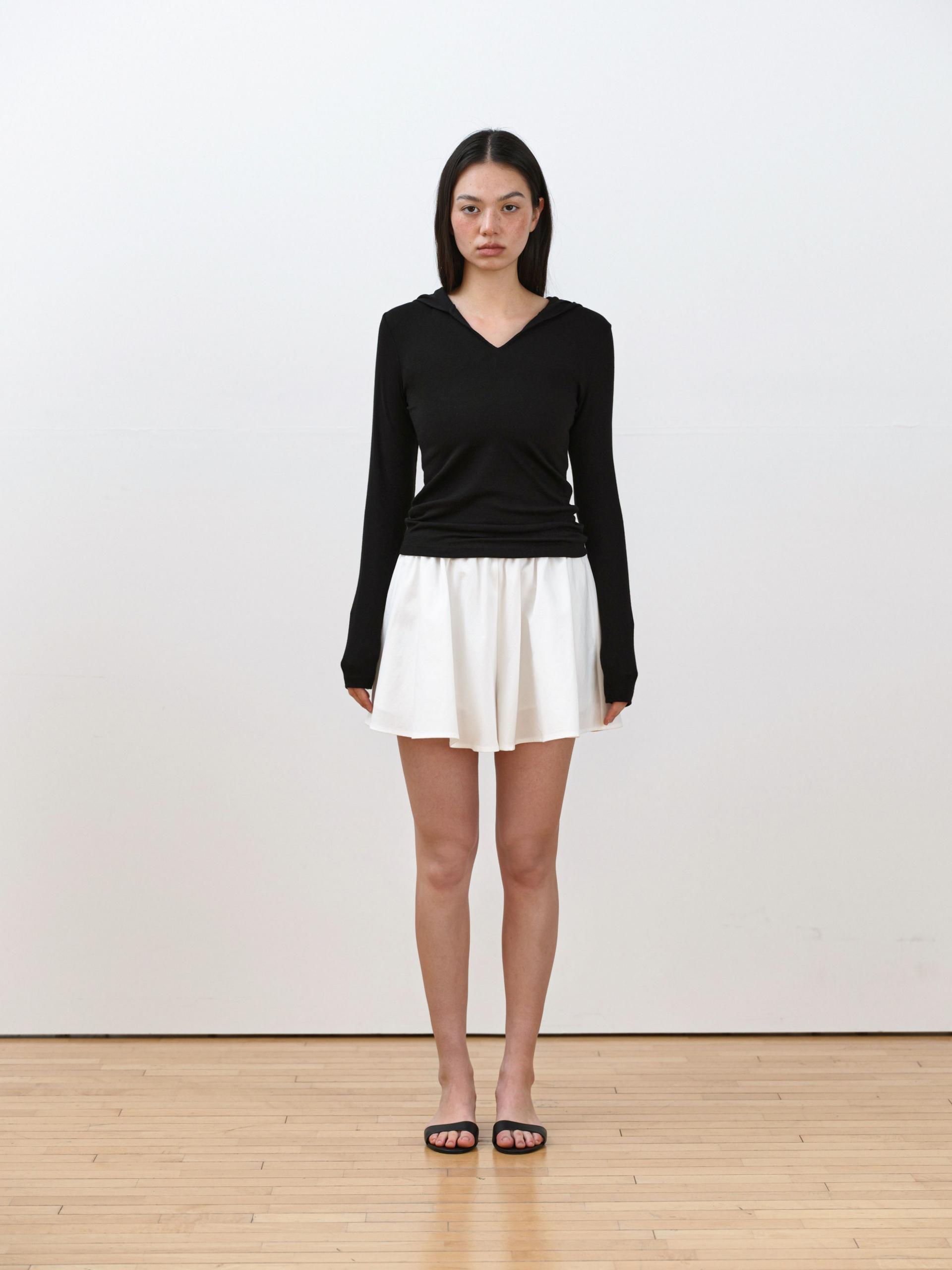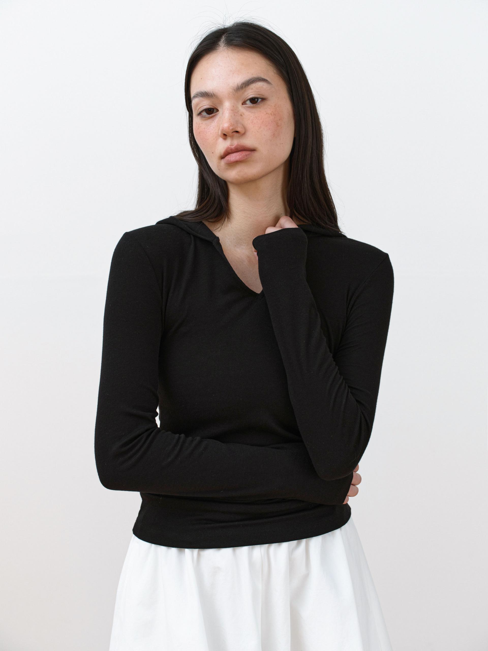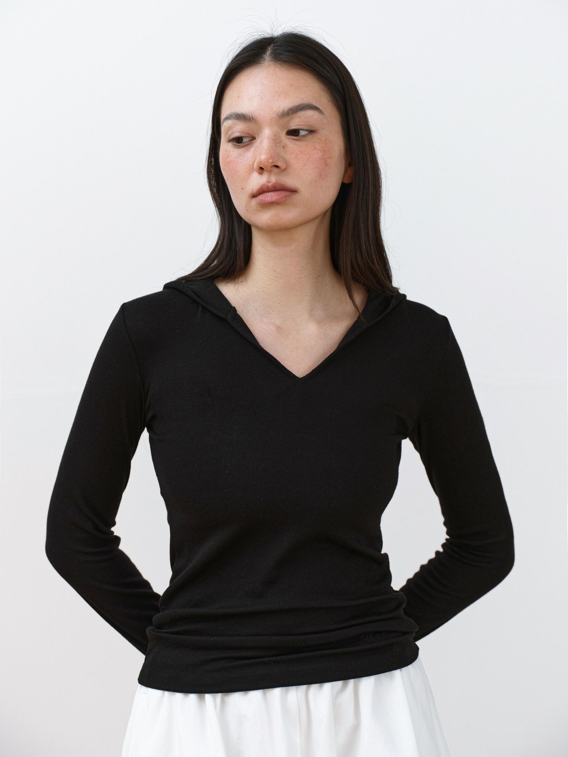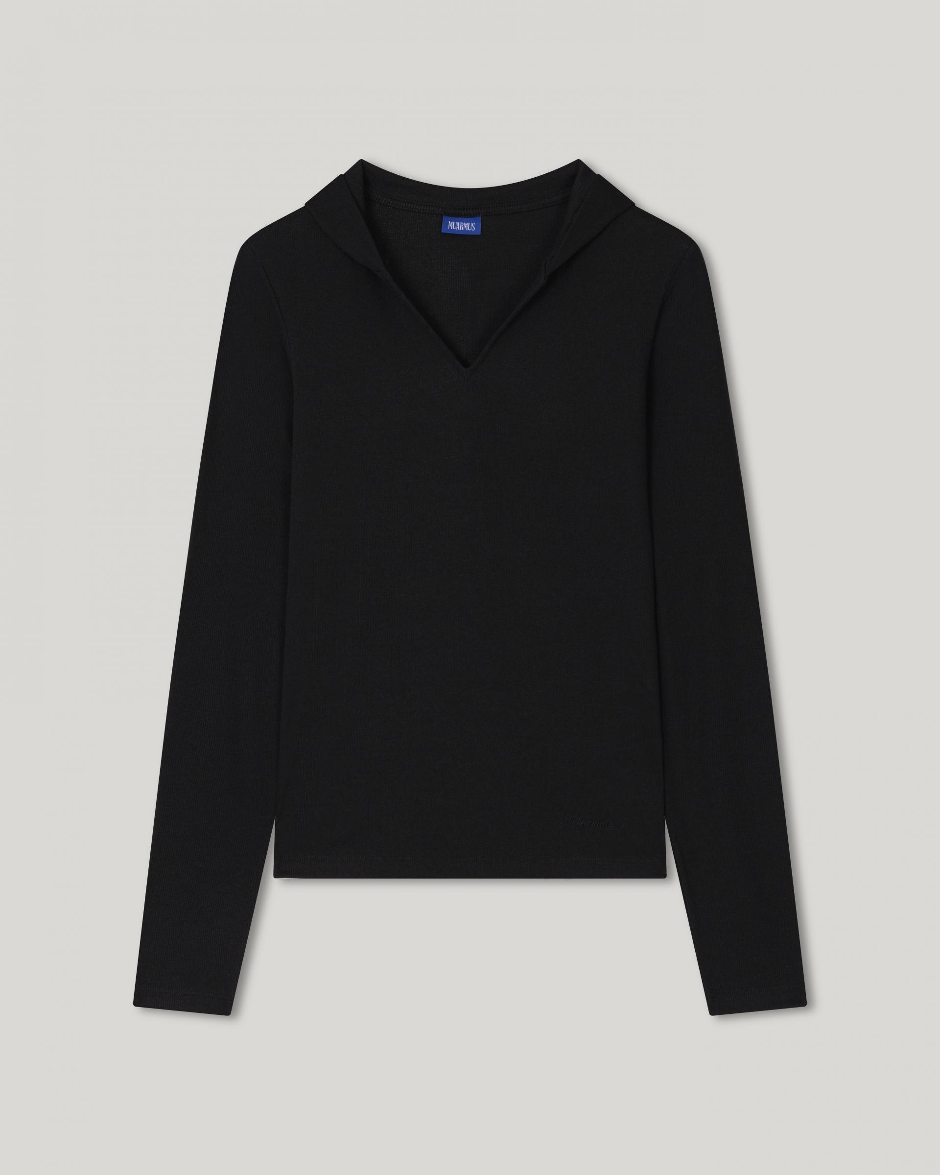This hoodie features a feminine V-neck design that creates a look that is both casual and refined.