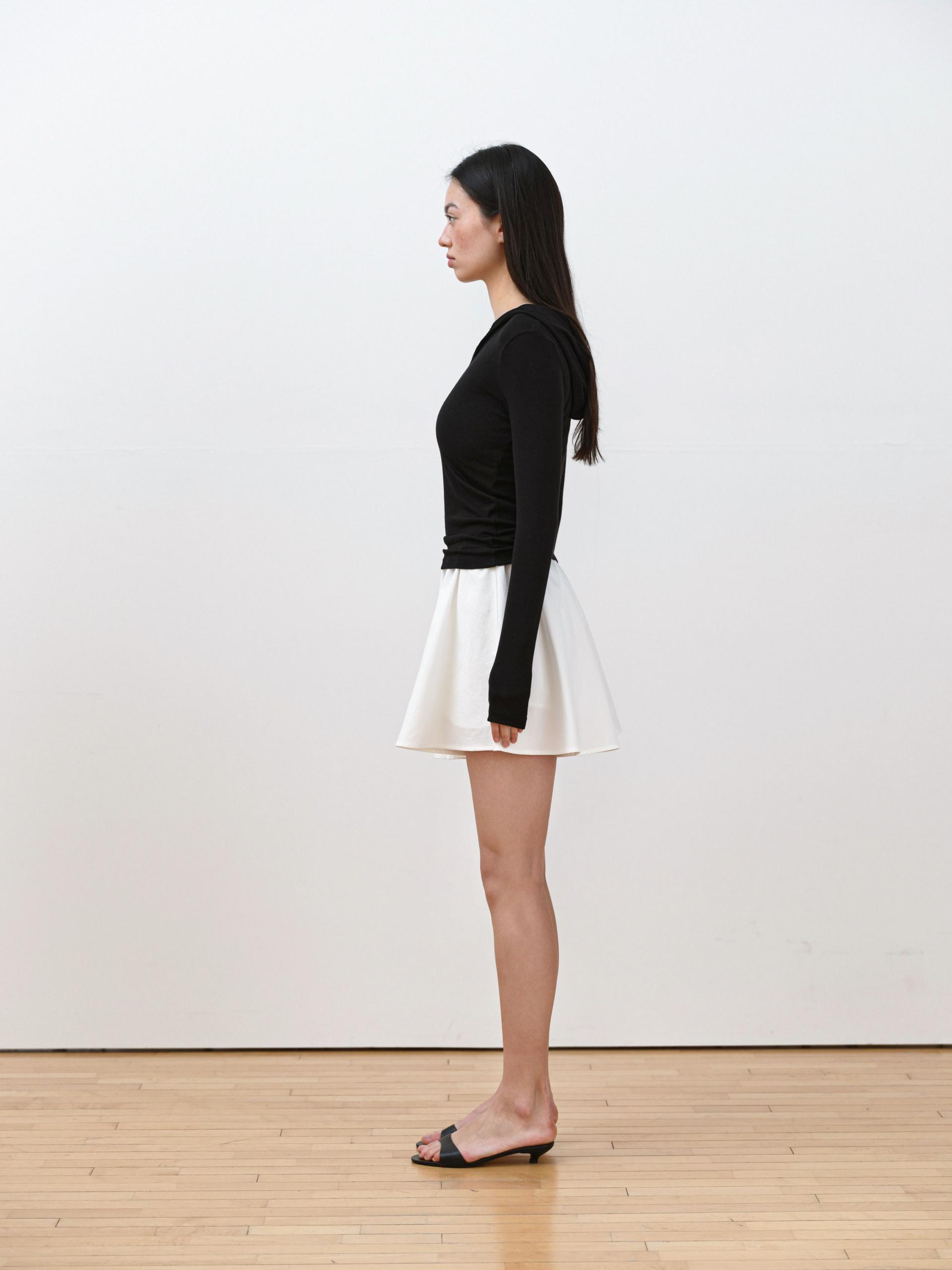 The slim fit gently follows the body line to enhance your silhouette without feeling restrictive, while the stretchy blended fabric ensures comfortable wear even during movement. Its firm, well-structured texture helps maintain its shape with minimal stretching, and the lightweight feel allows for easy, breathable comfort throughout the day.