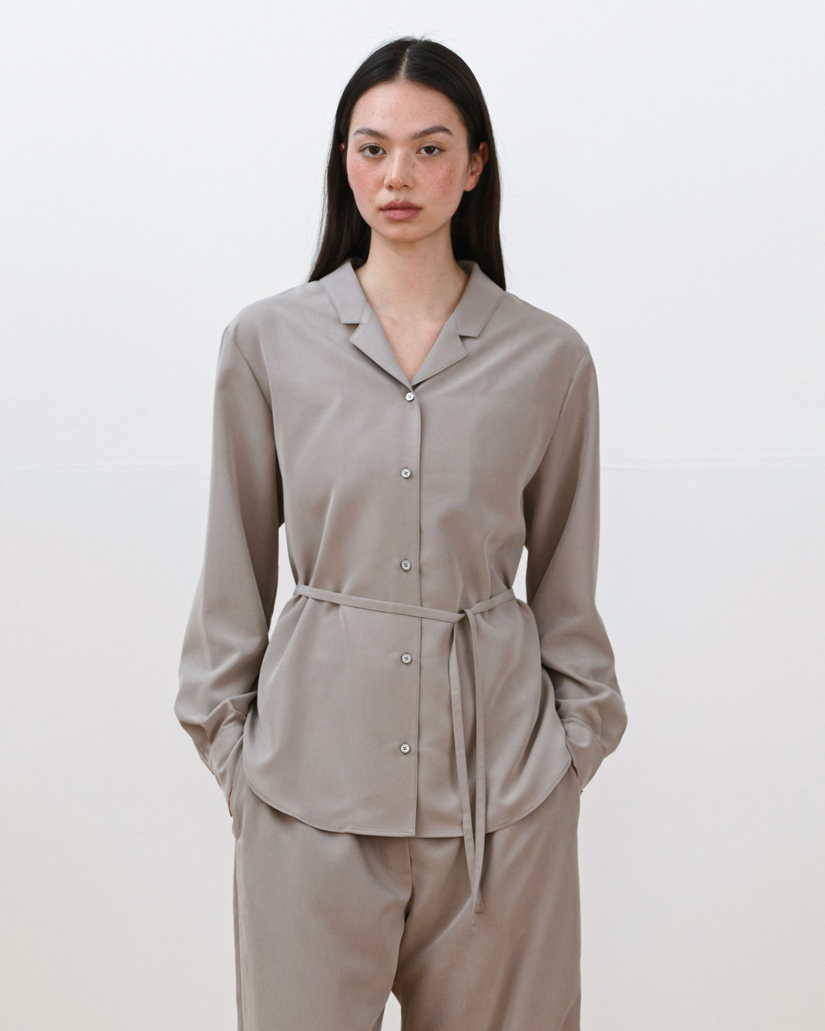 Dinah Belted Blouse [Ash Beige]