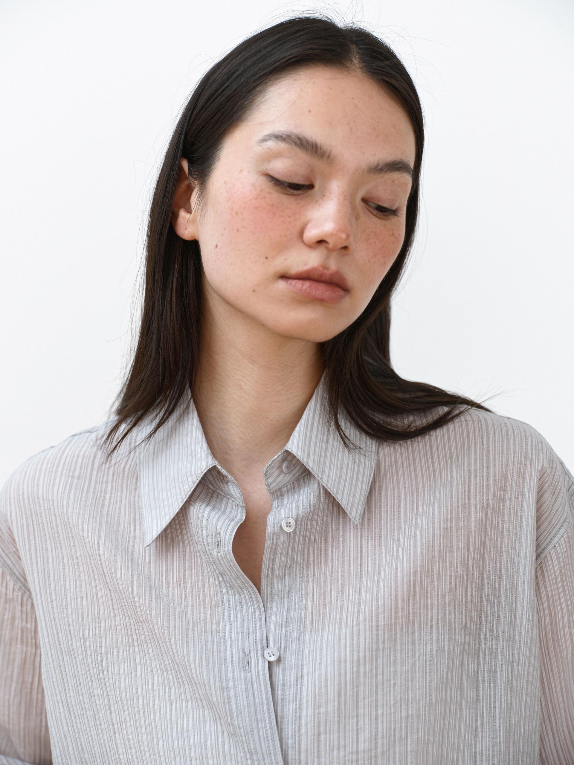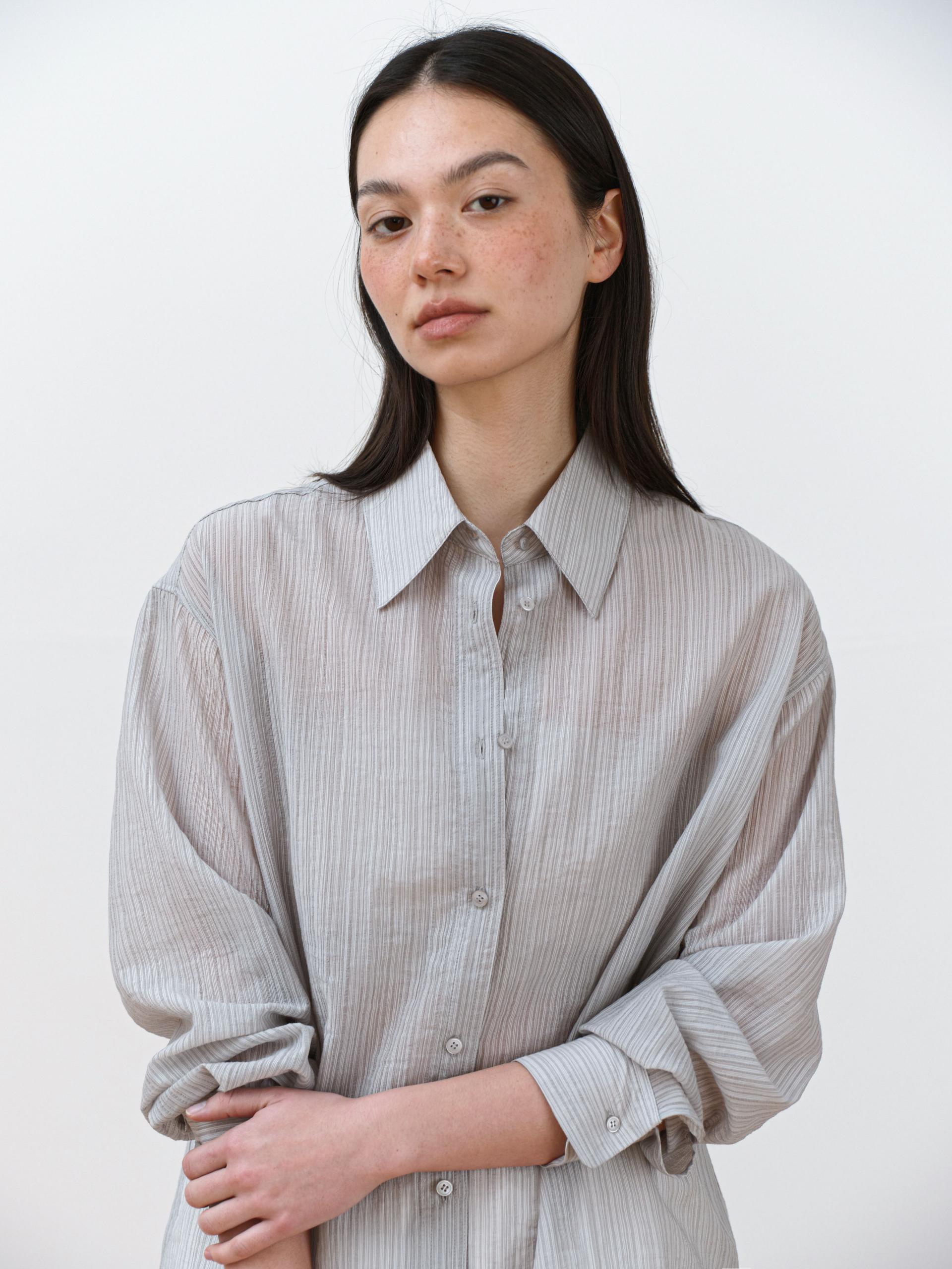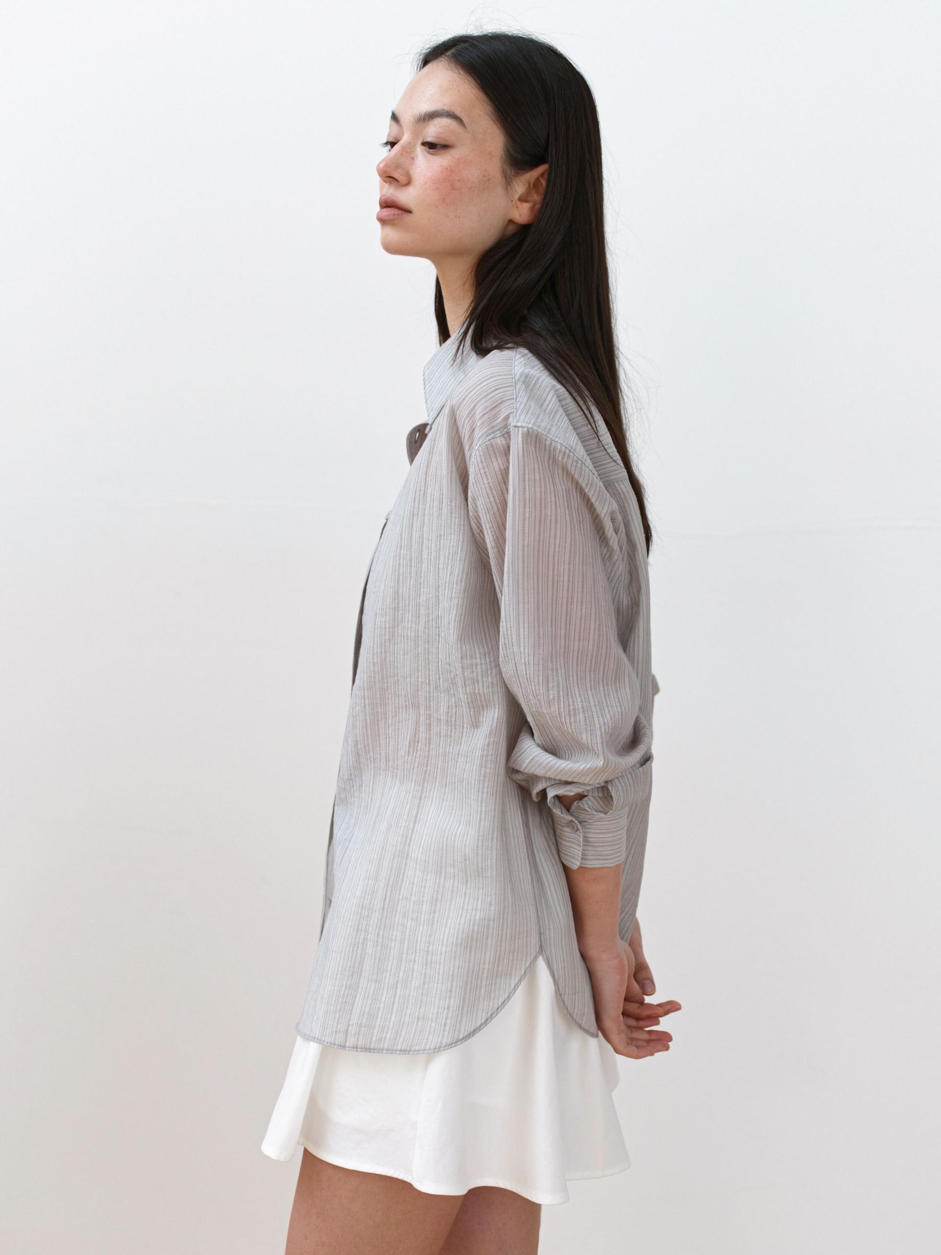 A refined shirt featuring a naturally sheer texture combined with a subtle striped pattern.