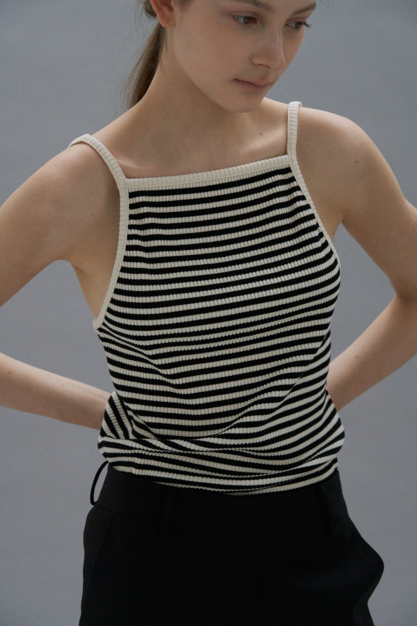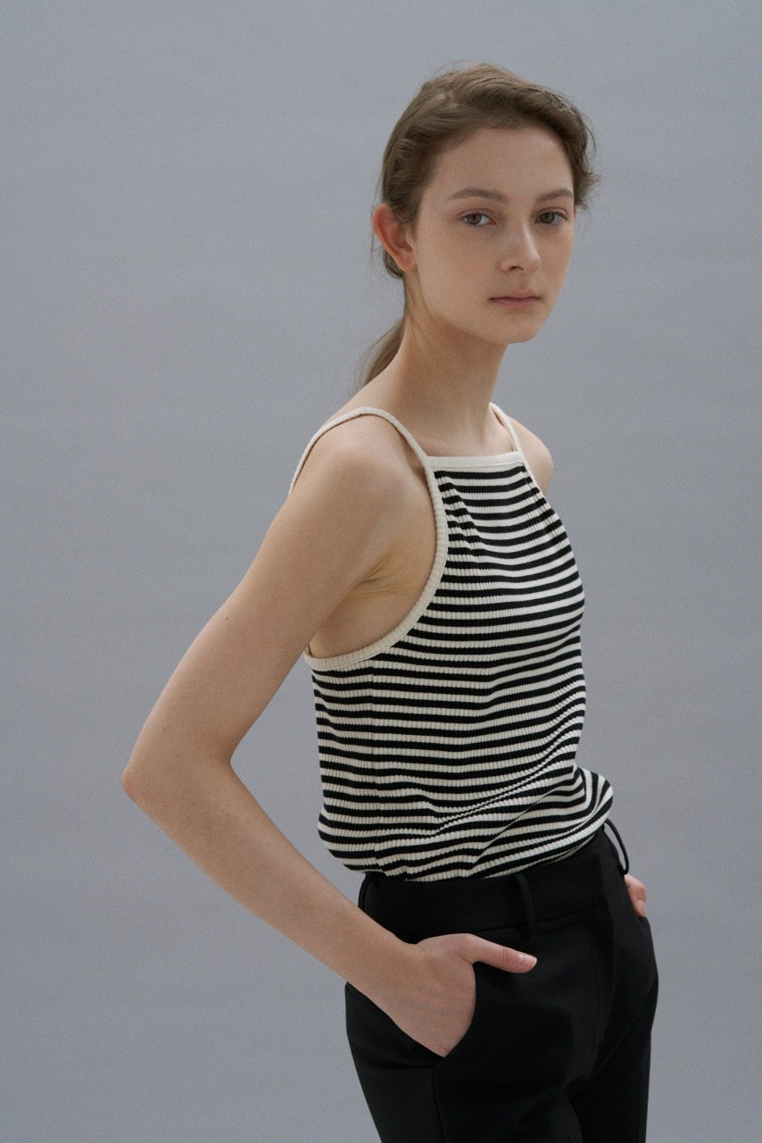 클래식한 디자인의 스트라이프 슬리브리스입니다