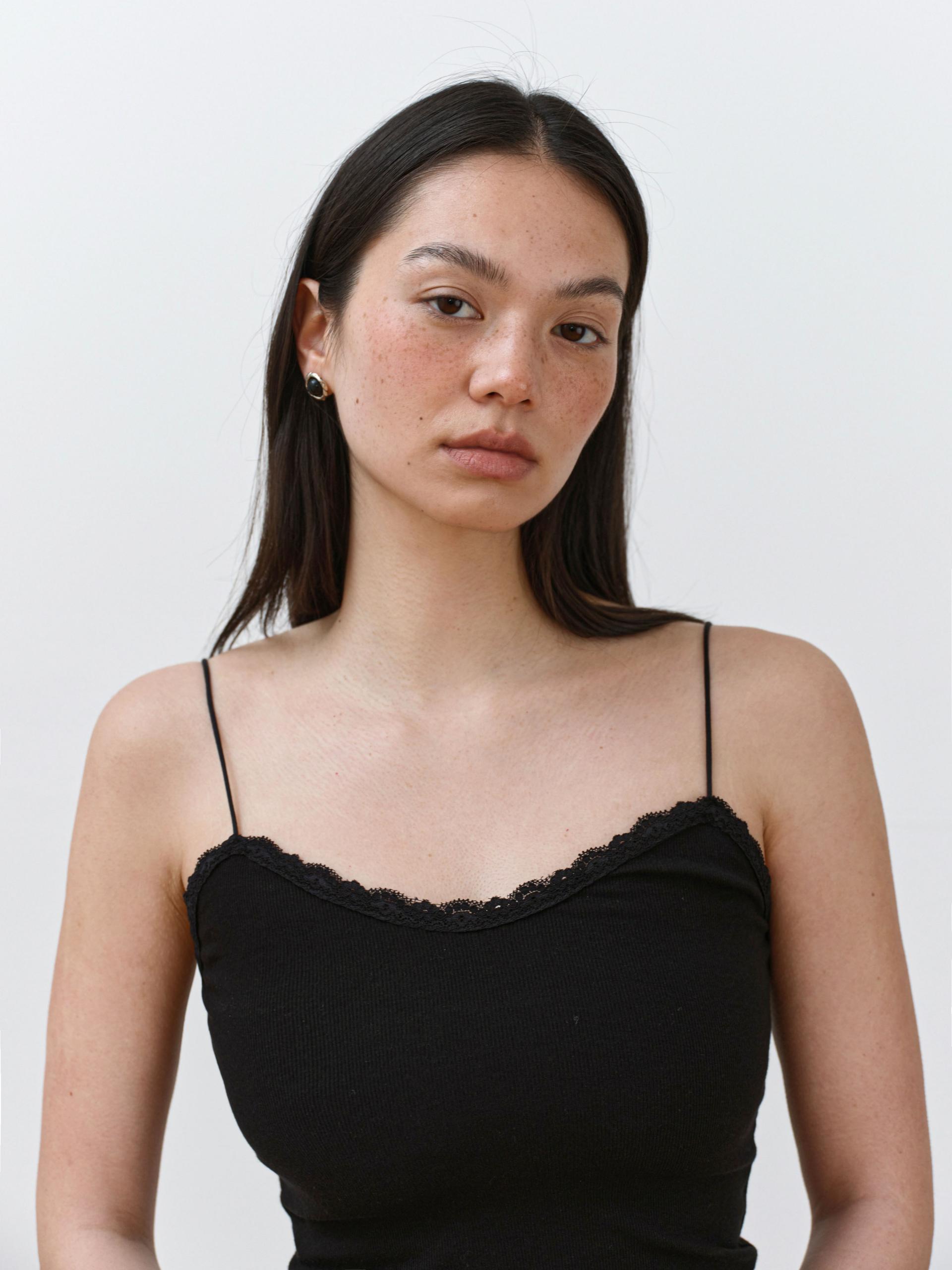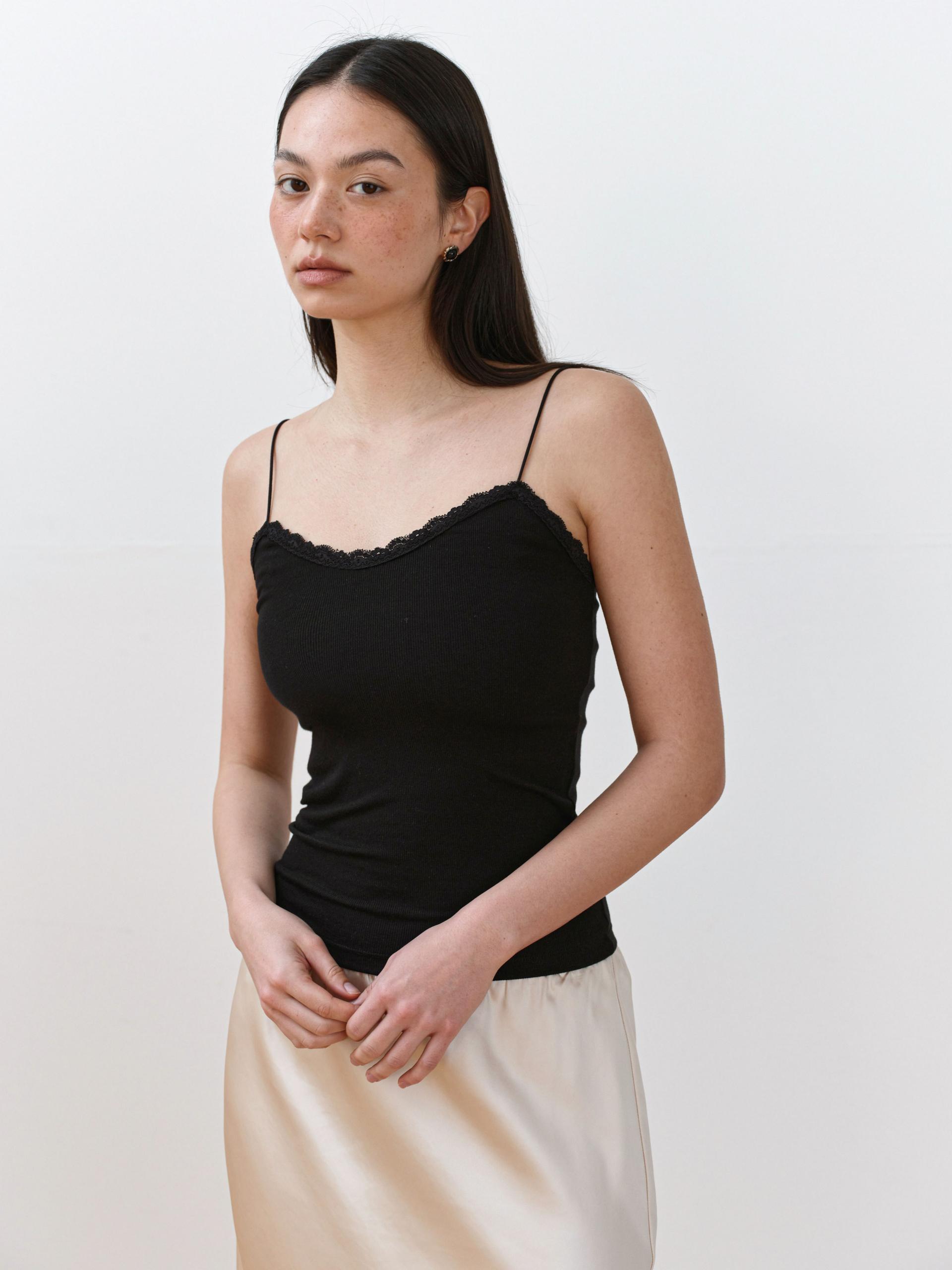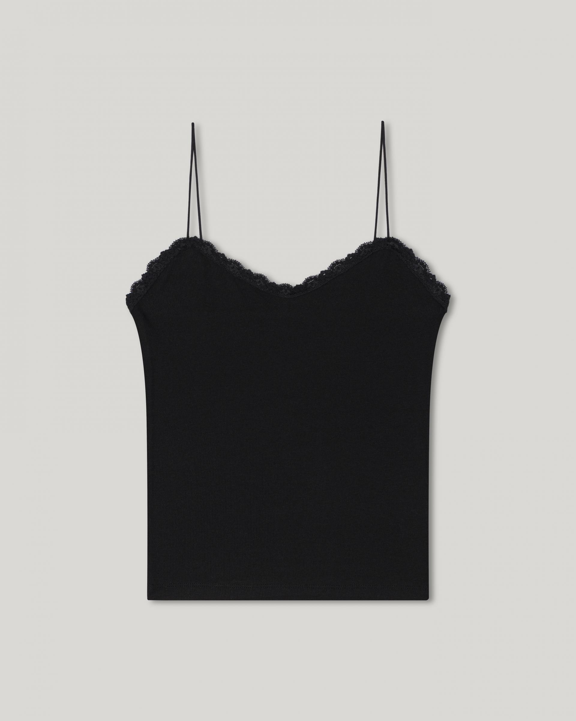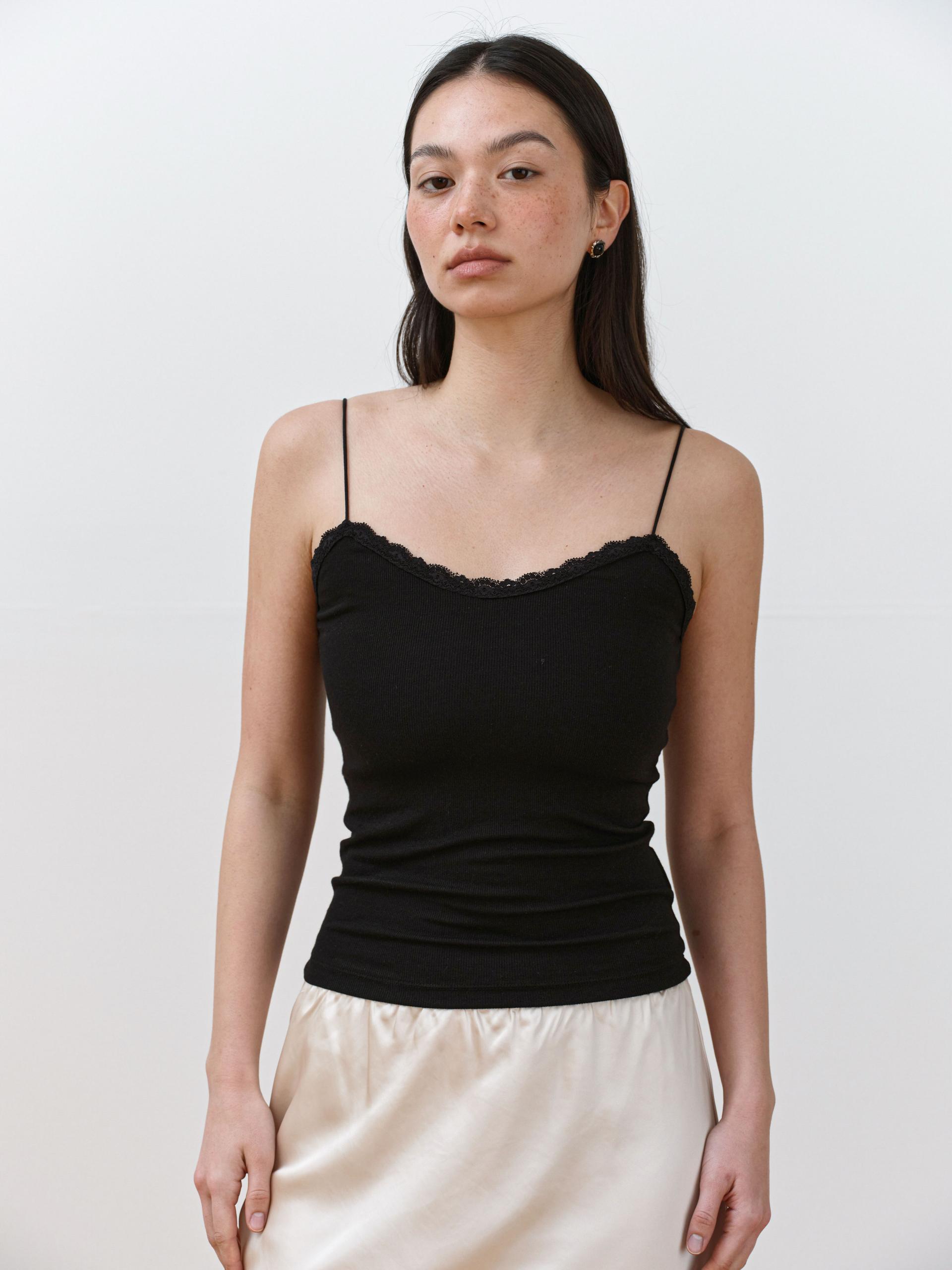 A lightweight and soft sleeveless top featuring delicate lace detailing on the front