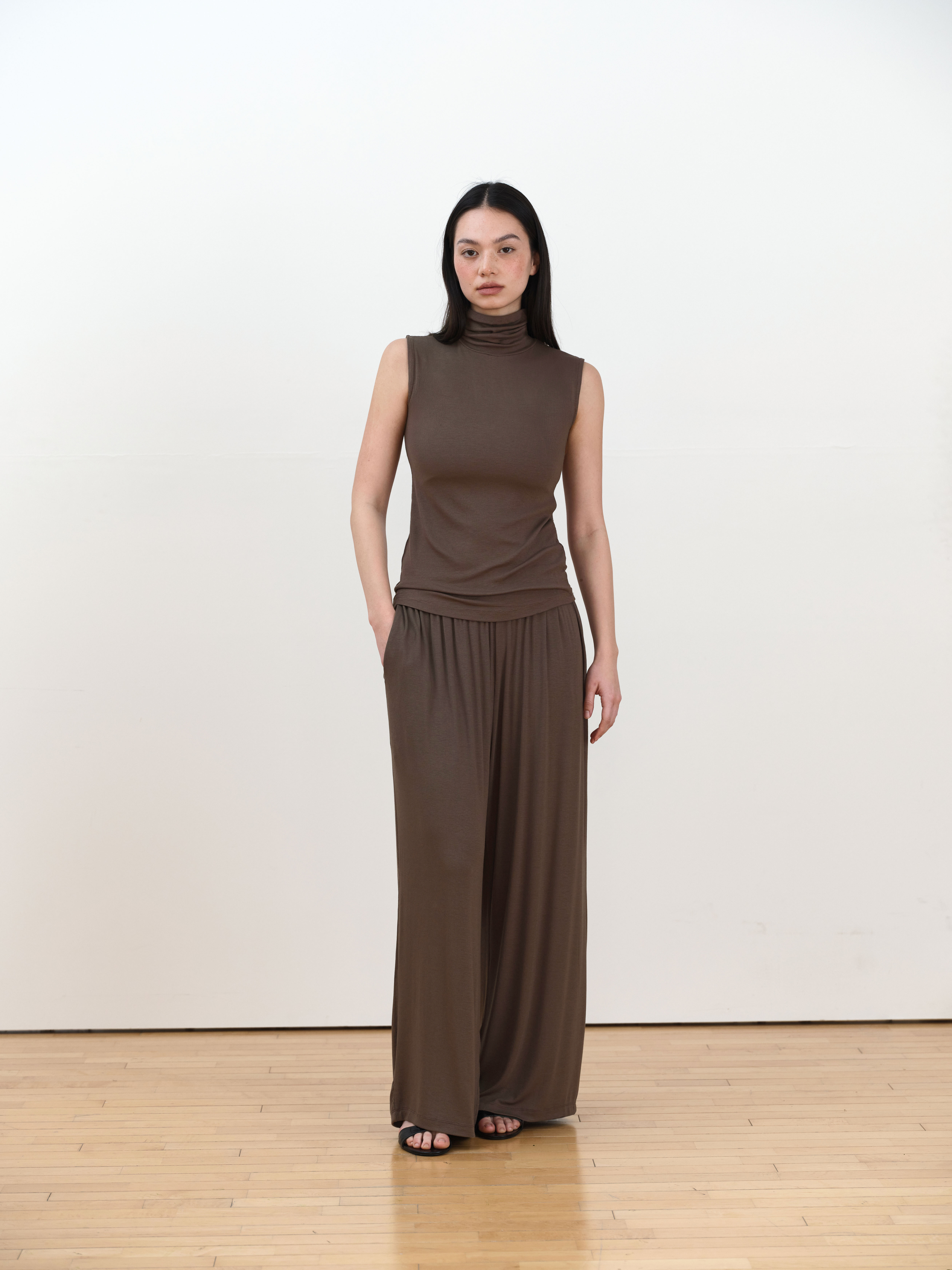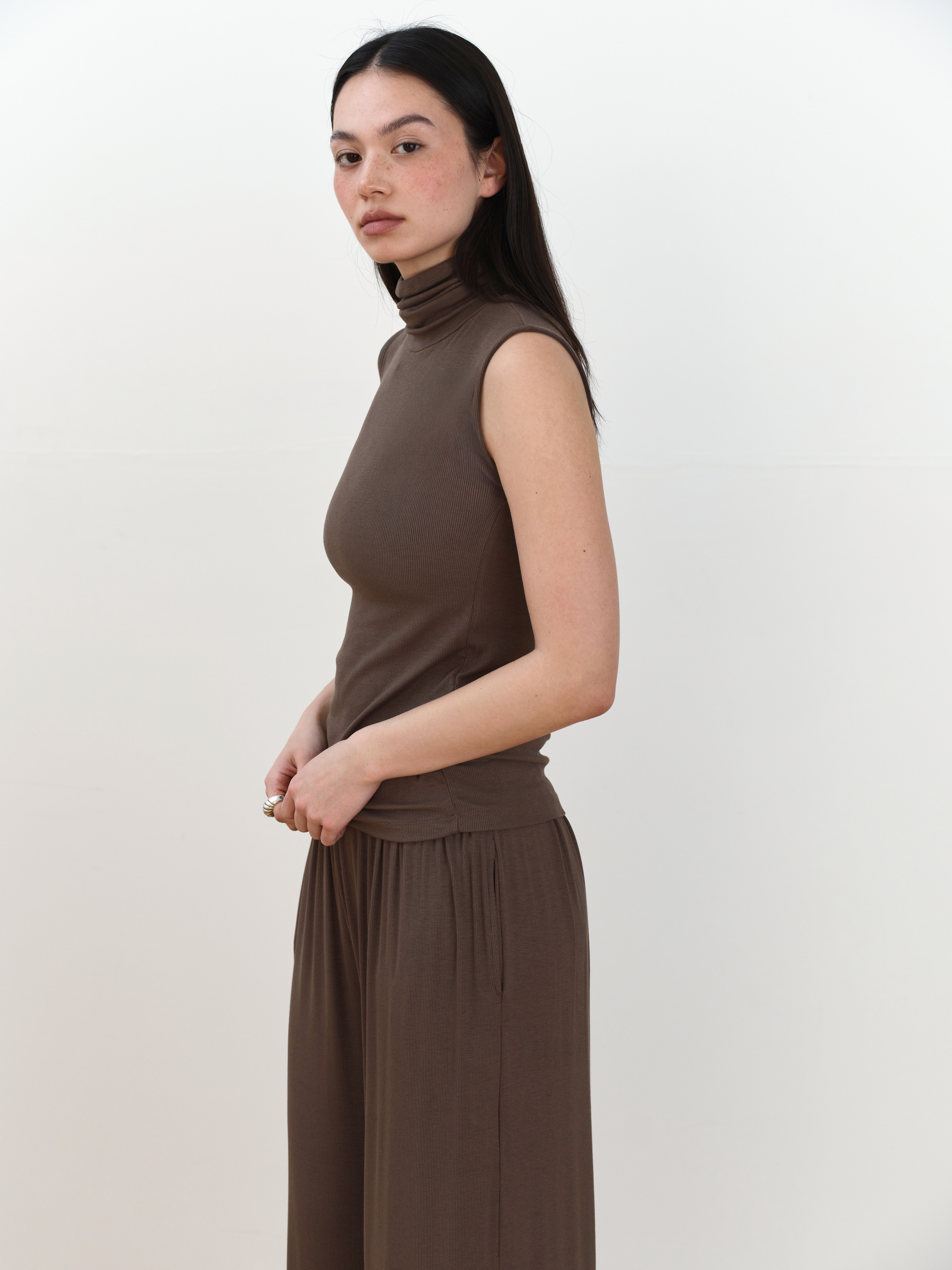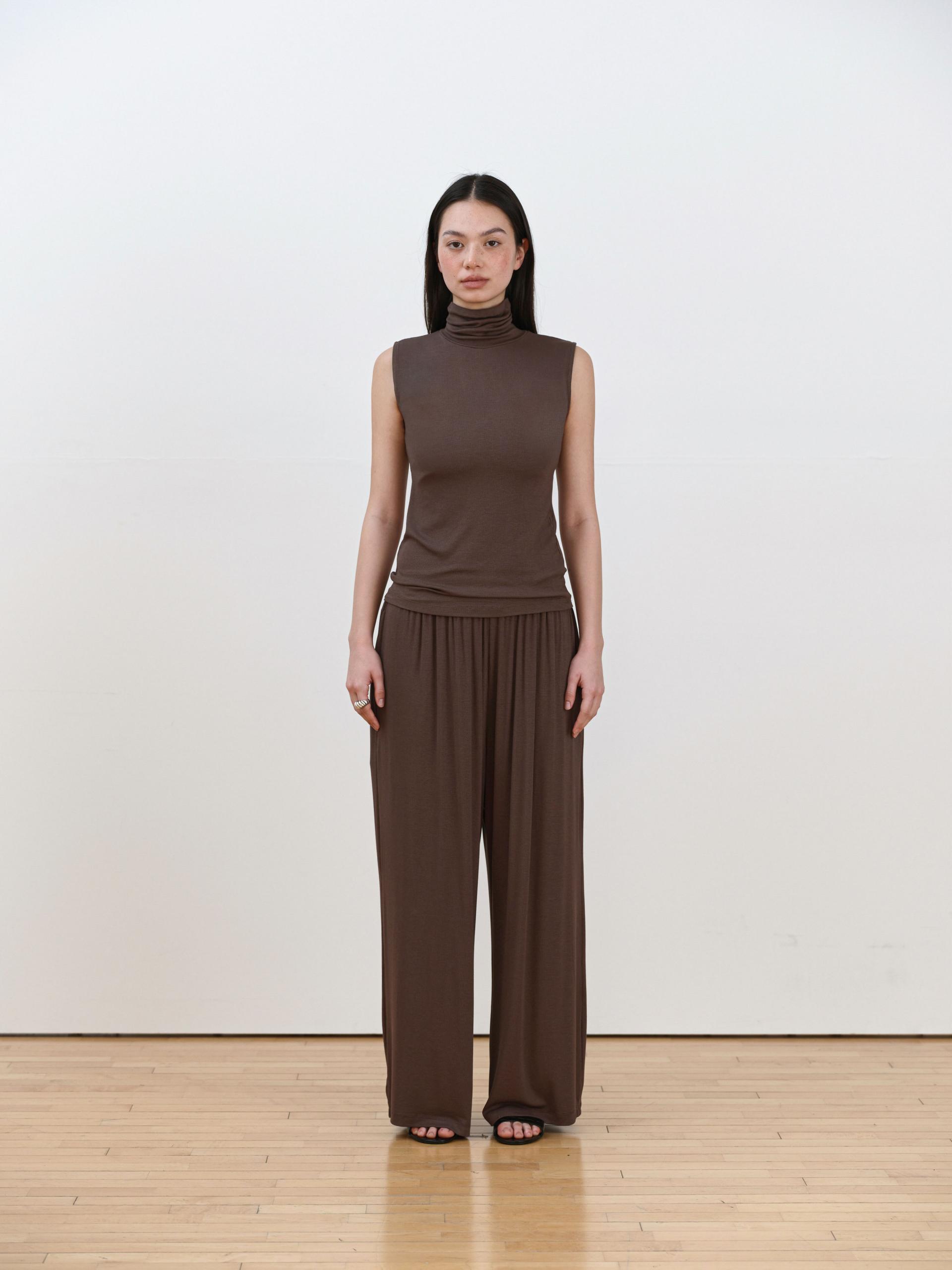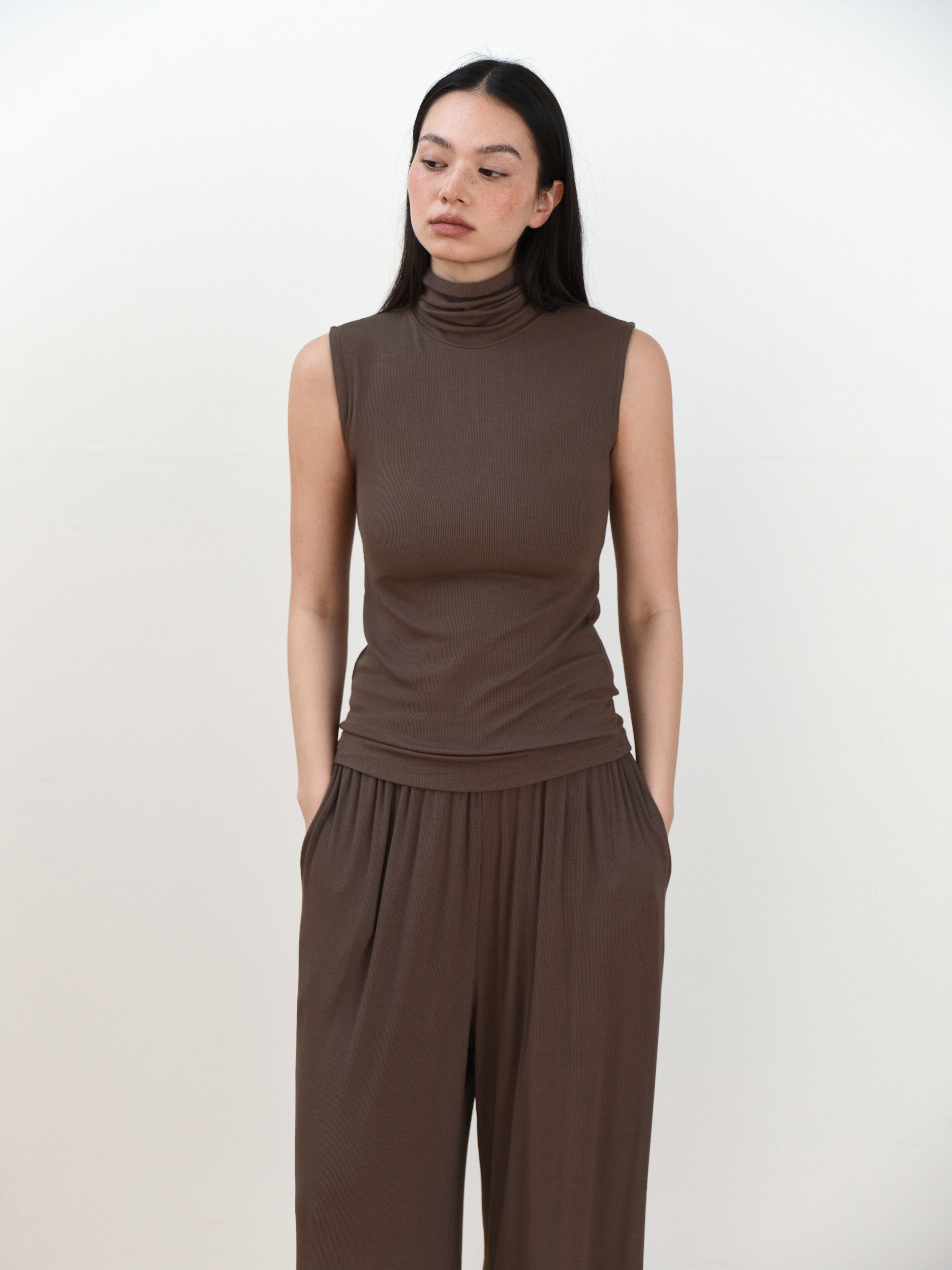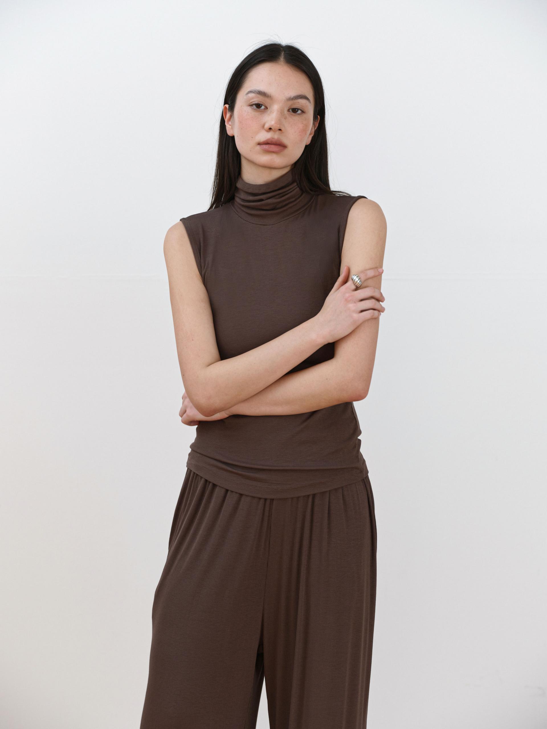 Lea Roll-neck Sleeveless [Brown]