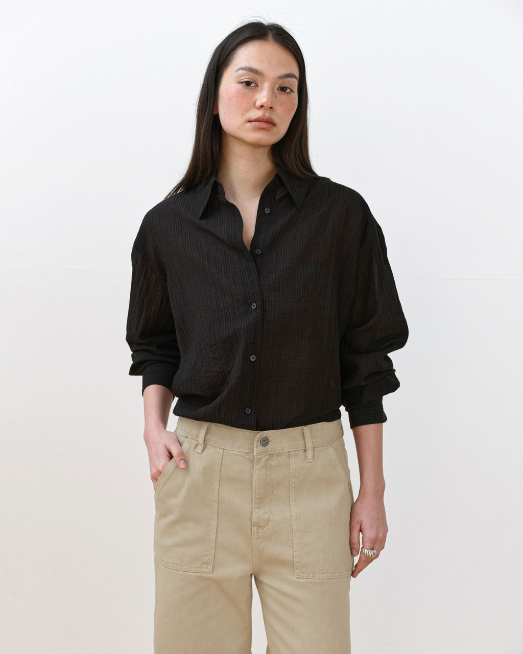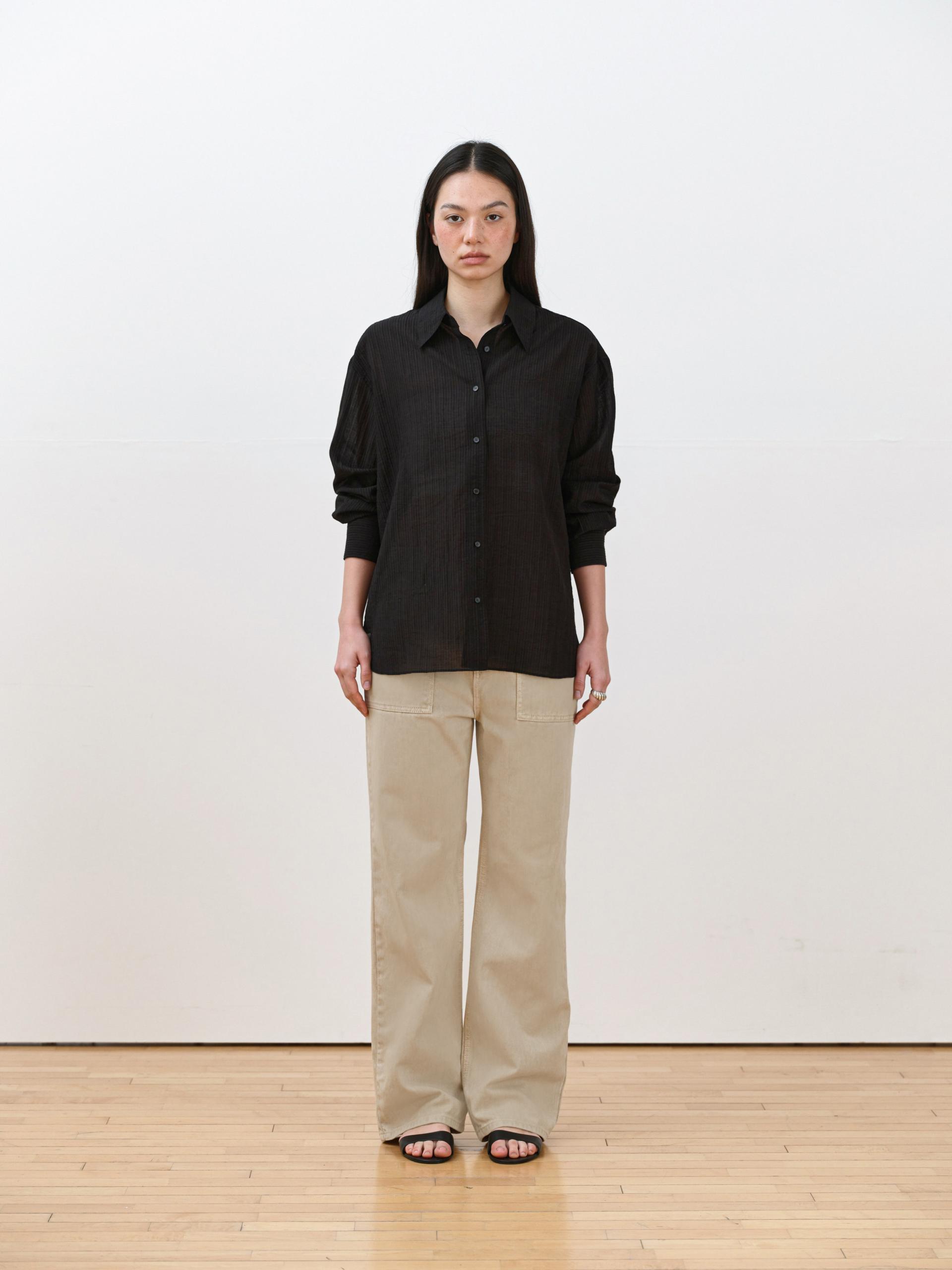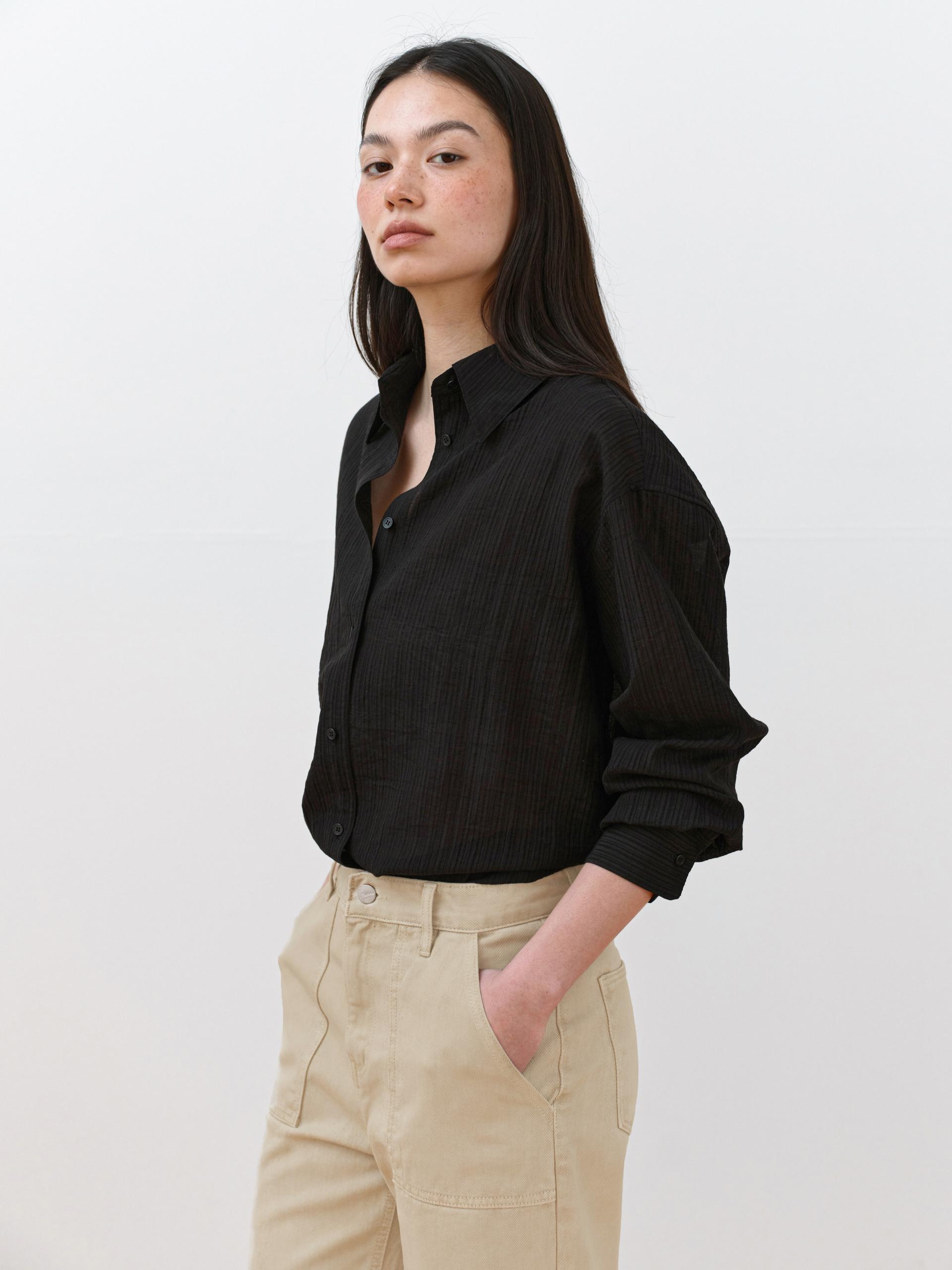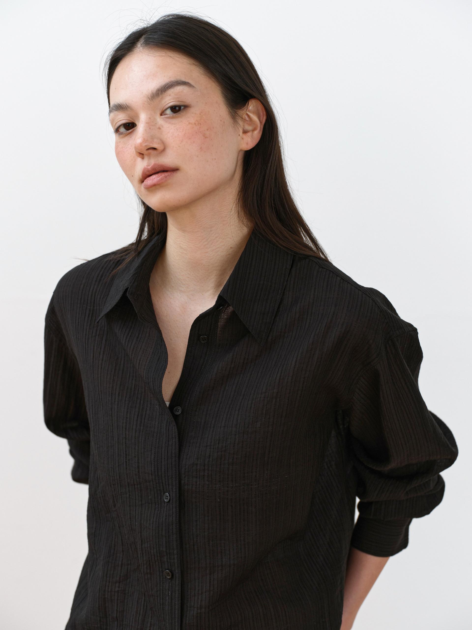 A refined shirt featuring a naturally sheer texture combined with a subtle striped pattern.
