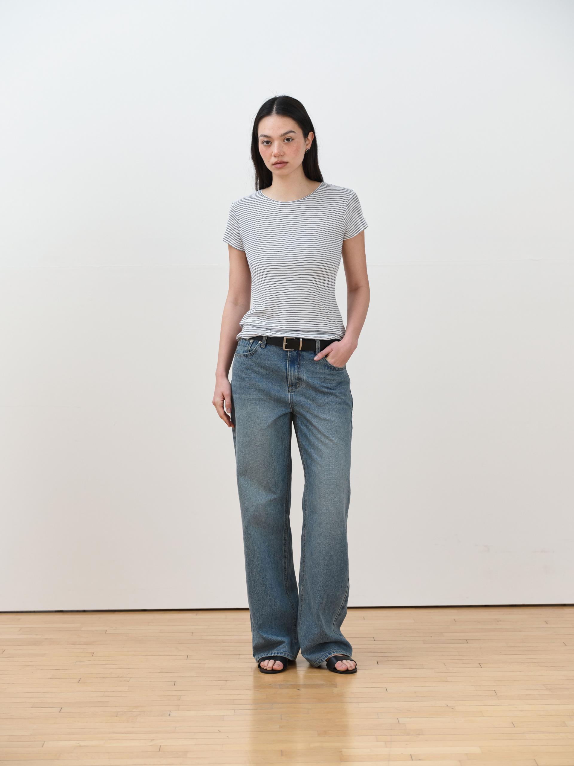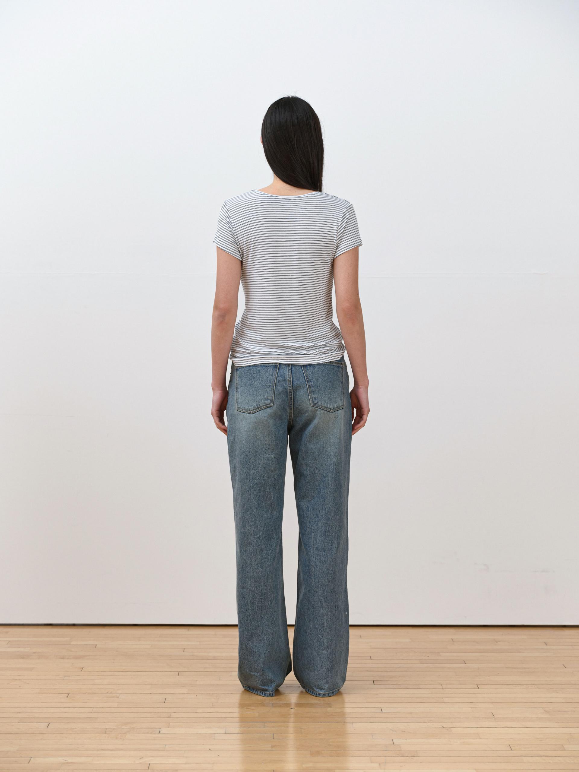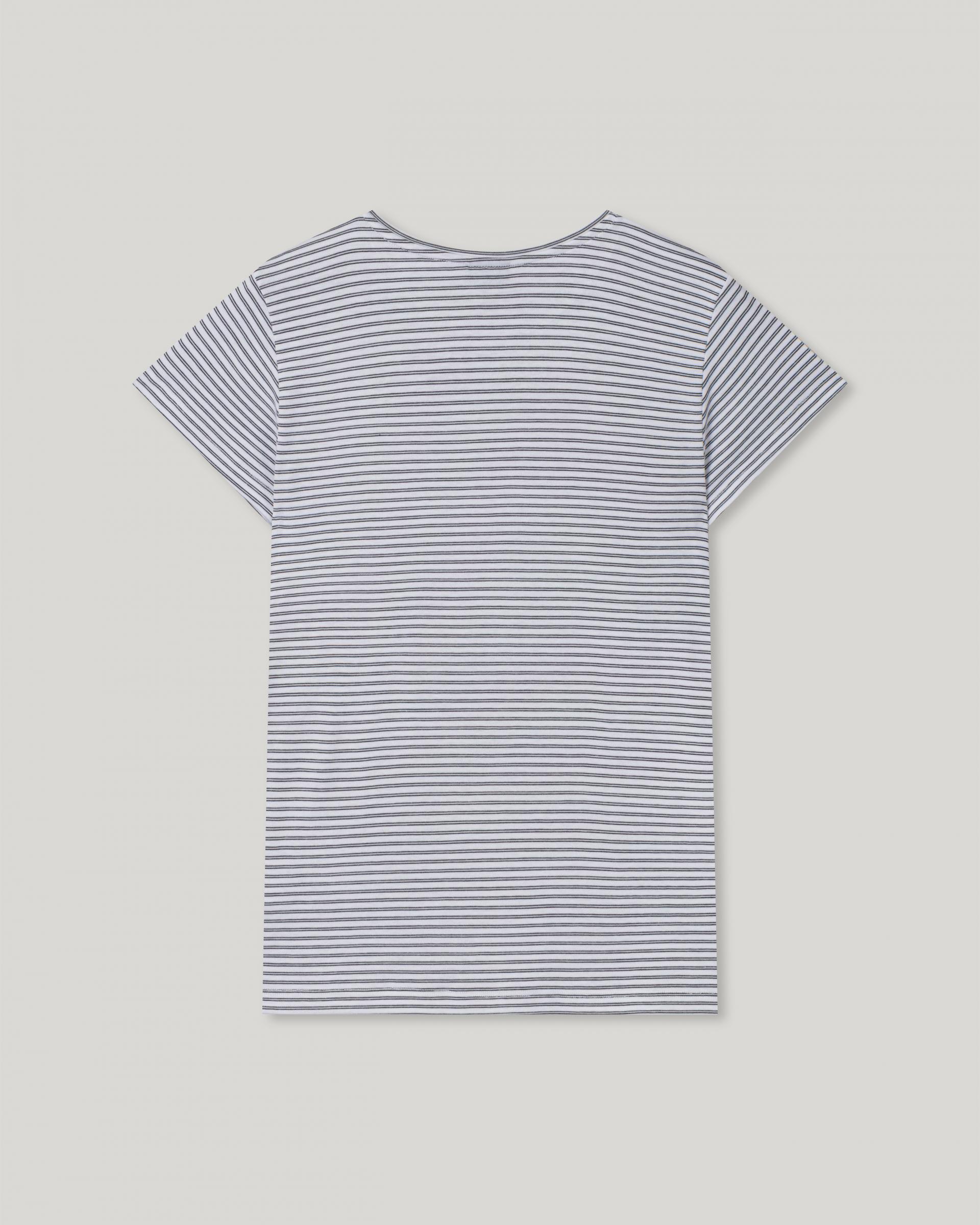 A slim-fit striped T-shirt crafted from a softly flowing rayon-blend fabric.