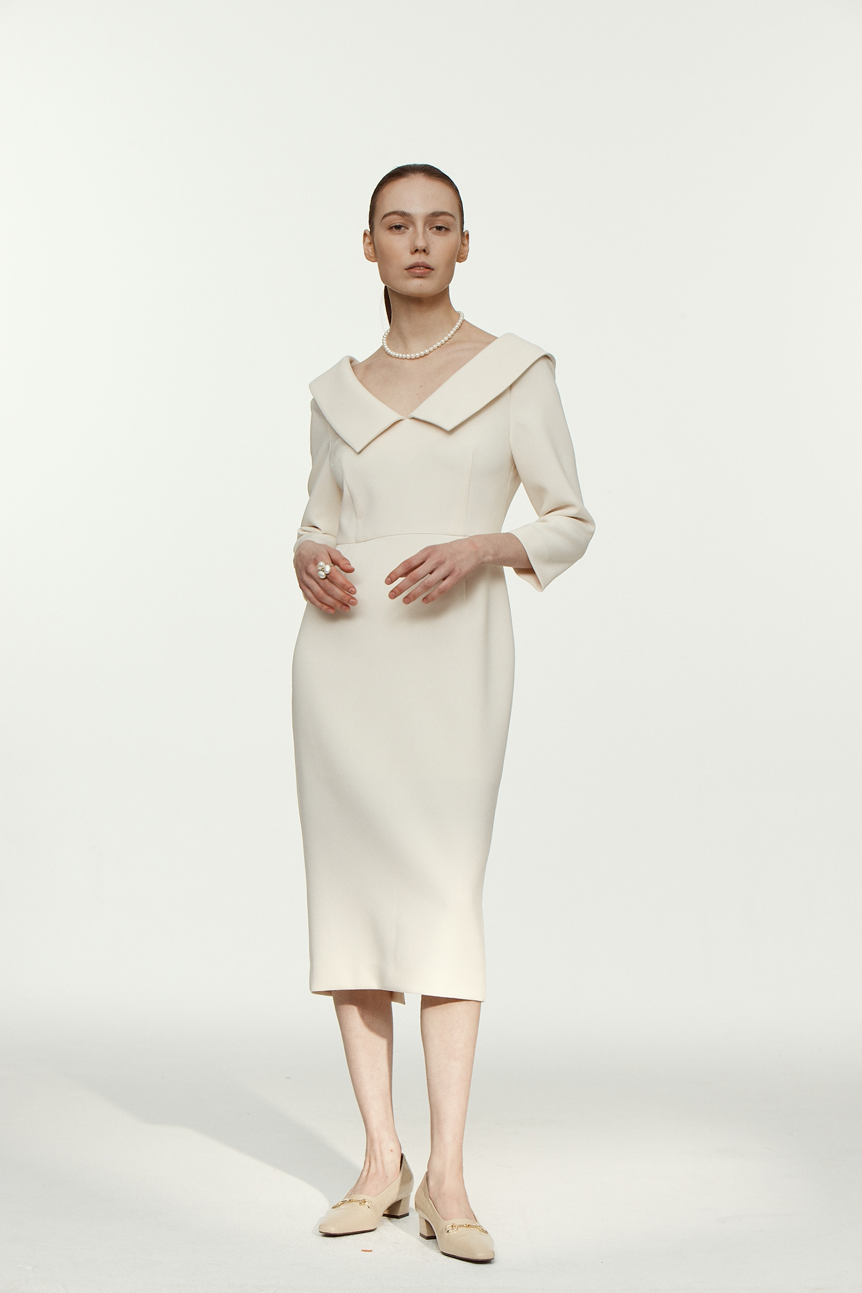 클래식하고 우아한 선이 돋보이는 드레스 입니다.