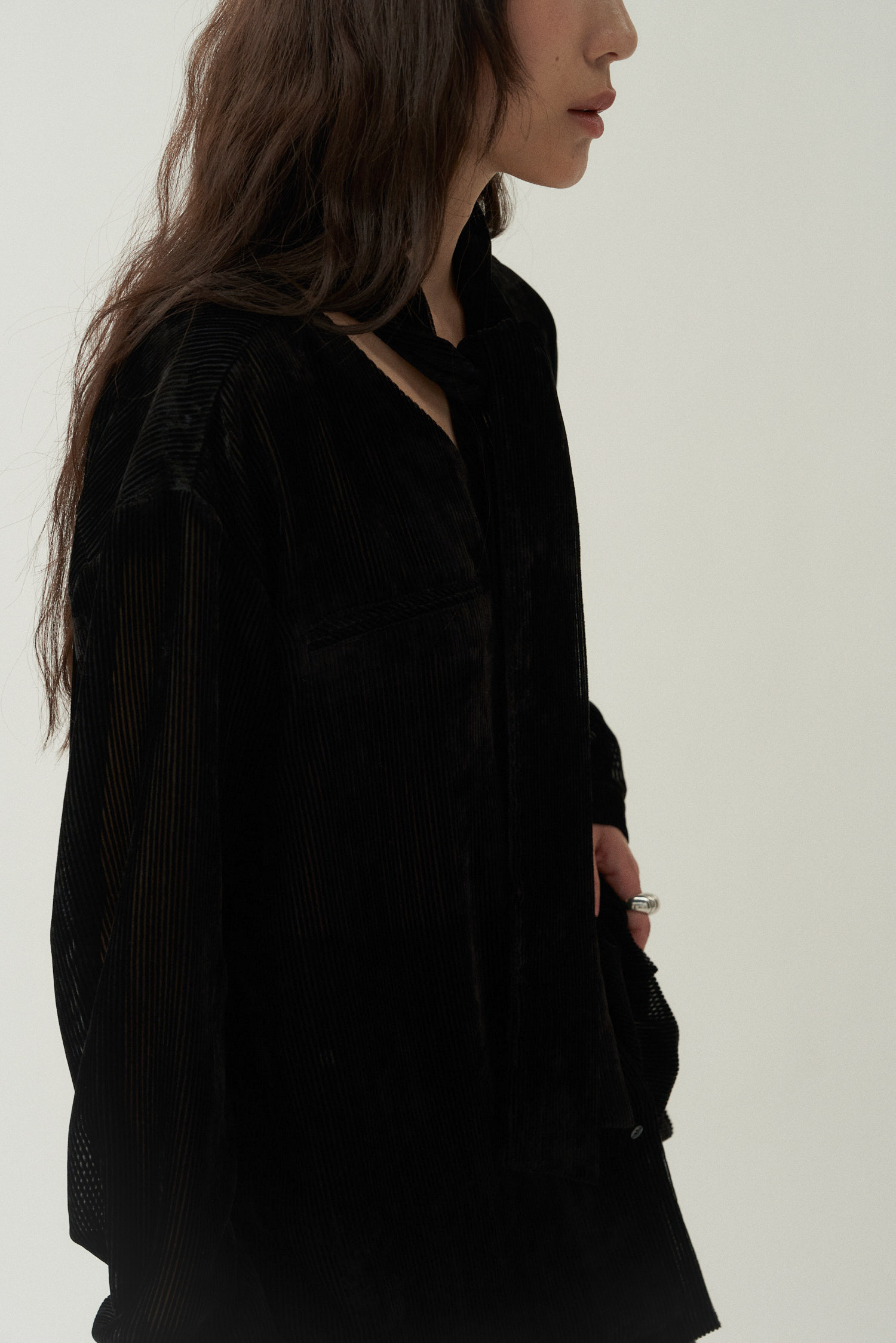가슴 부분 양 사이드 슬림 포켓과 등판 요크 절개와 맞주름의 디테일로 편안하게 착용이 가능합니다.