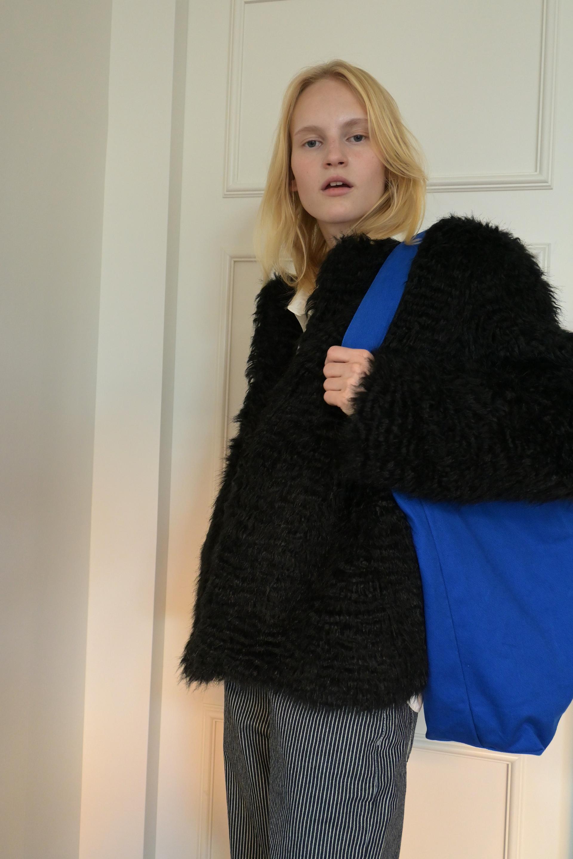 Due to the characteristics of wool yarn, there may be foreign threads, stretching, shedding, pilling, and variations in yarn thickness. The fabric may pill due to friction, so please handle with care when wearing. If the product becomes creased, avoid steaming and instead gently iron at a low temperature with a light cloth placed over it, paying special attention to the surface. Outerwear such as jackets and coats should be dry cleaned.
