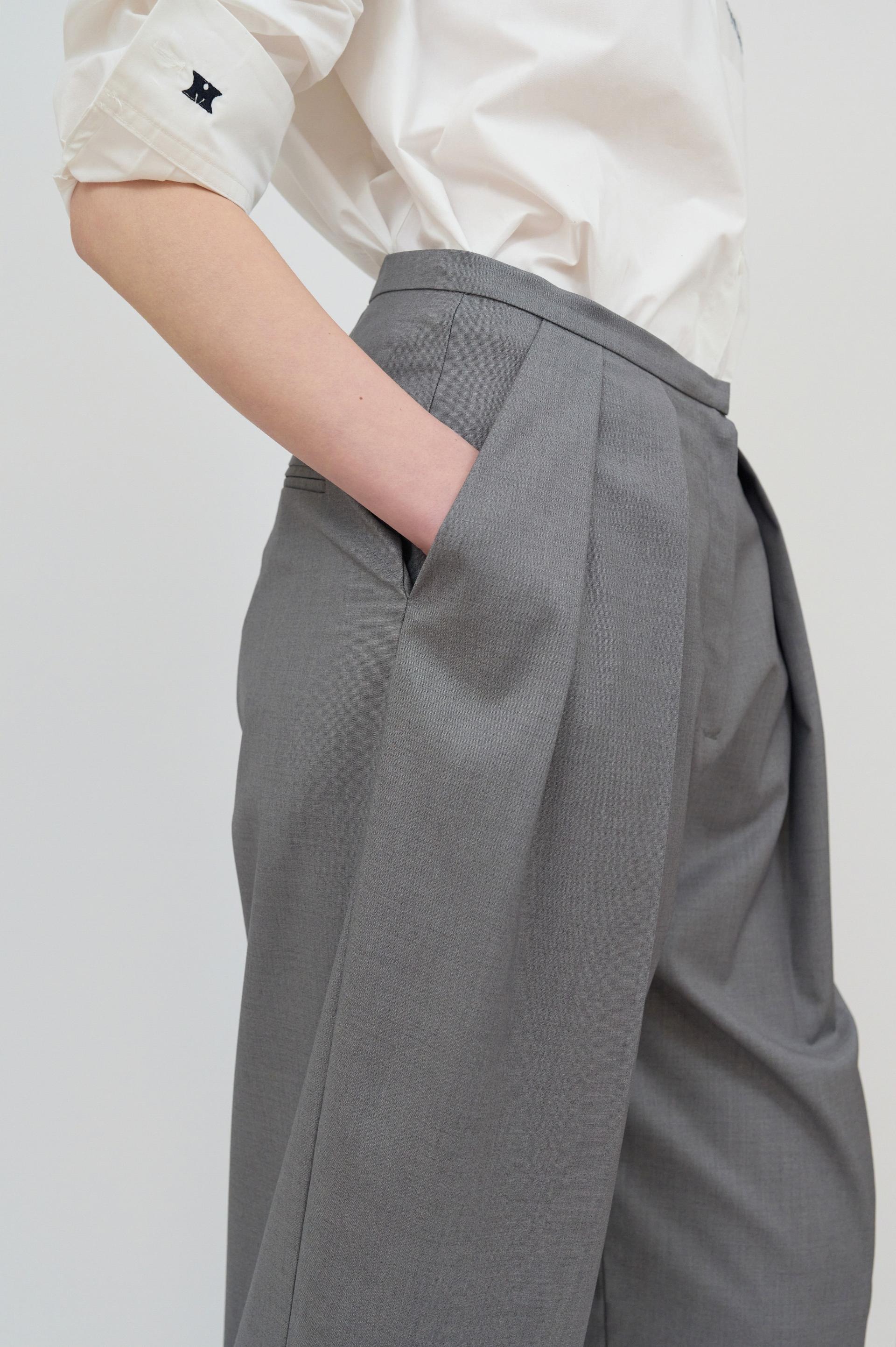 Due to the characteristics of wool yarn, there may be foreign threads, stretching, shedding, pilling, and variations in yarn thickness. The fabric may pill due to friction, so please handle with care when wearing. If the product becomes creased, avoid steaming and instead gently iron at a low temperature with a light cloth placed over it, paying special attention to the surface. Outerwear such as jackets and coats should be dry cleaned.