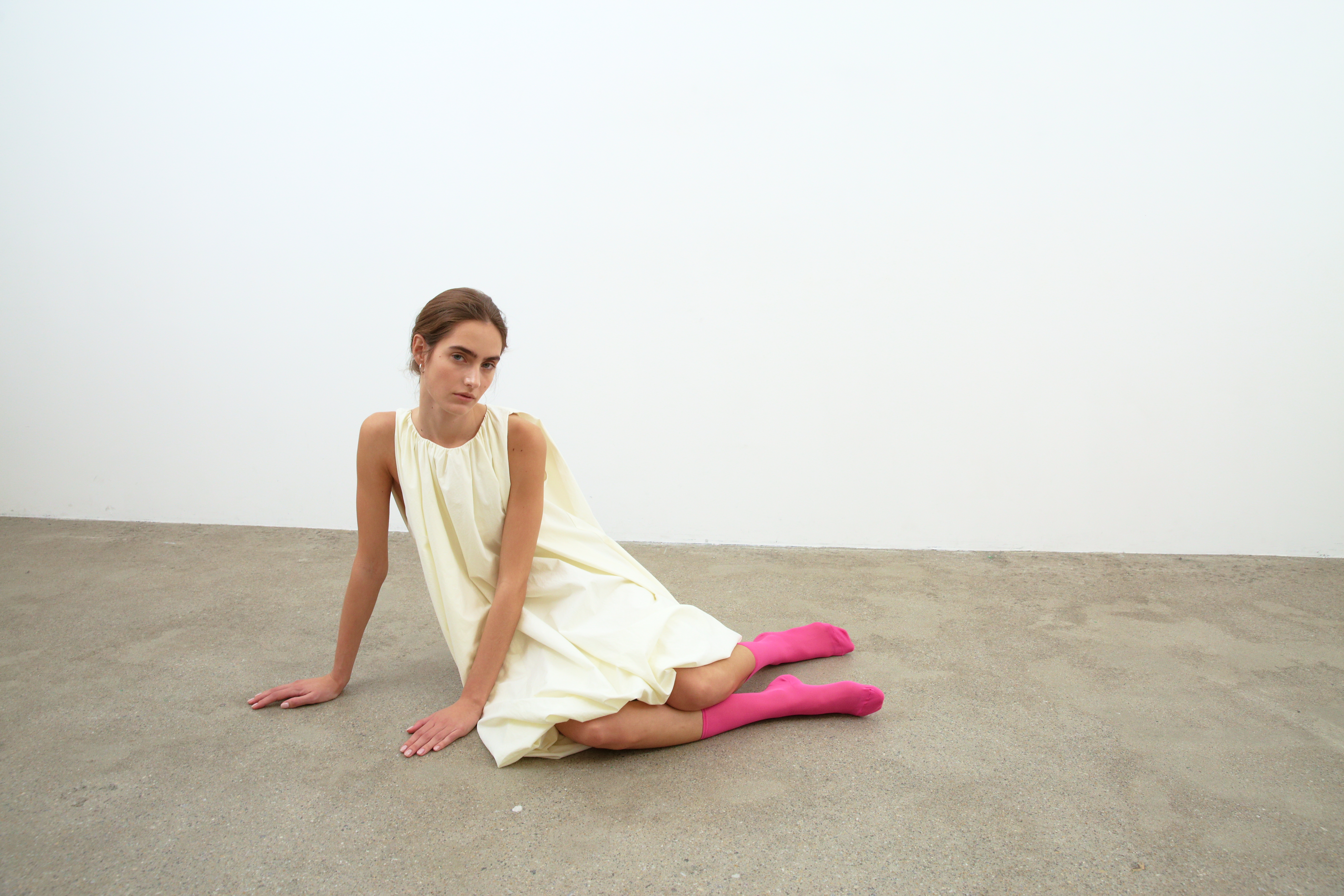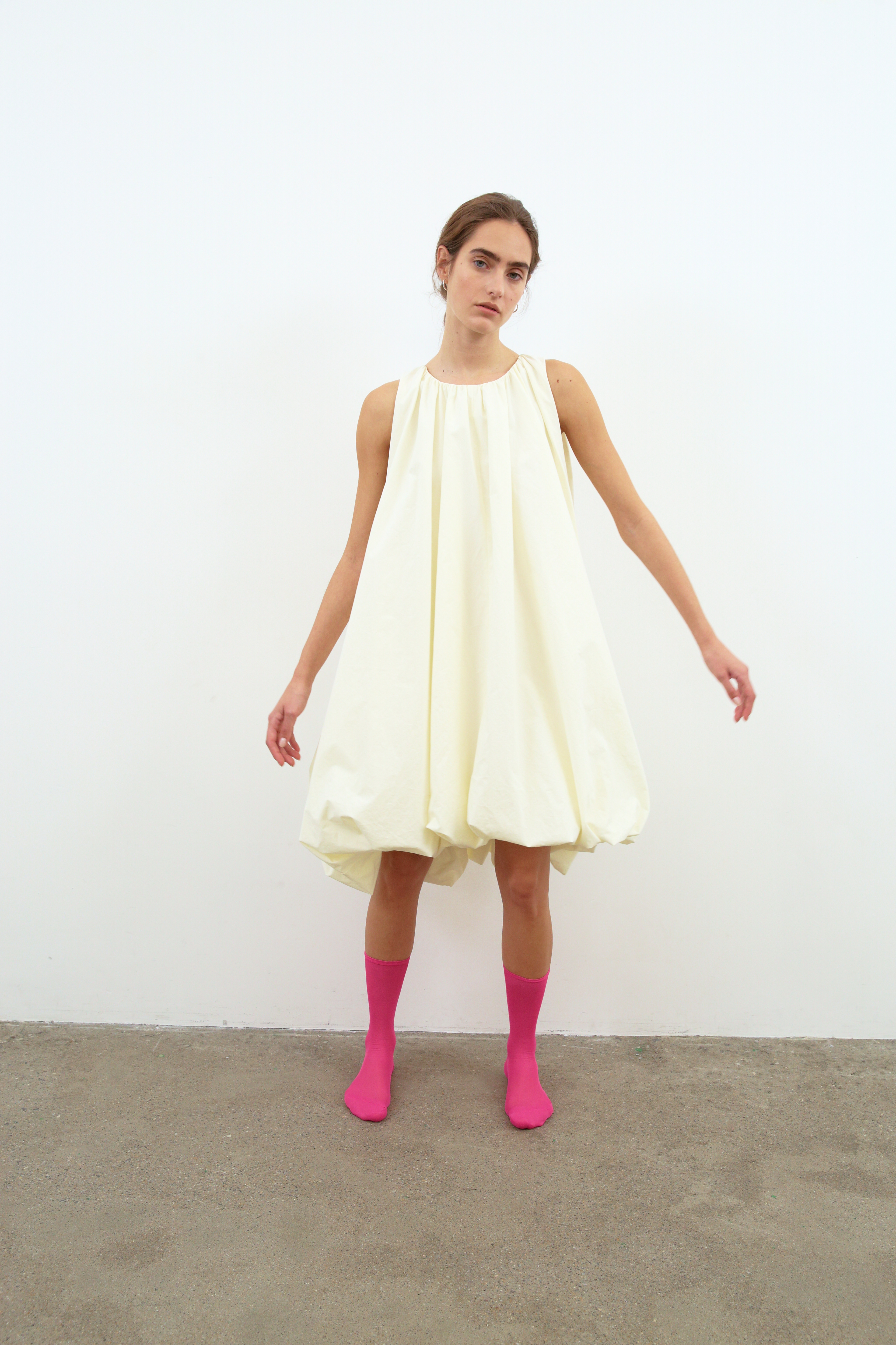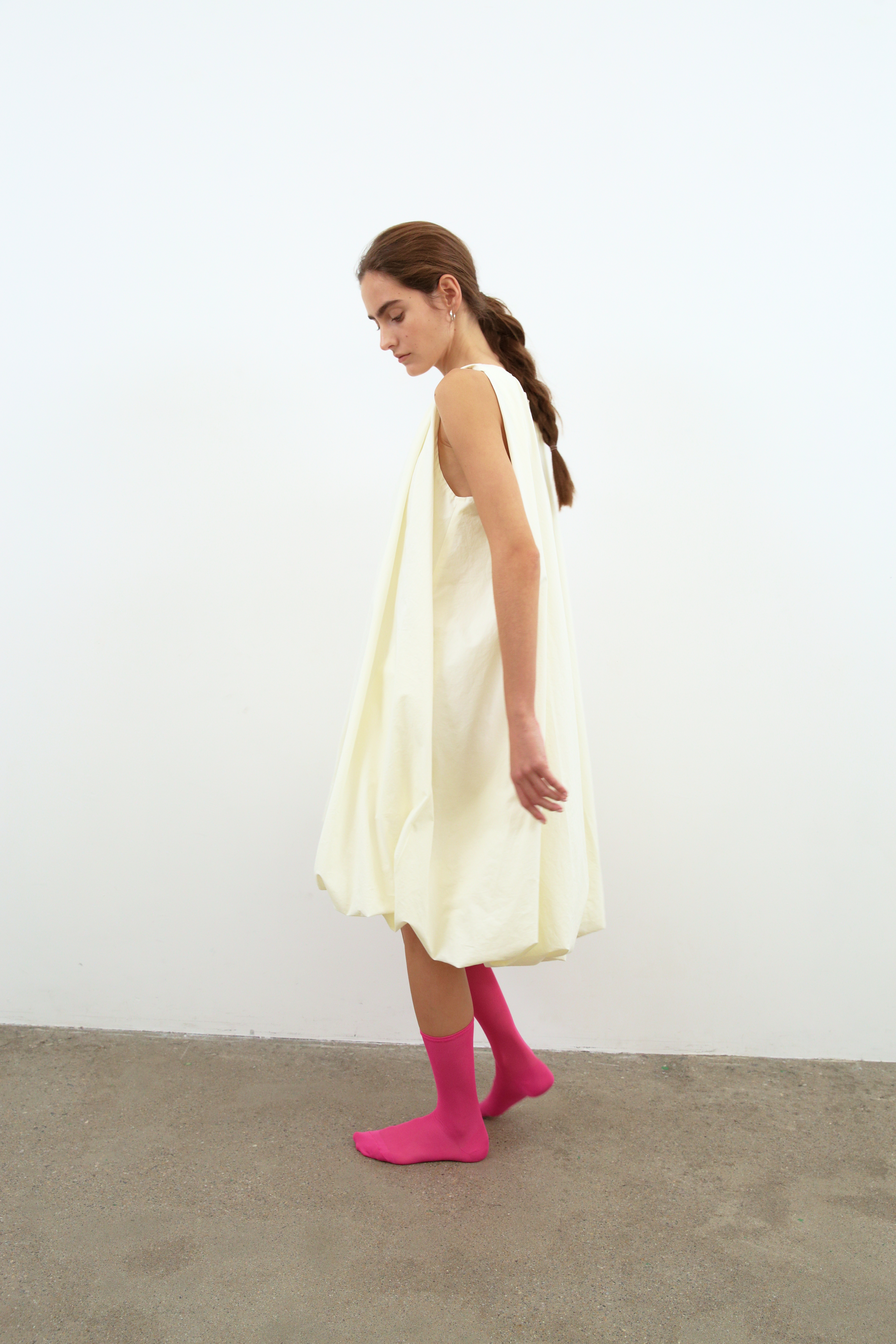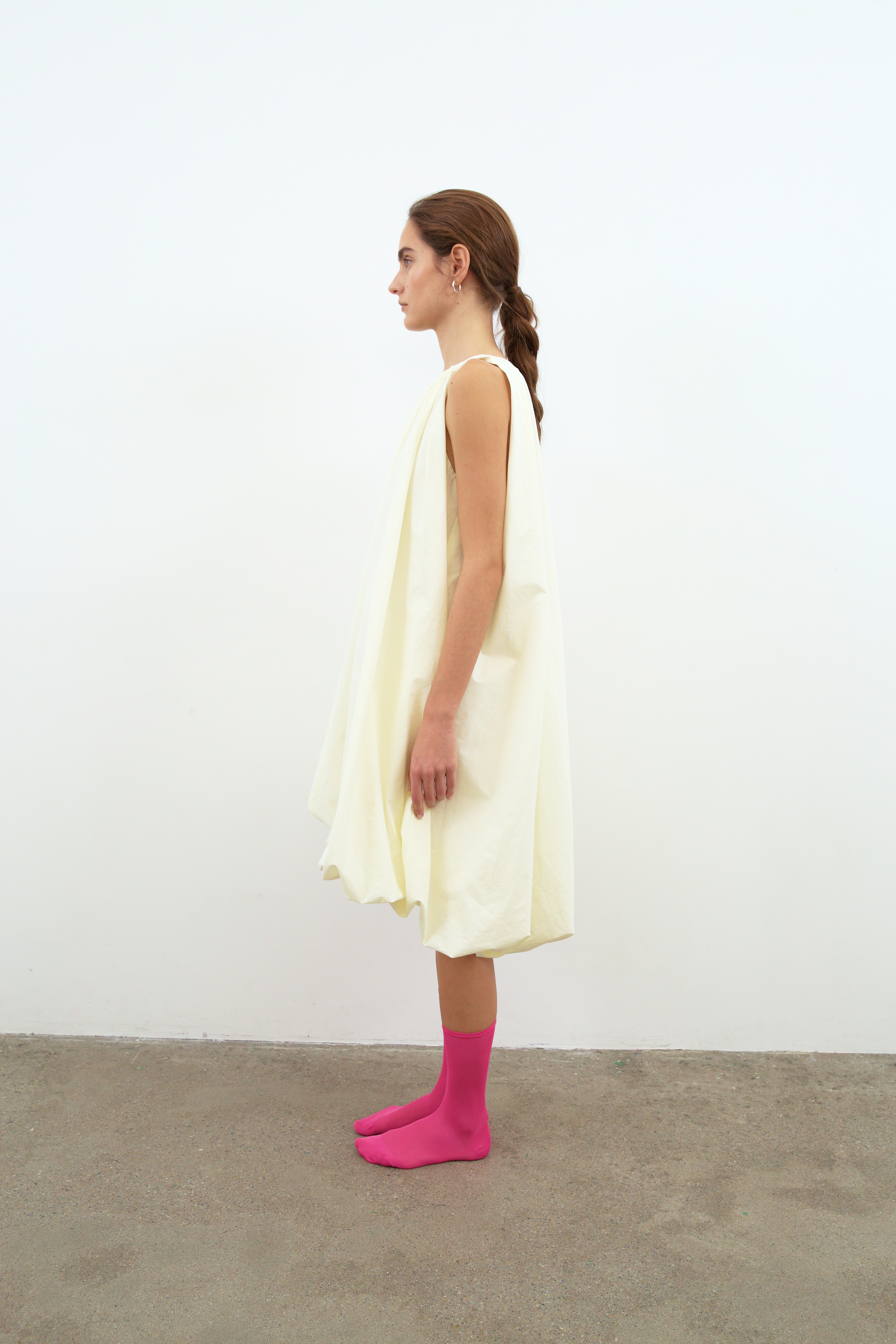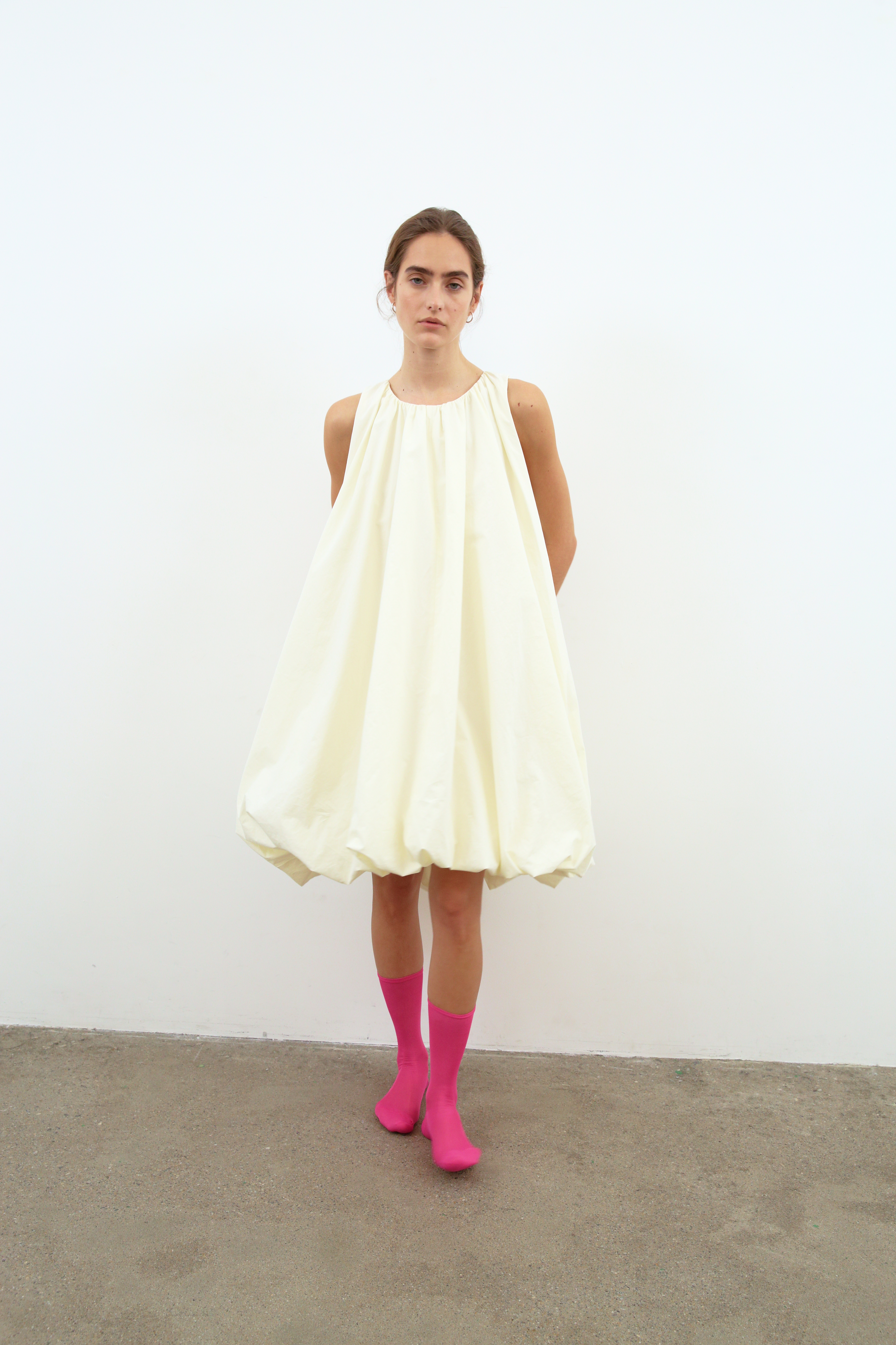 Crafted from soft cotton in an A-line silhouette, it includes pockets for added comfort and ease of styling.