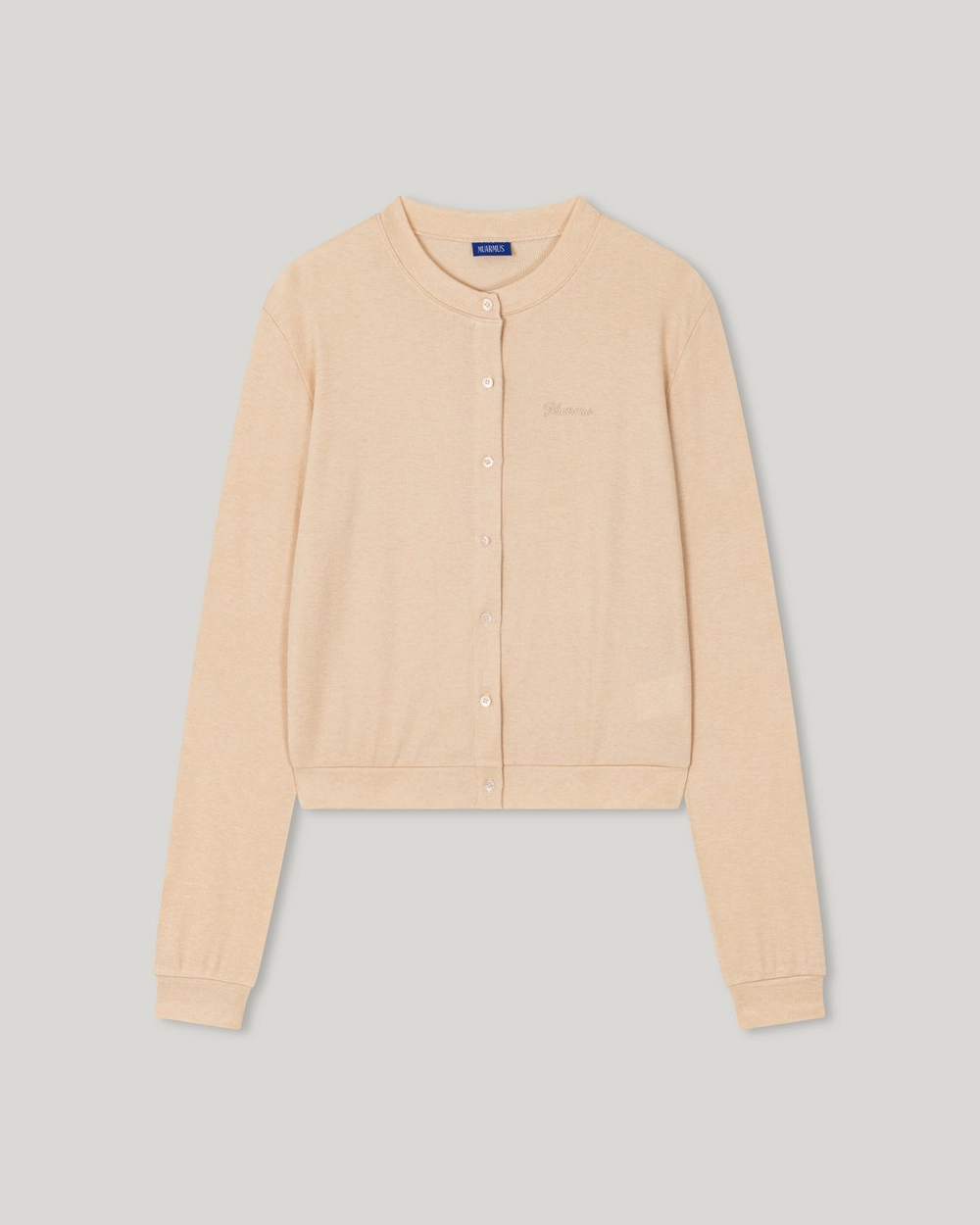 A daily cardigan crafted from a soft and flexible fabric that gently conforms to the body,