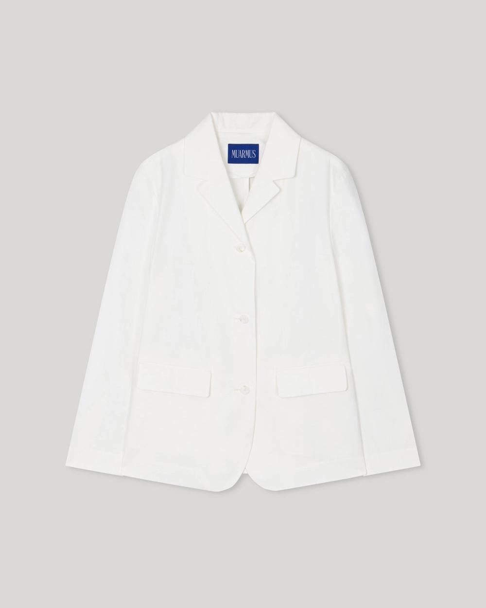 A natural-mood cotton jacket designed in a semi-oversized silhouette